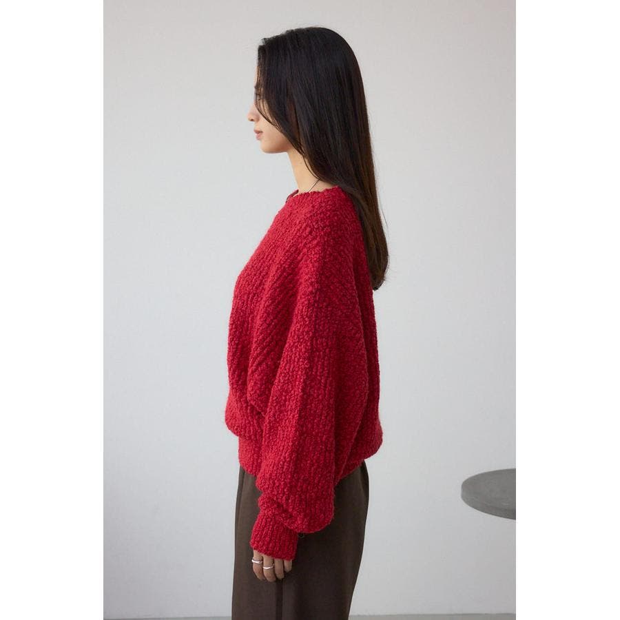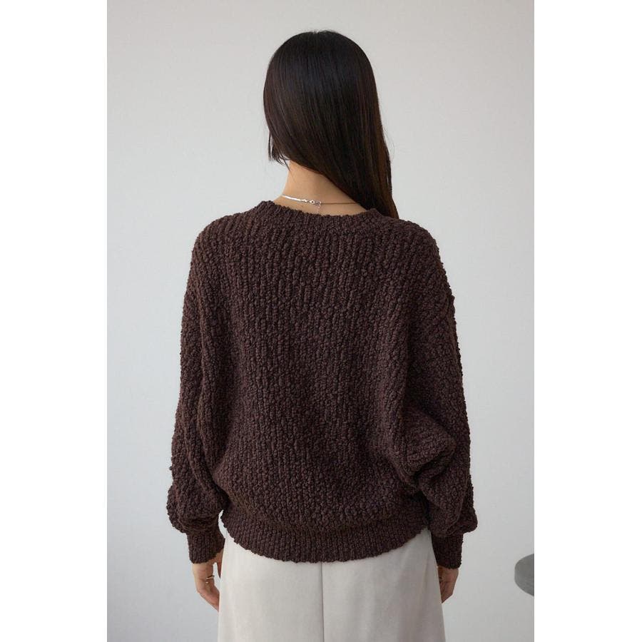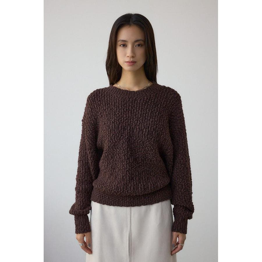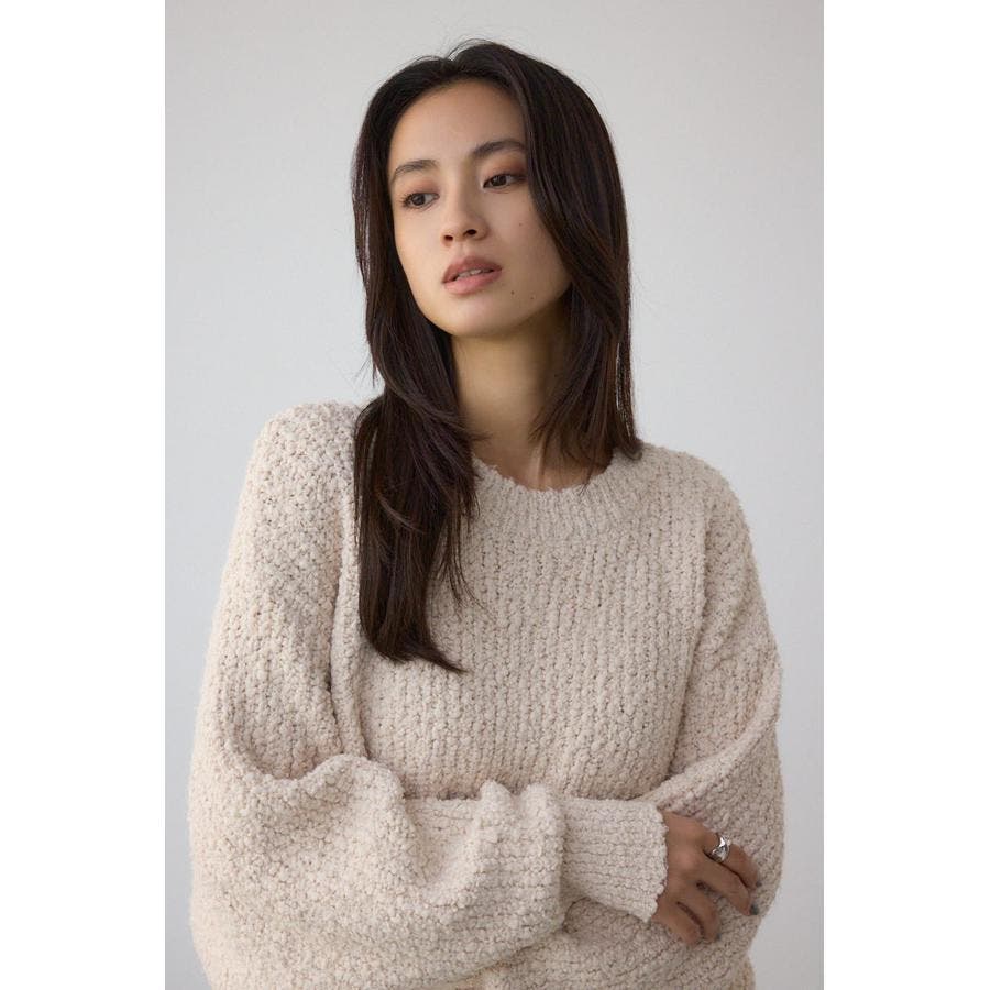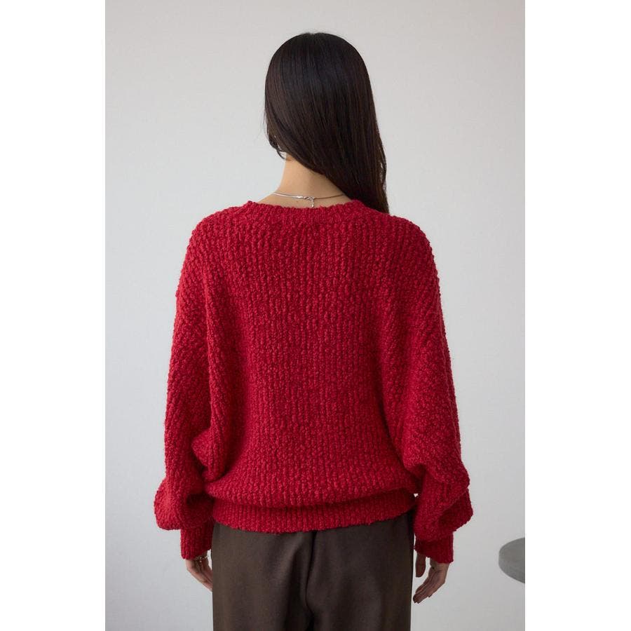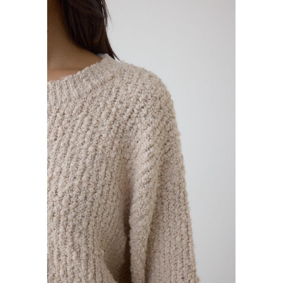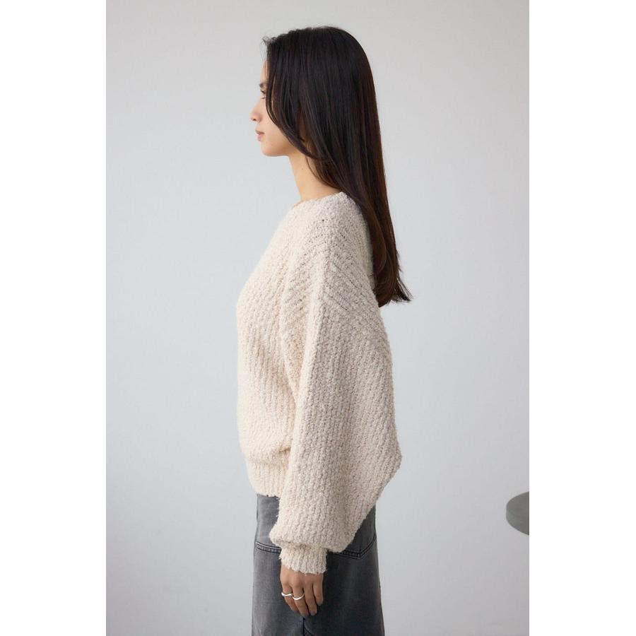 表面に立体感のあるブークレー糸を使用し、抜け感のあるドルマンシルエットで仕上げた大人リラクシーニット。