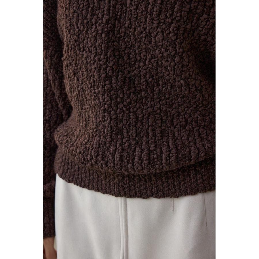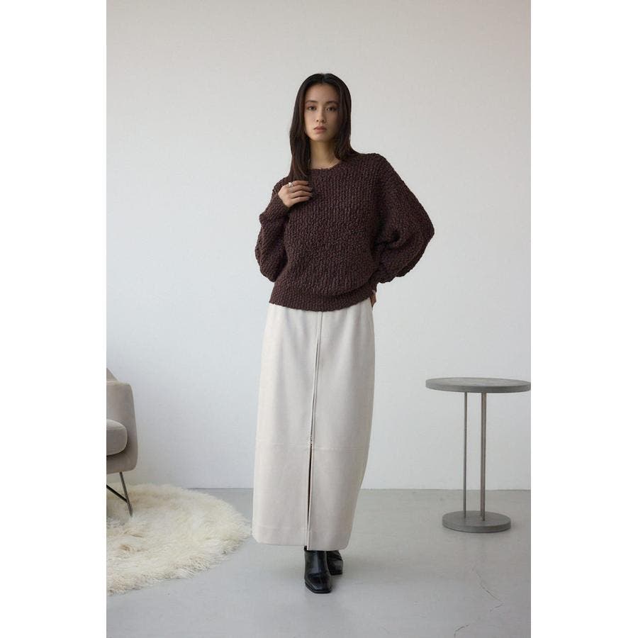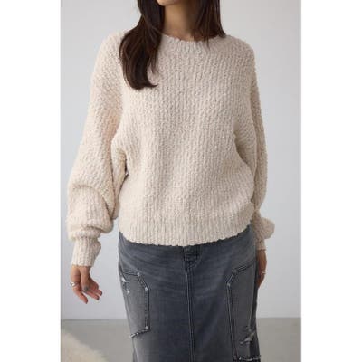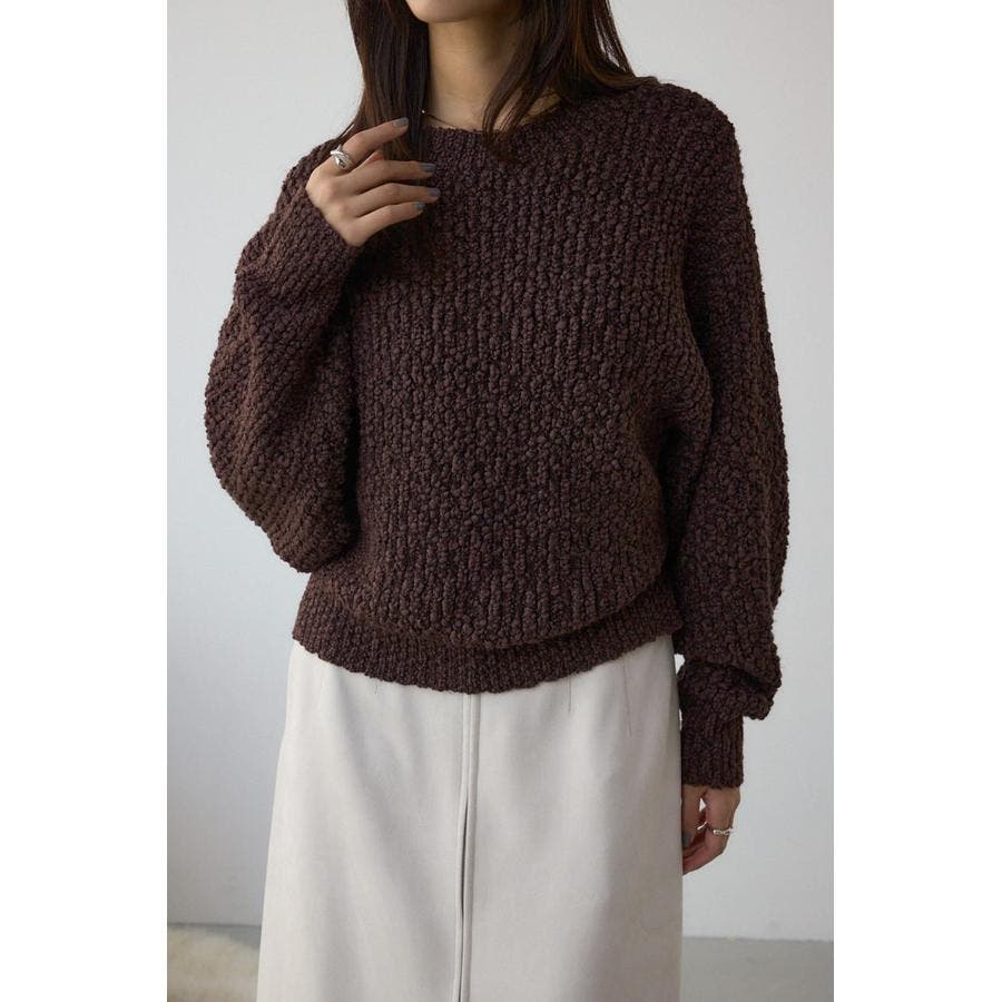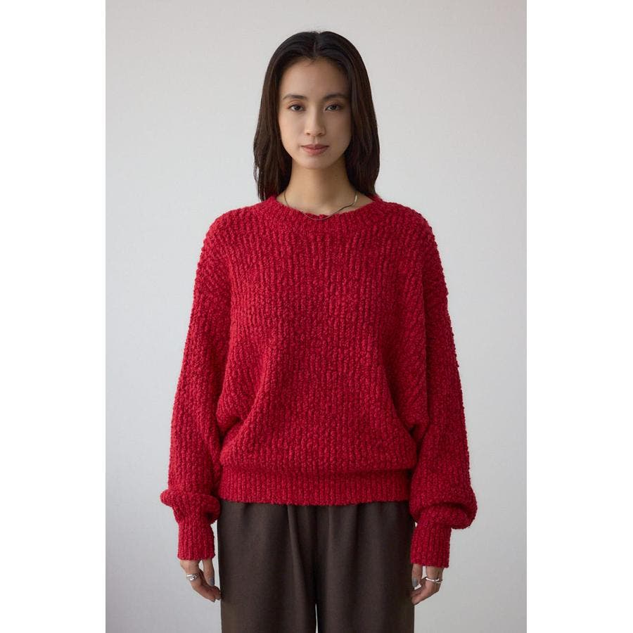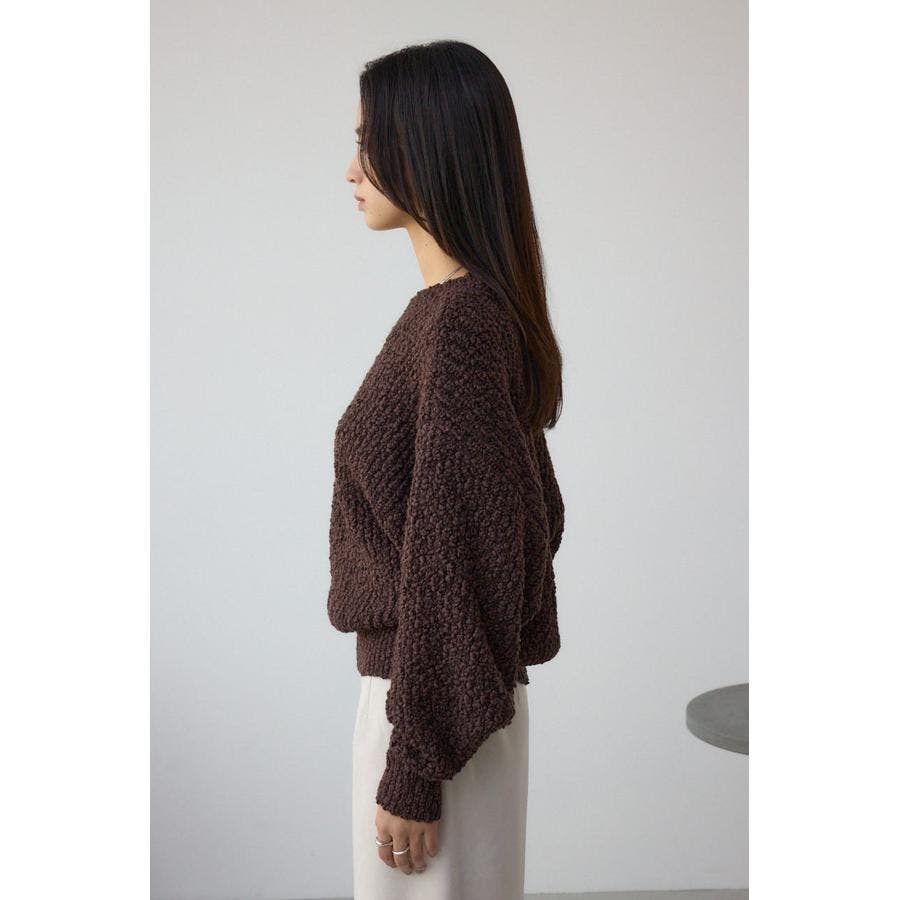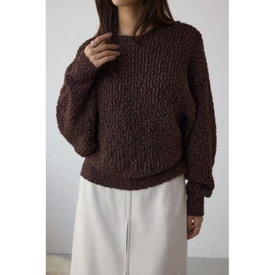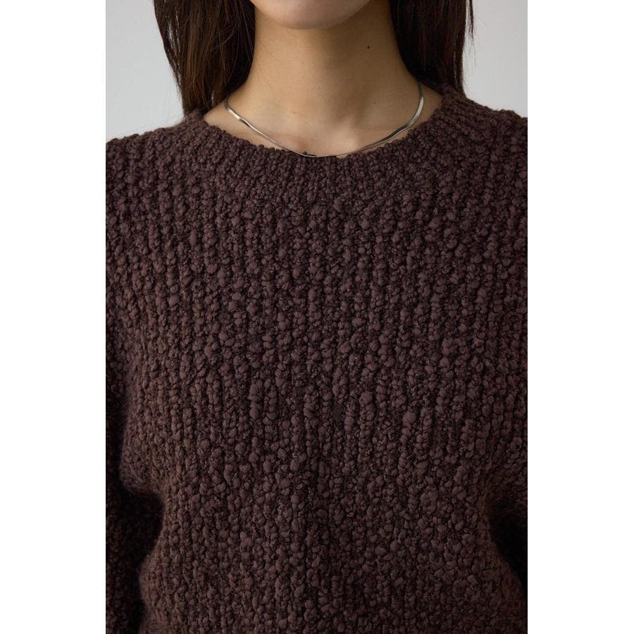 表面に立体感のあるブークレー糸を使用し、抜け感のあるドルマンシルエットで仕上げた大人リラクシーニット。