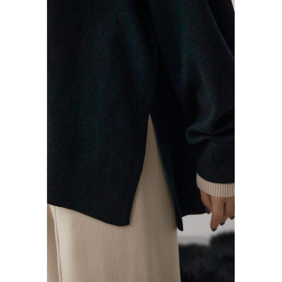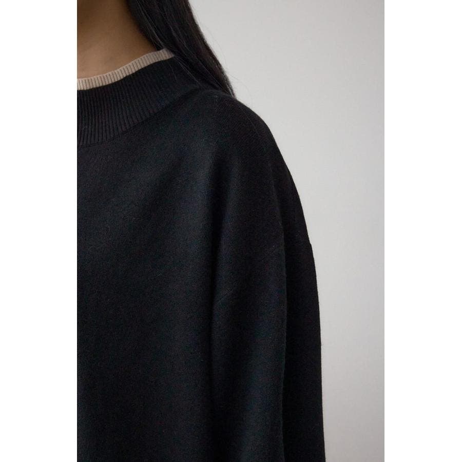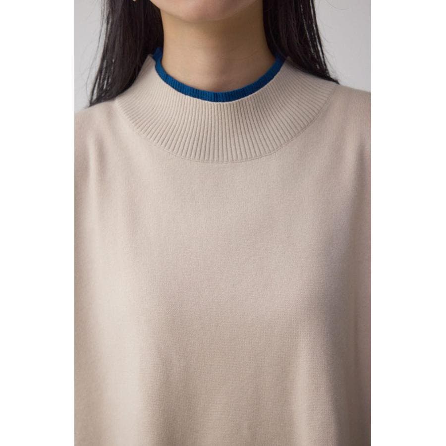 襟元と袖口に配色のリブを施した、レイヤード風デザインが魅力のニットトップス。