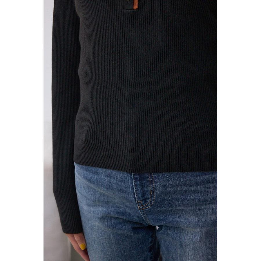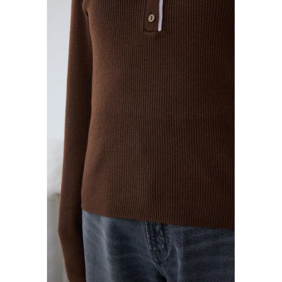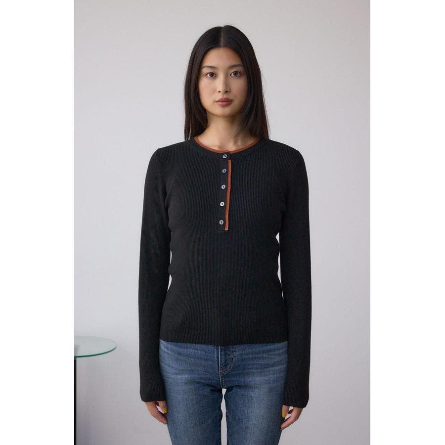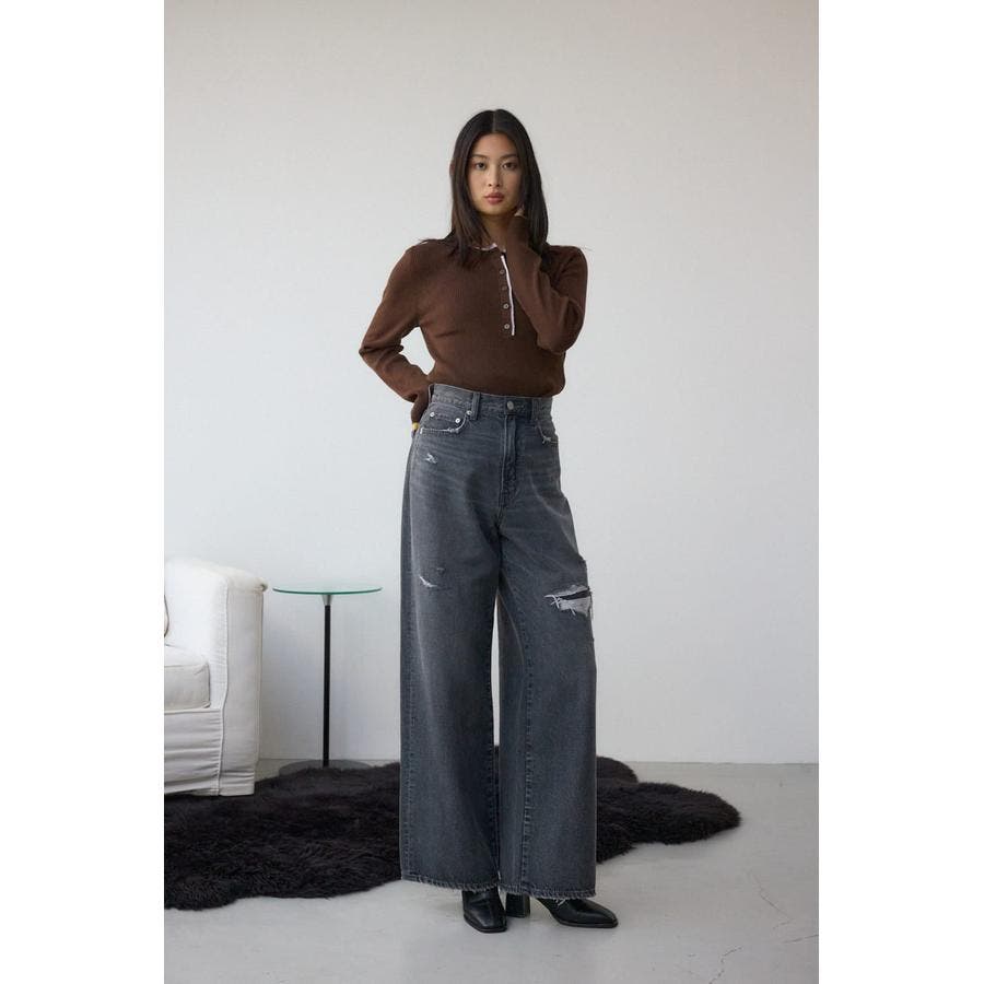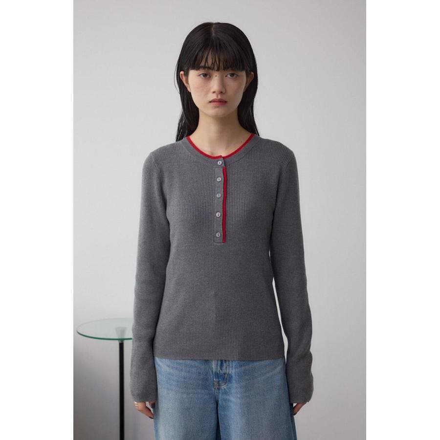 ワイドパンツなどボトムインで着用するとヘンリーネックが際立ち、すっきり細身に見せてくれます。