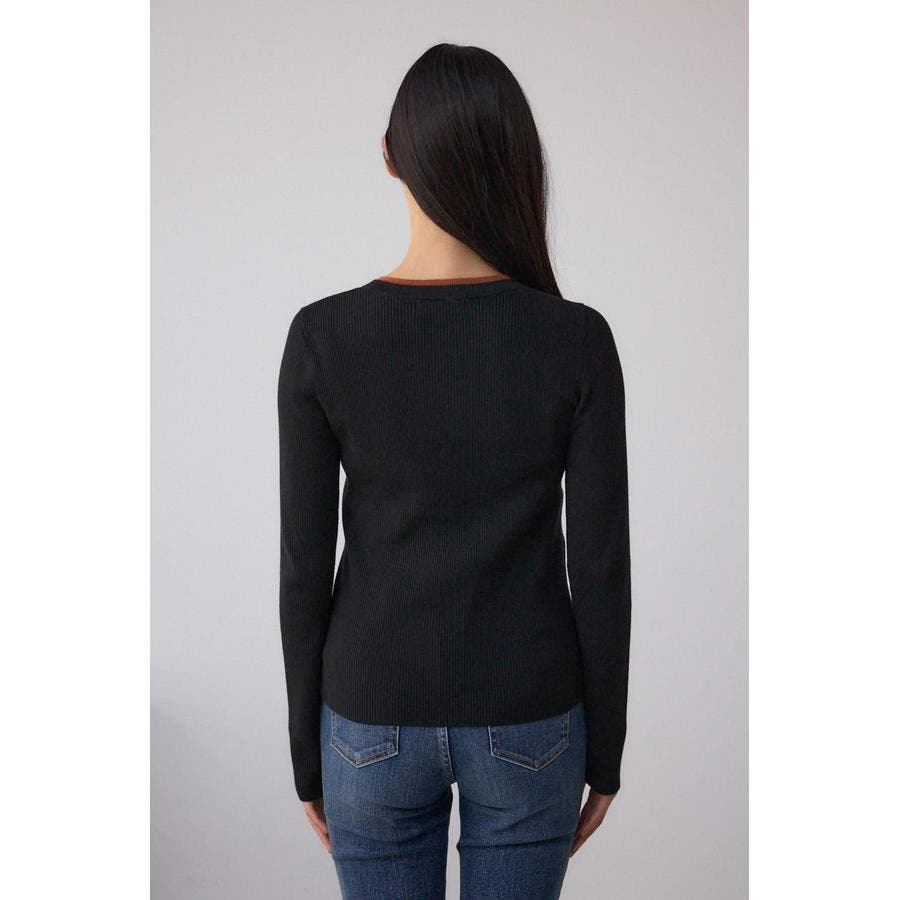 インナーがちらっと見えているようなバイカラーがポイントのレイヤードプルオーバー。