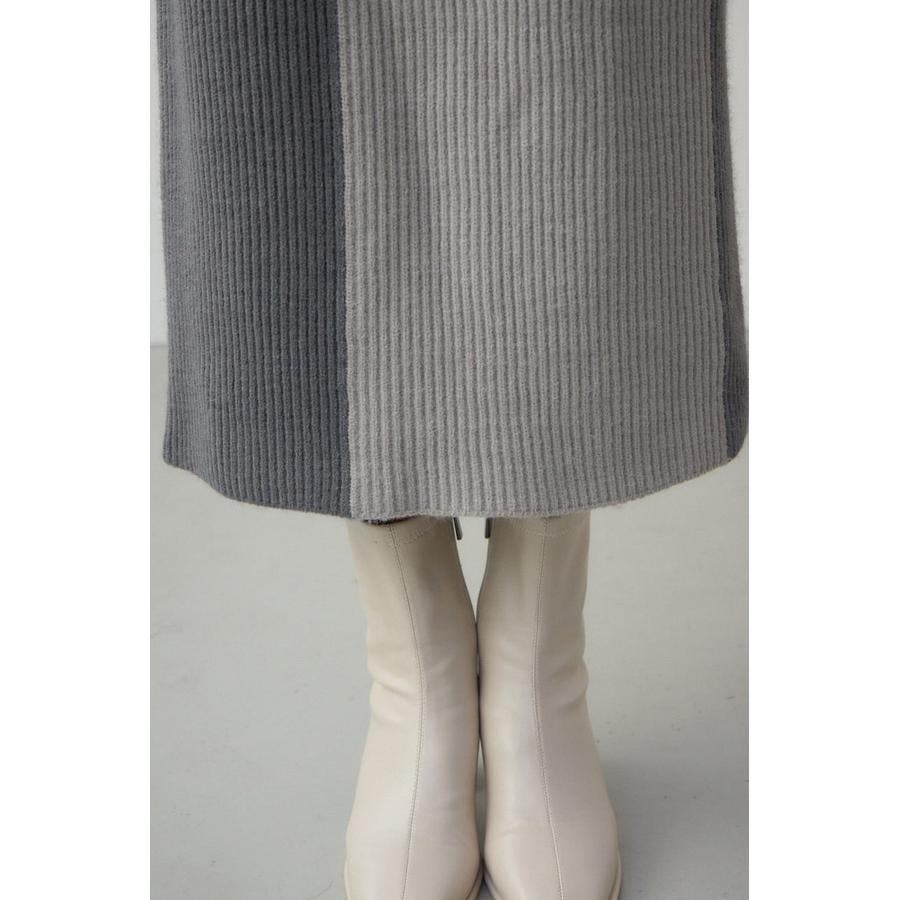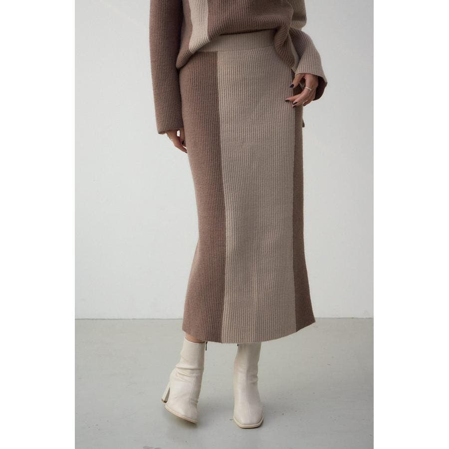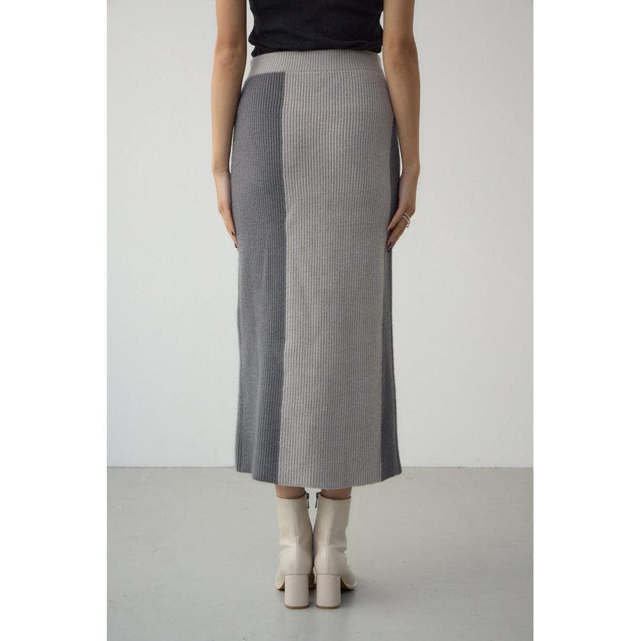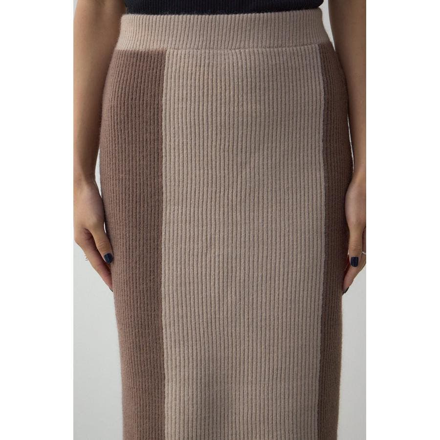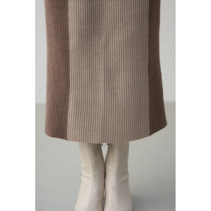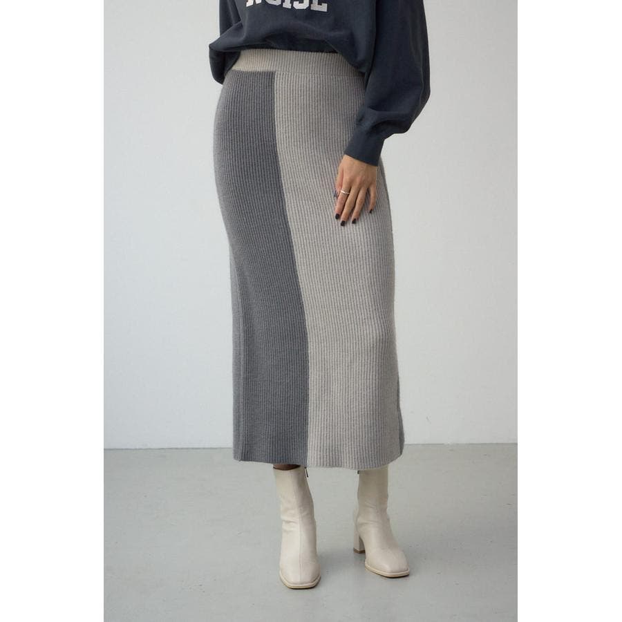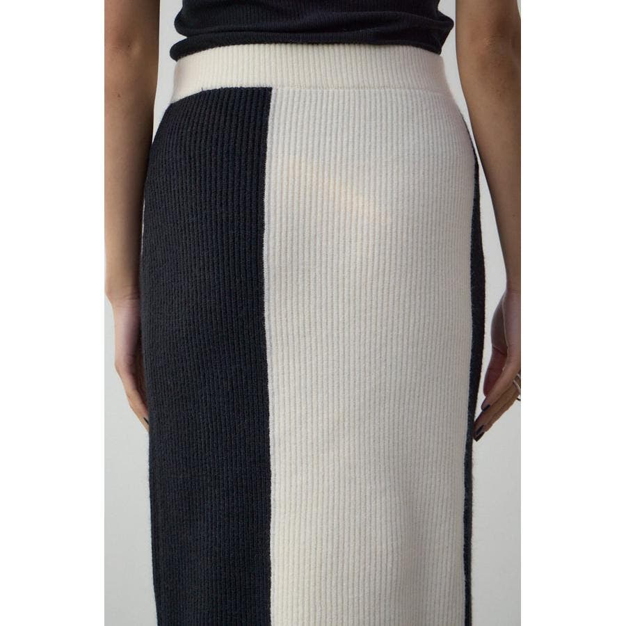 縦ラインを強調する配色デザインがスタイルアップを叶える、モードな印象のニットタイトスカート。