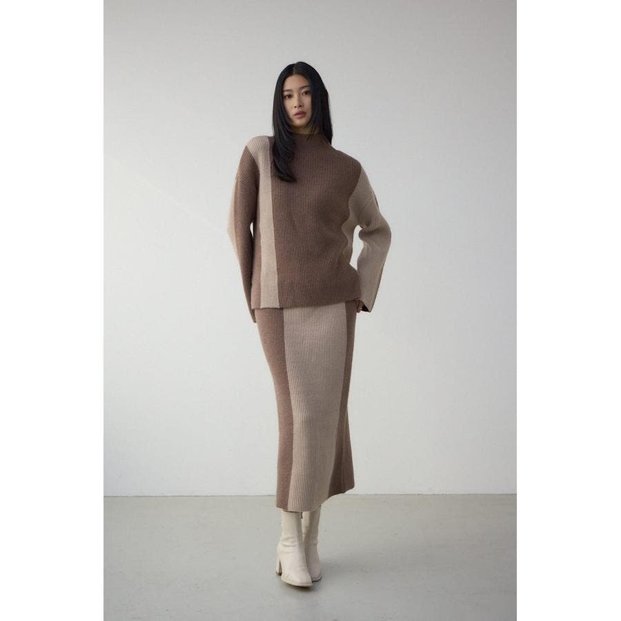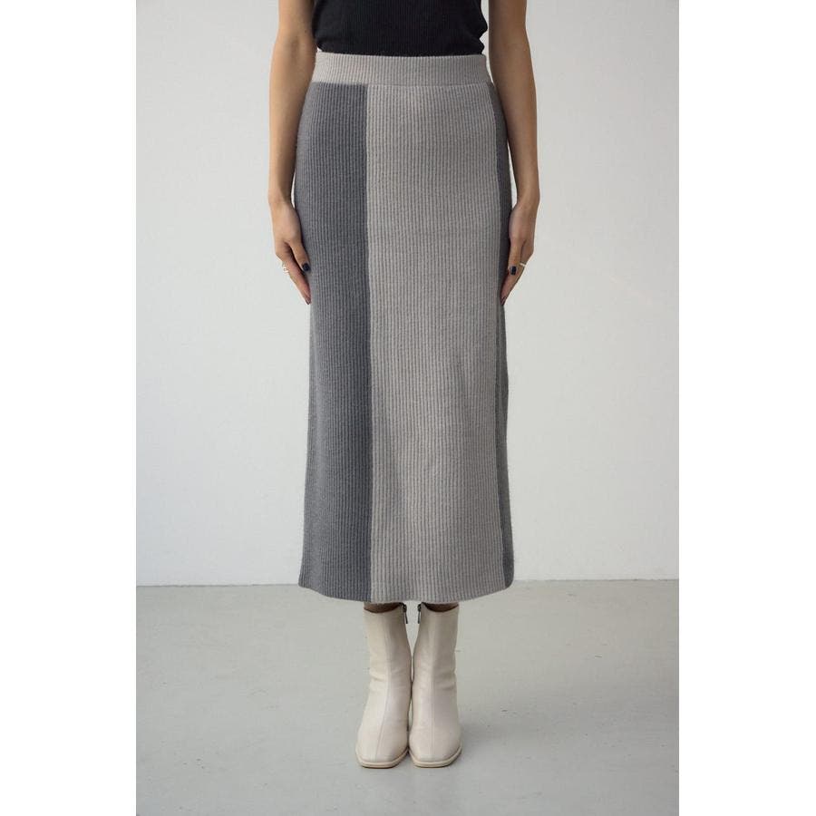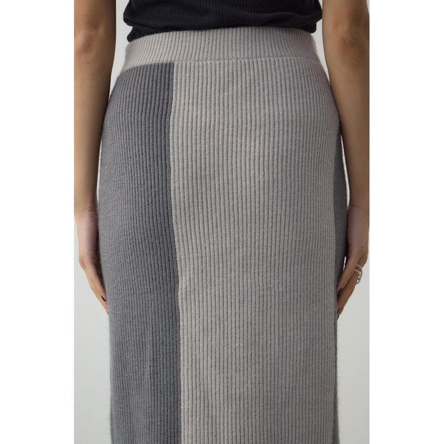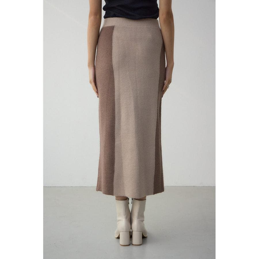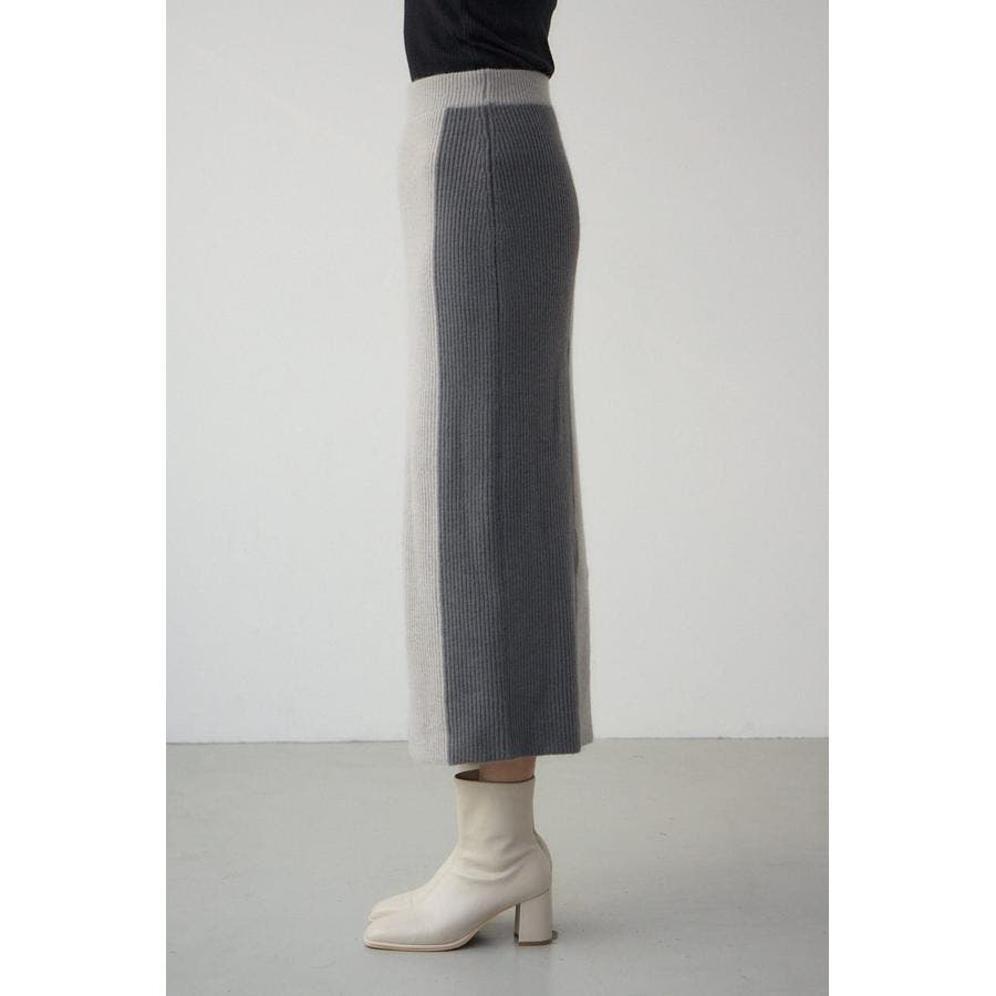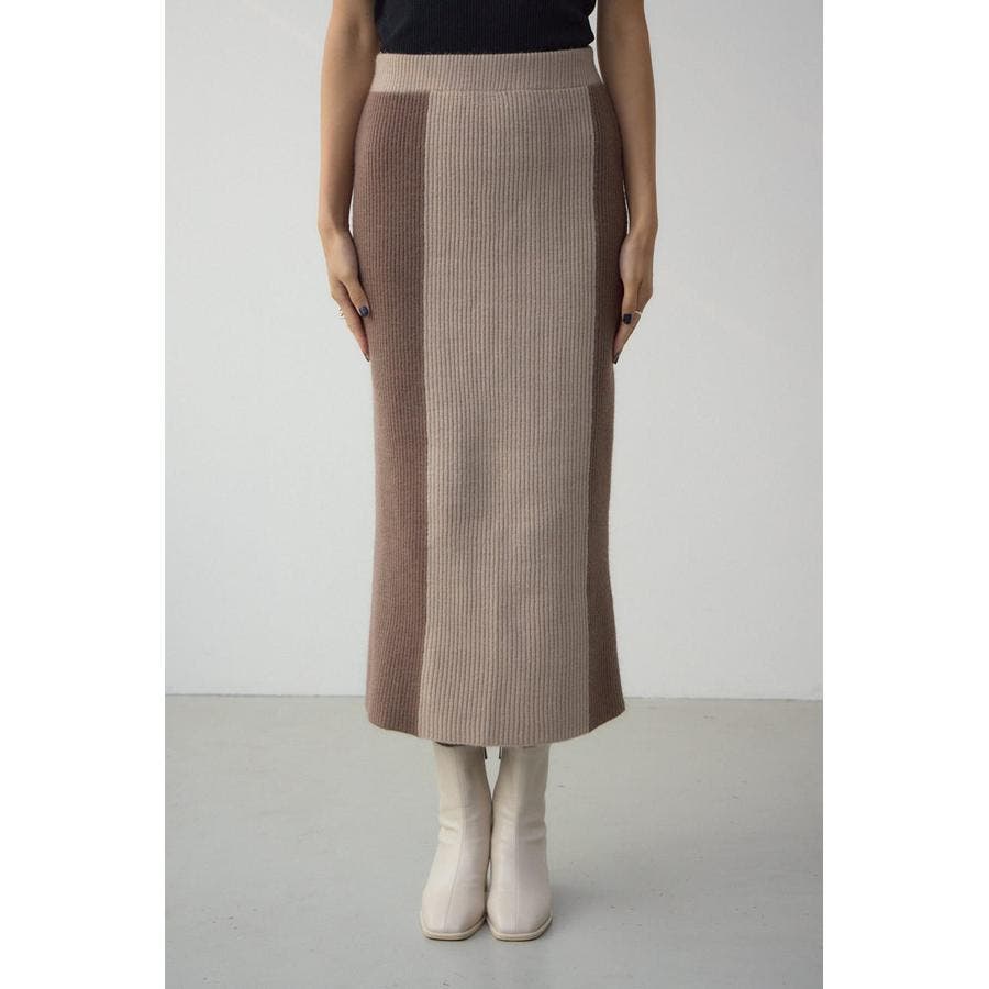 縦ラインを強調する配色デザインがスタイルアップを叶える、モードな印象のニットタイトスカート。