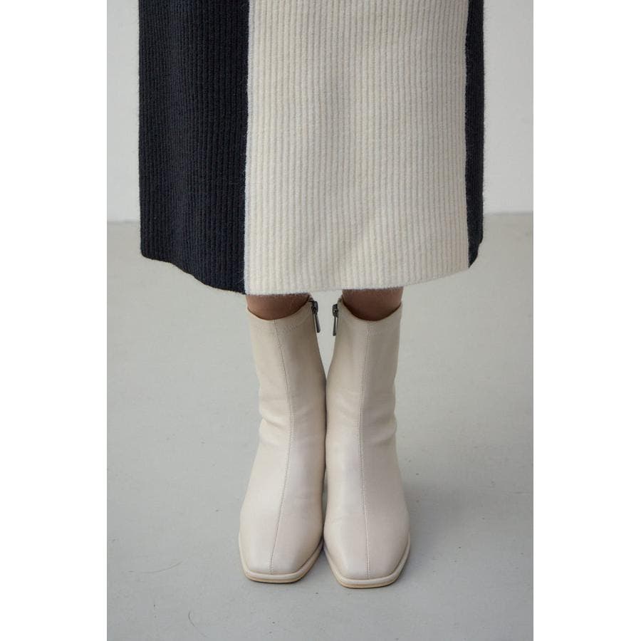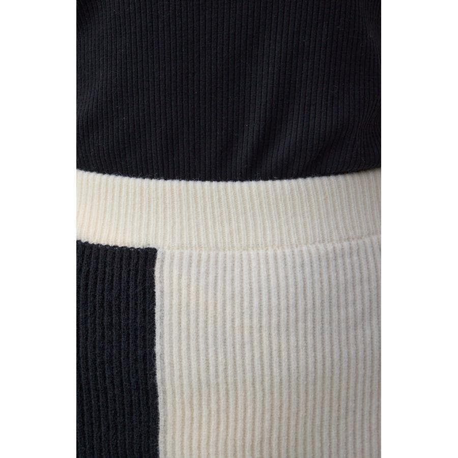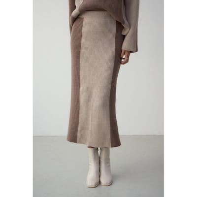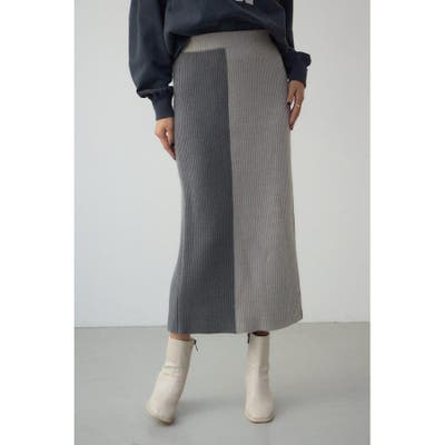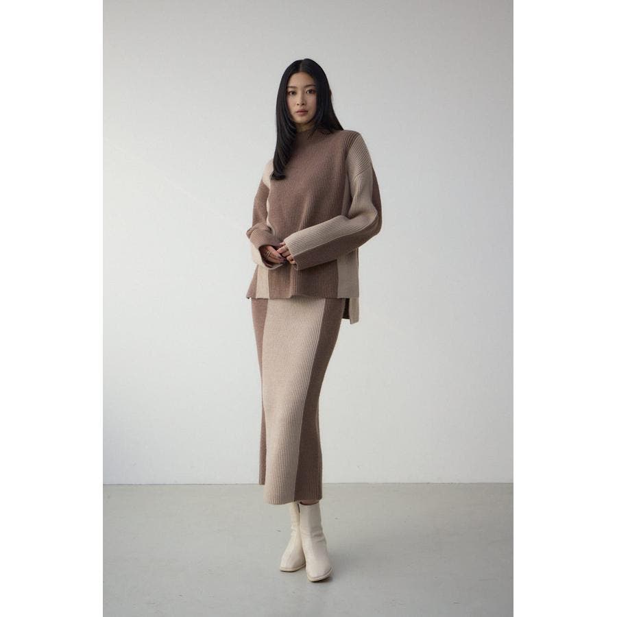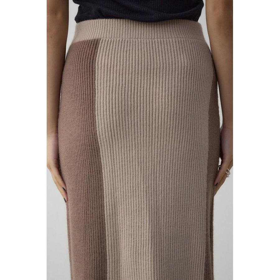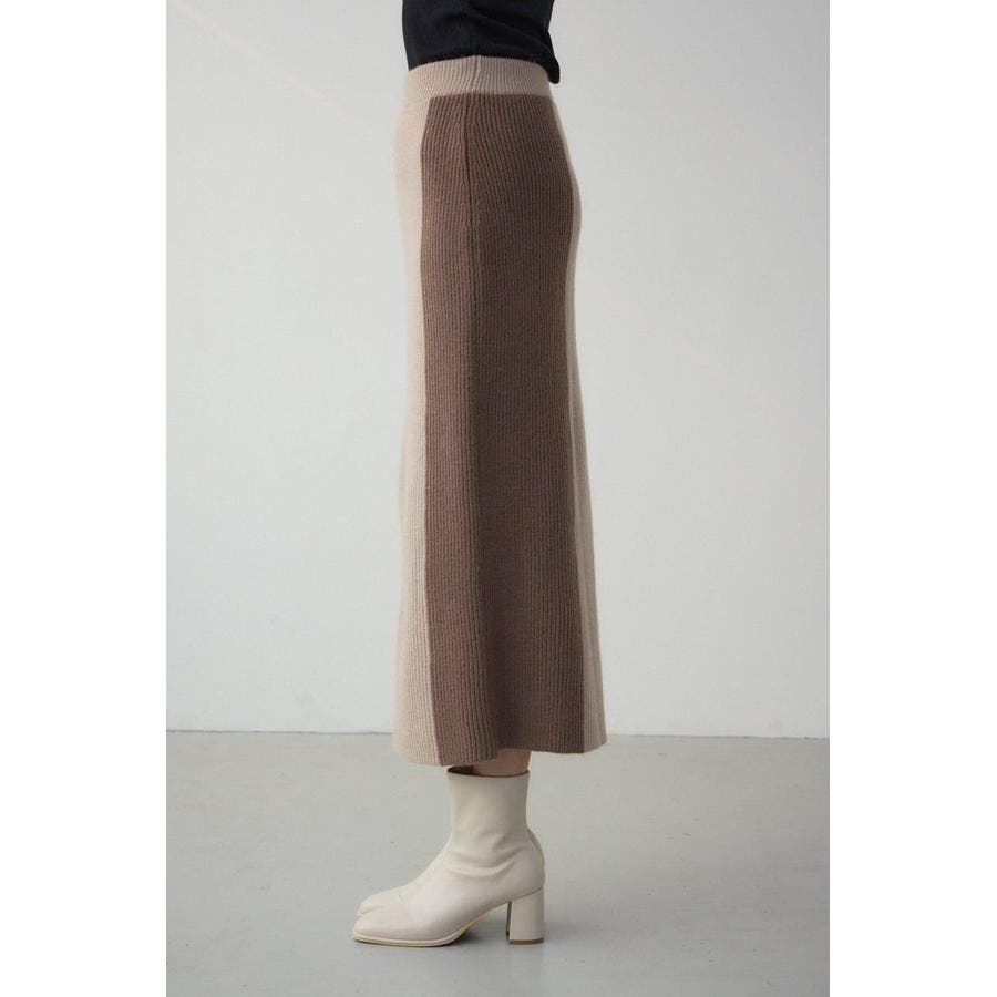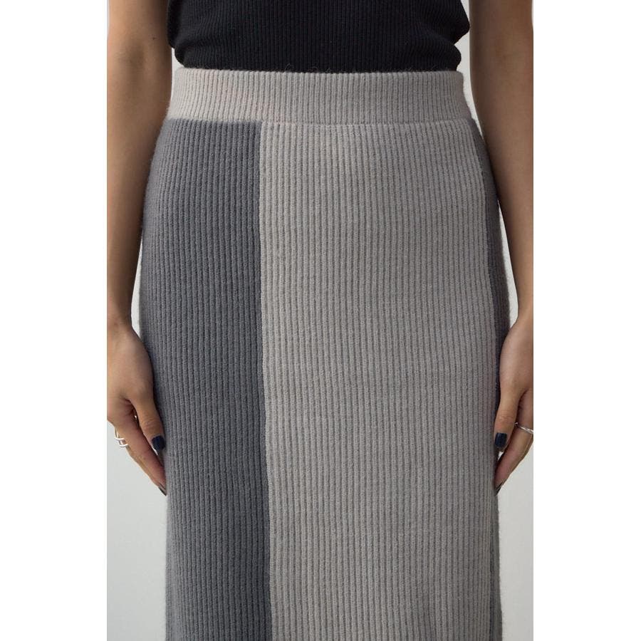 縦ラインを強調する配色デザインがスタイルアップを叶える、モードな印象のニットタイトスカート。