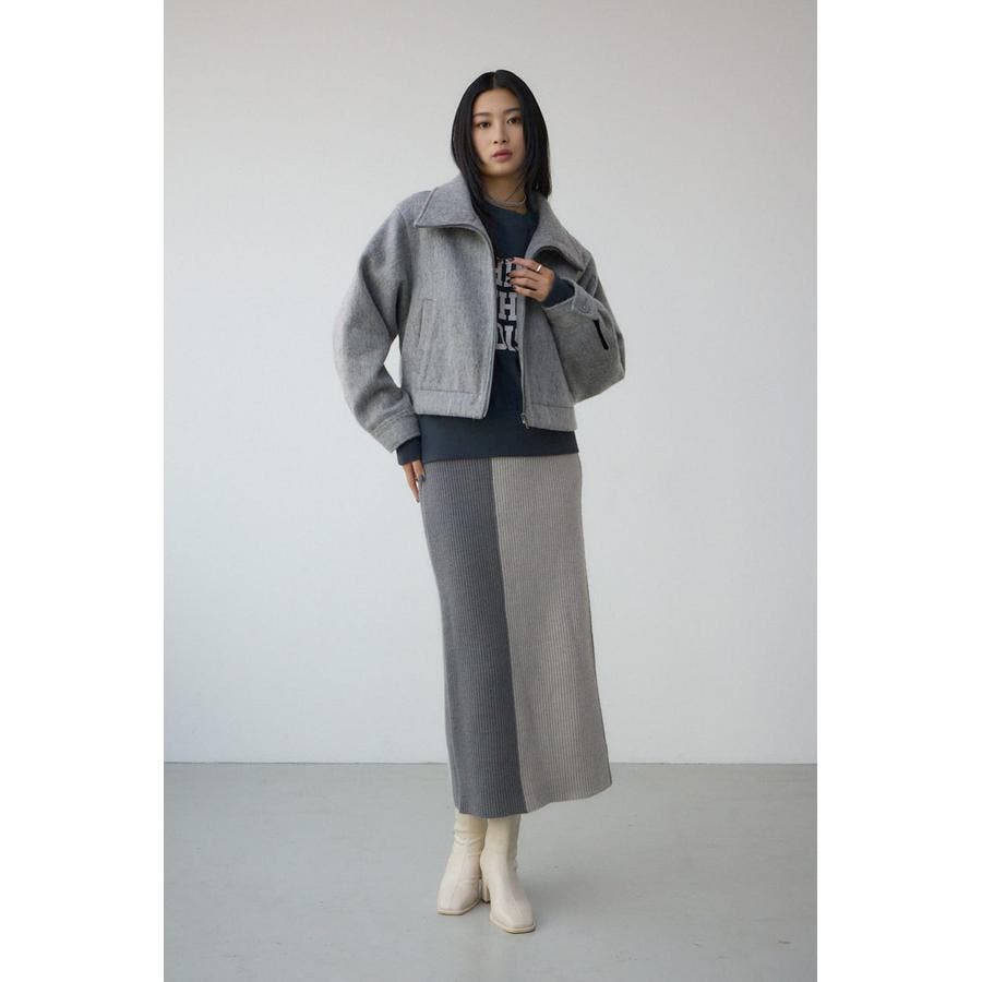 同素材のトップス(250IAB70-159B バイカラーハイネックニットトップス)とセットアップで着用すれば、統一感のあるモードスタイルに仕上がります。