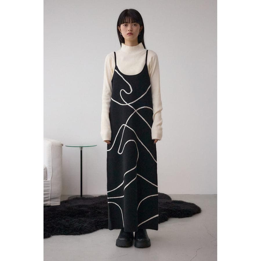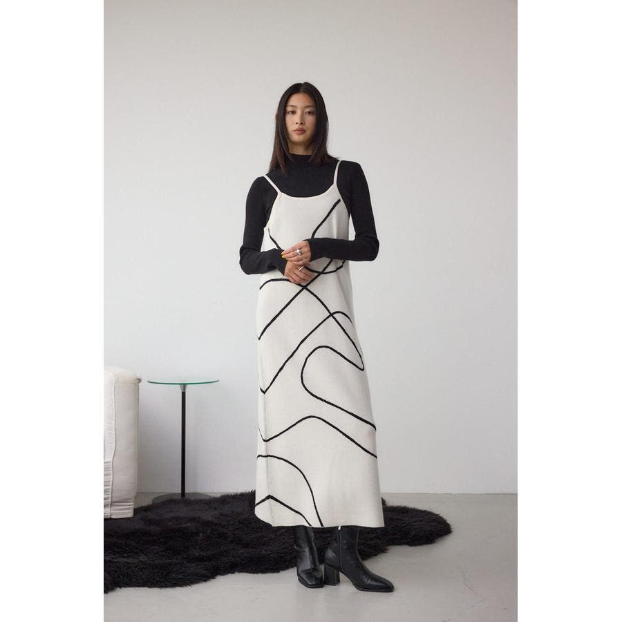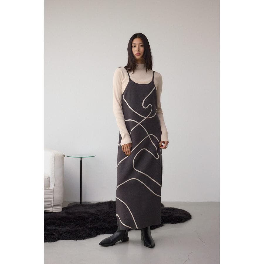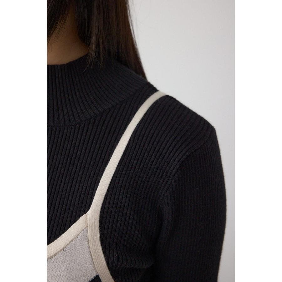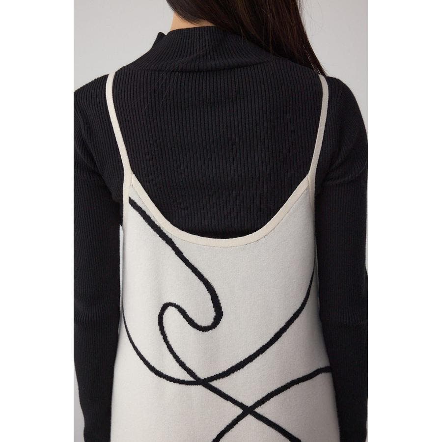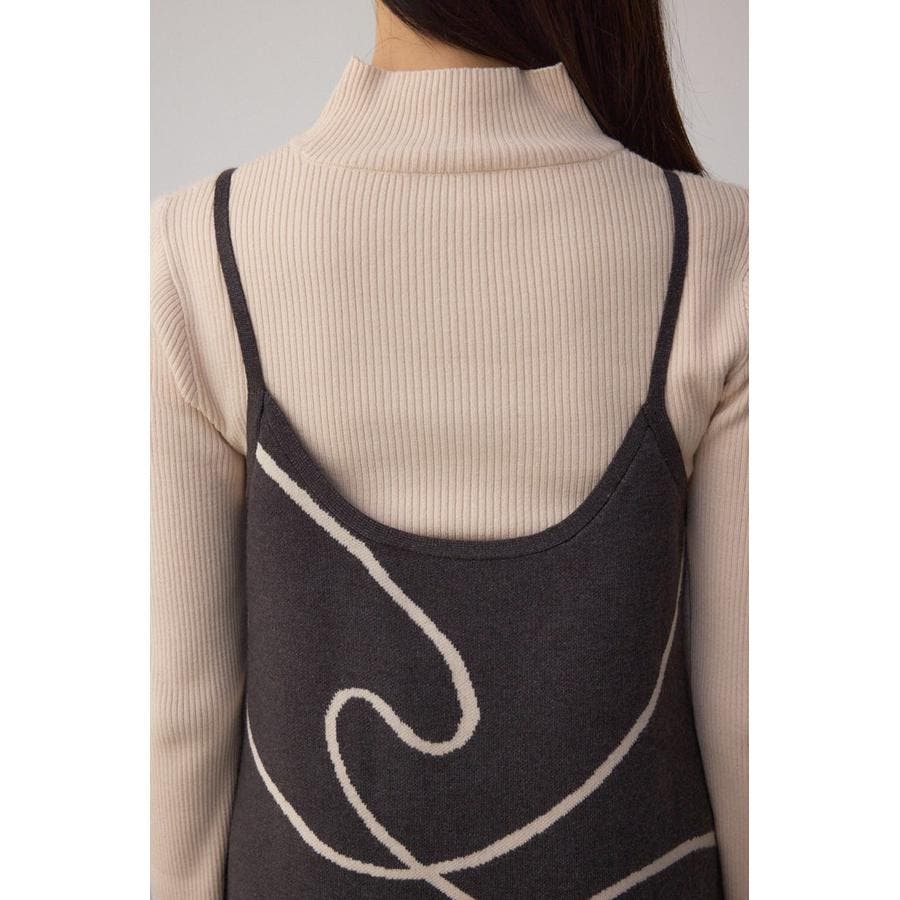 ライン柄のニットキャミワンピースとハイネックインナーニットがセットになった、トレンドのレイヤードスタイルを即完成させるアイテム。