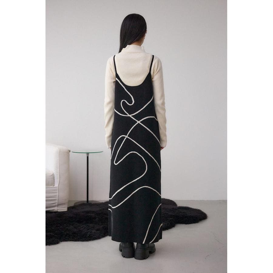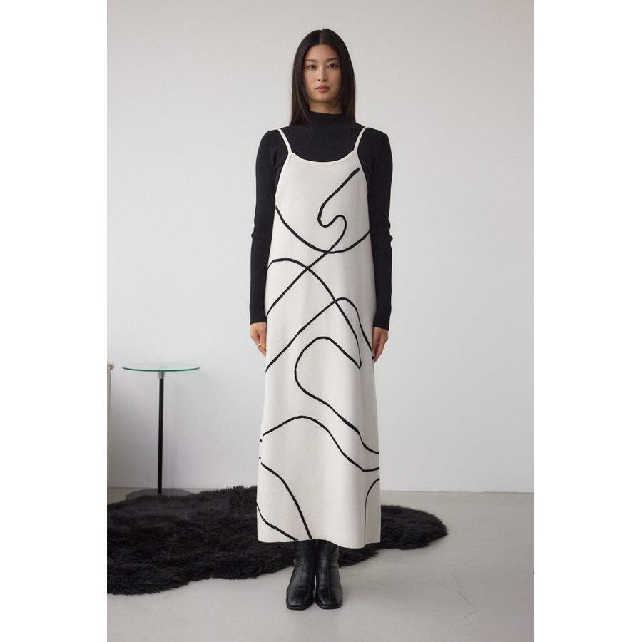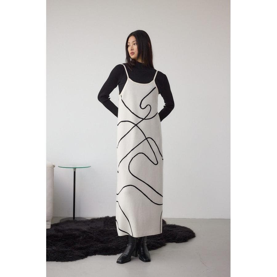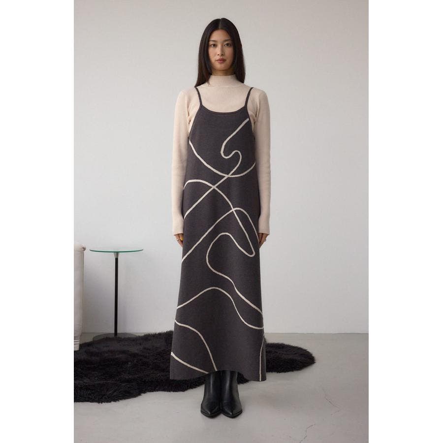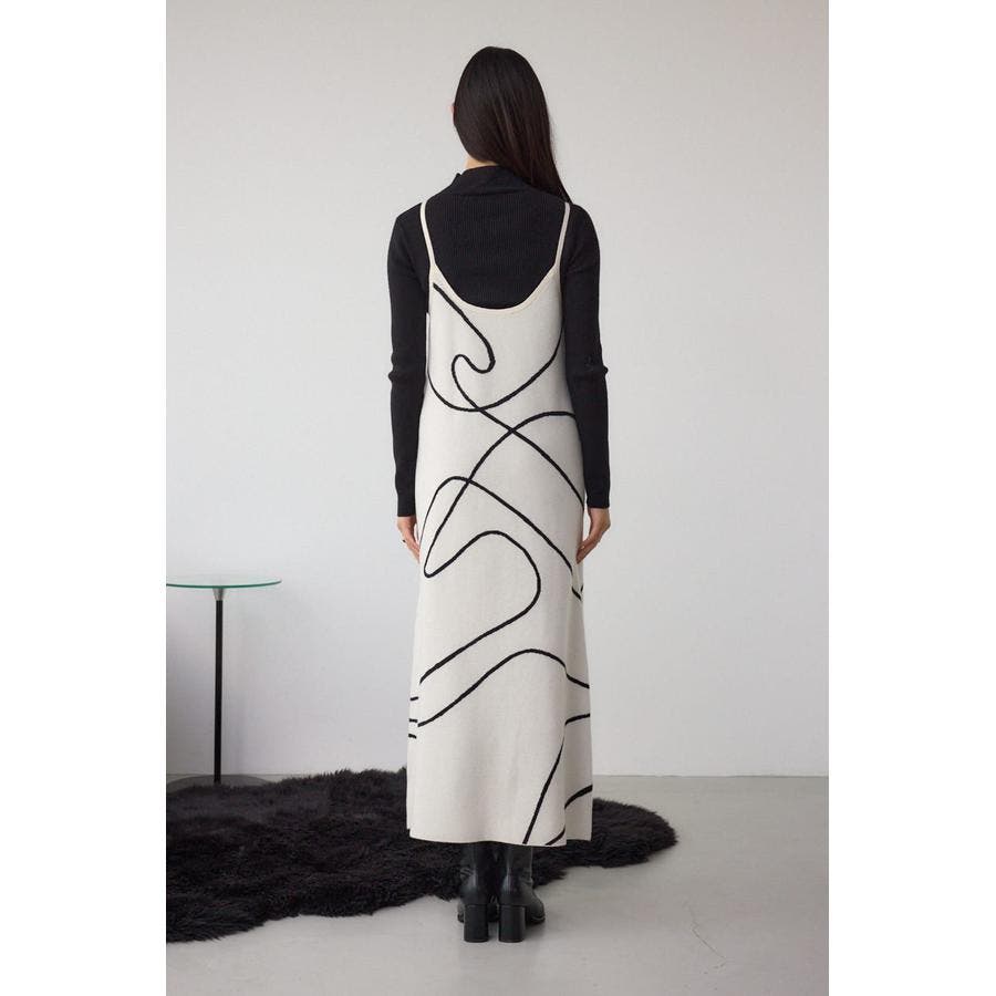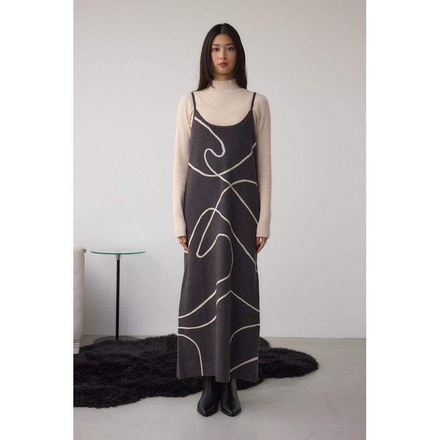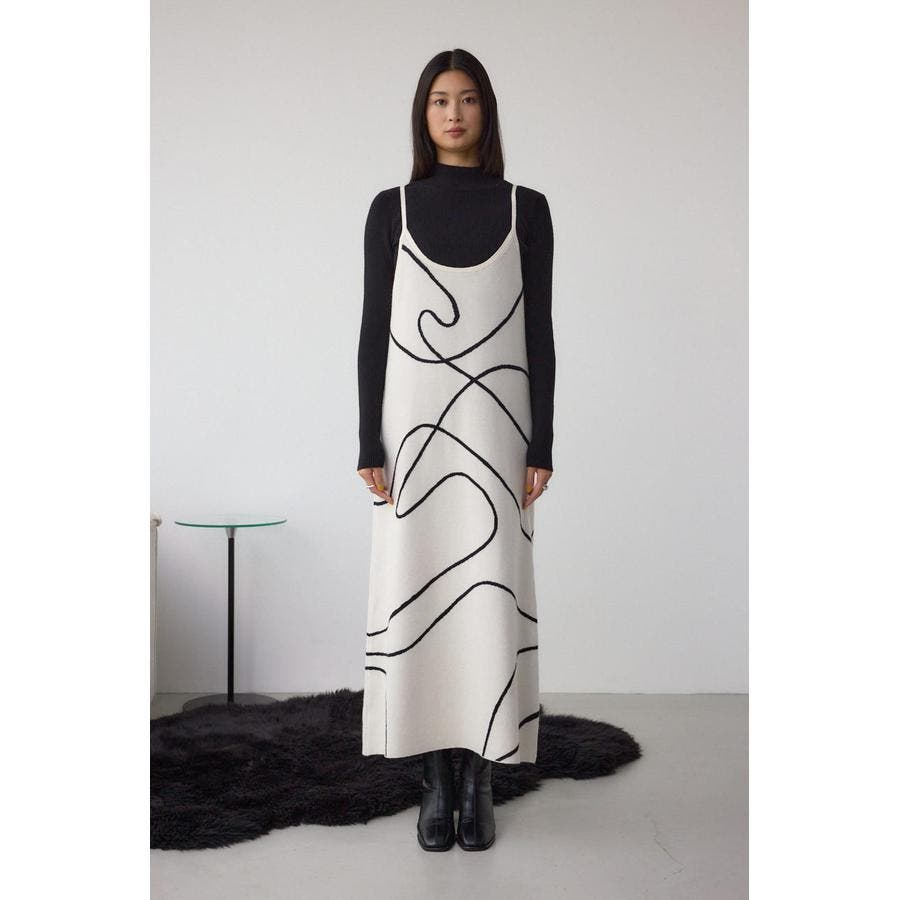 ライン柄のニットキャミワンピースとハイネックインナーニットがセットになった、トレンドのレイヤードスタイルを即完成させるアイテム。