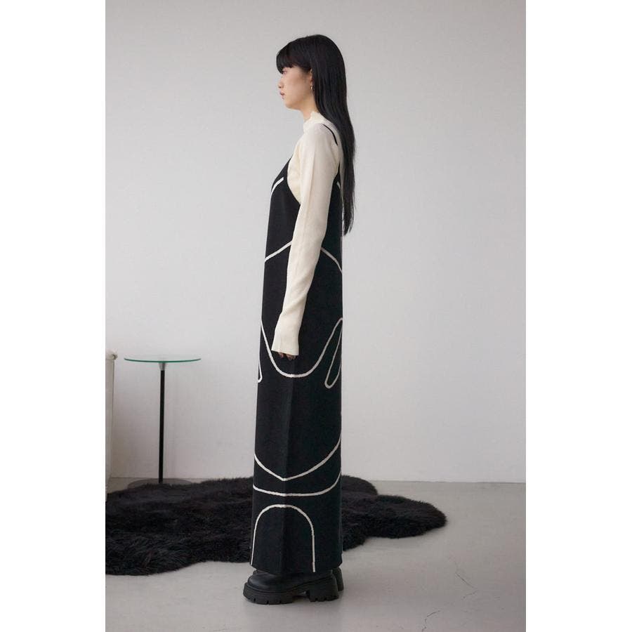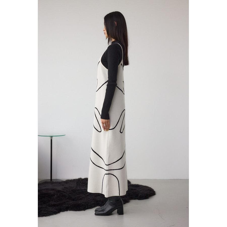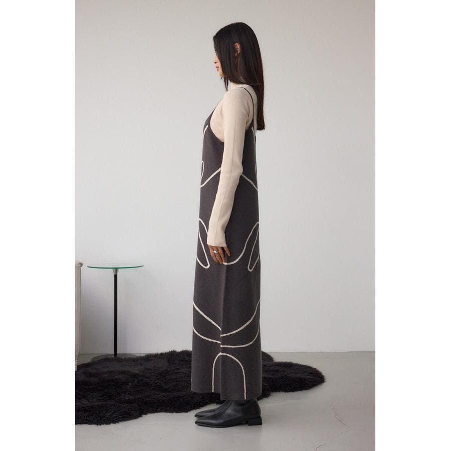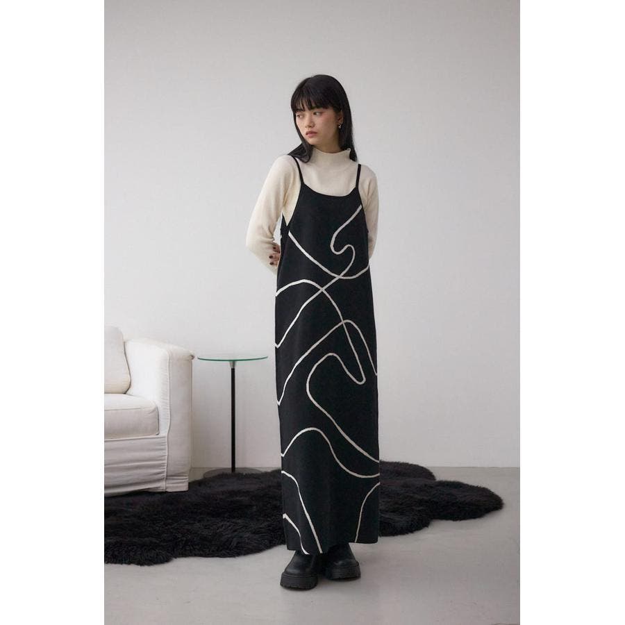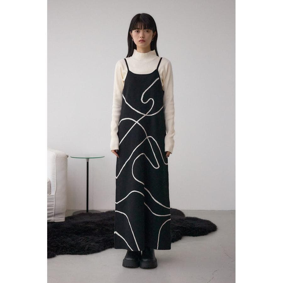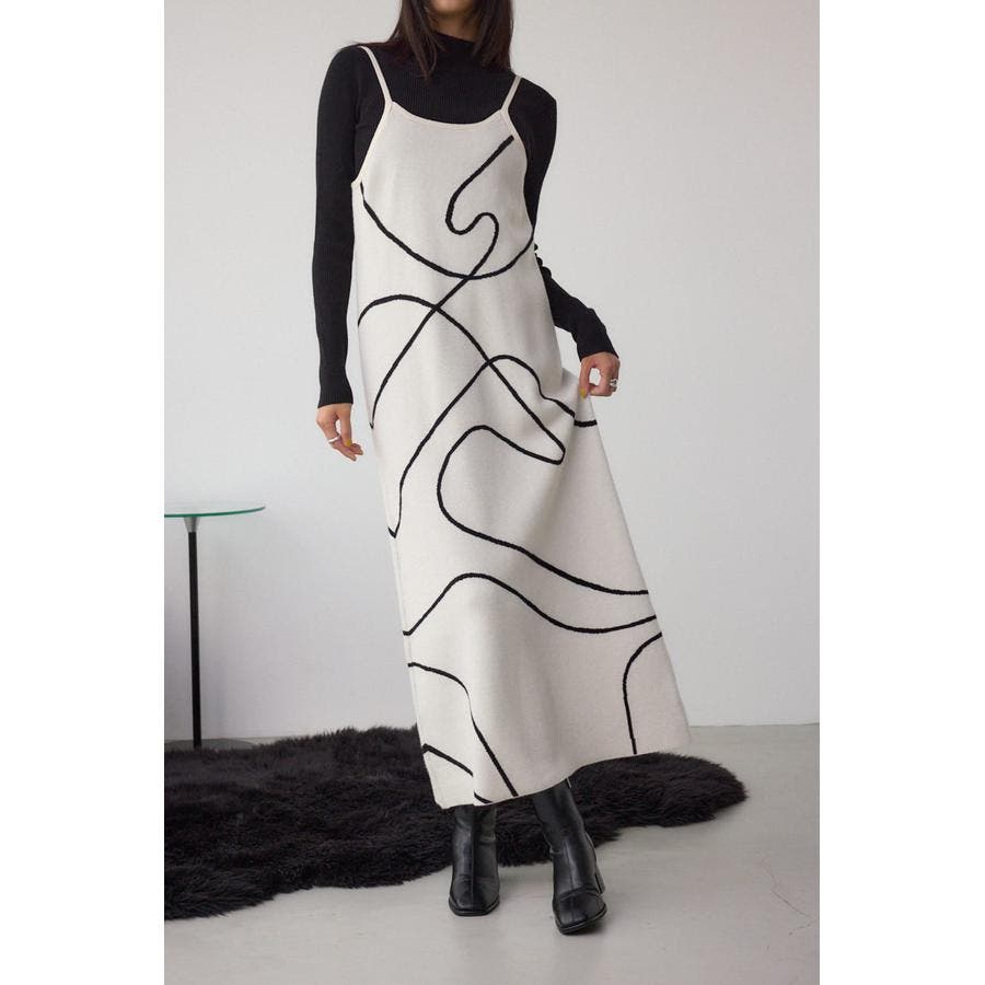 ライン柄のニットキャミワンピースとハイネックインナーニットがセットになった、トレンドのレイヤードスタイルを即完成させるアイテム。