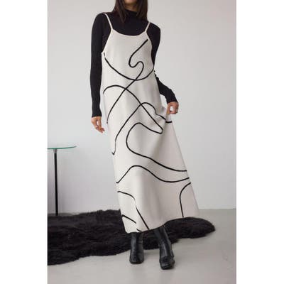 ライン柄のキャミワンピースは、配色デザインがモードな印象を与え、単品でも着映え抜群。