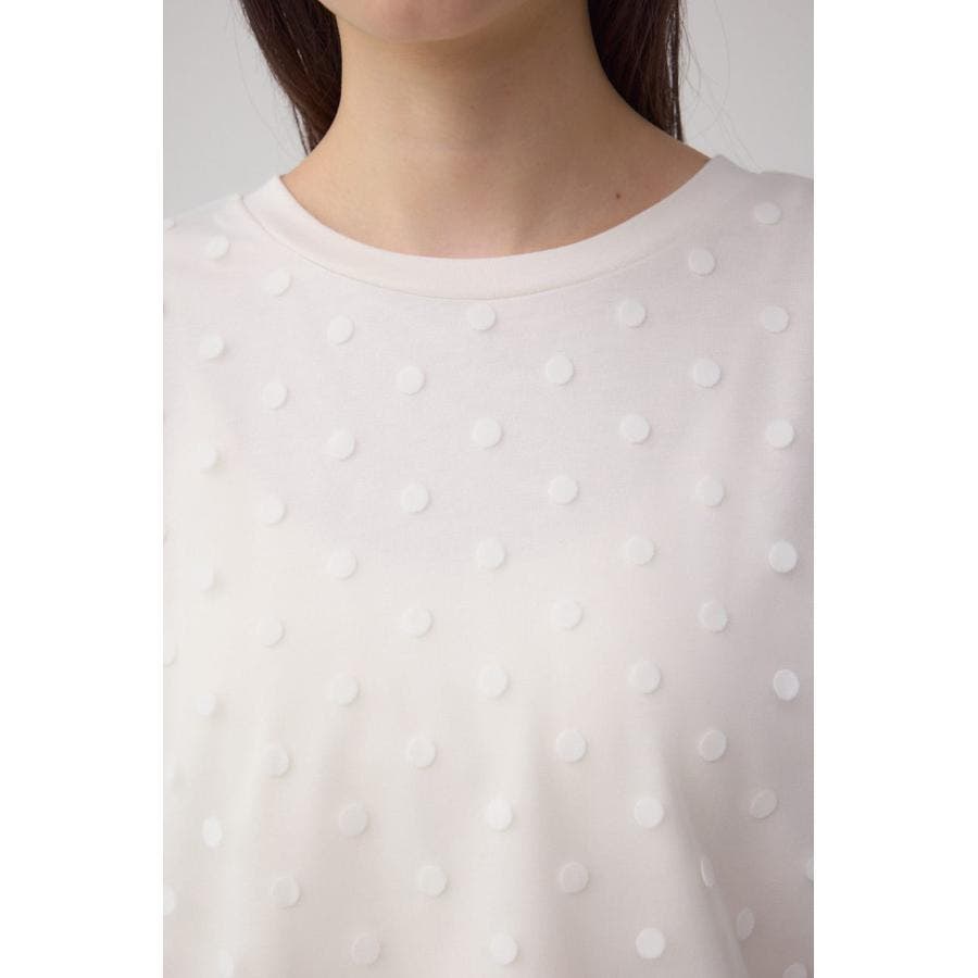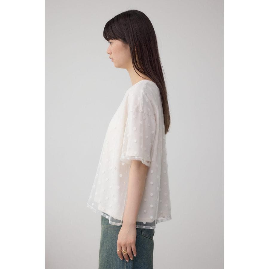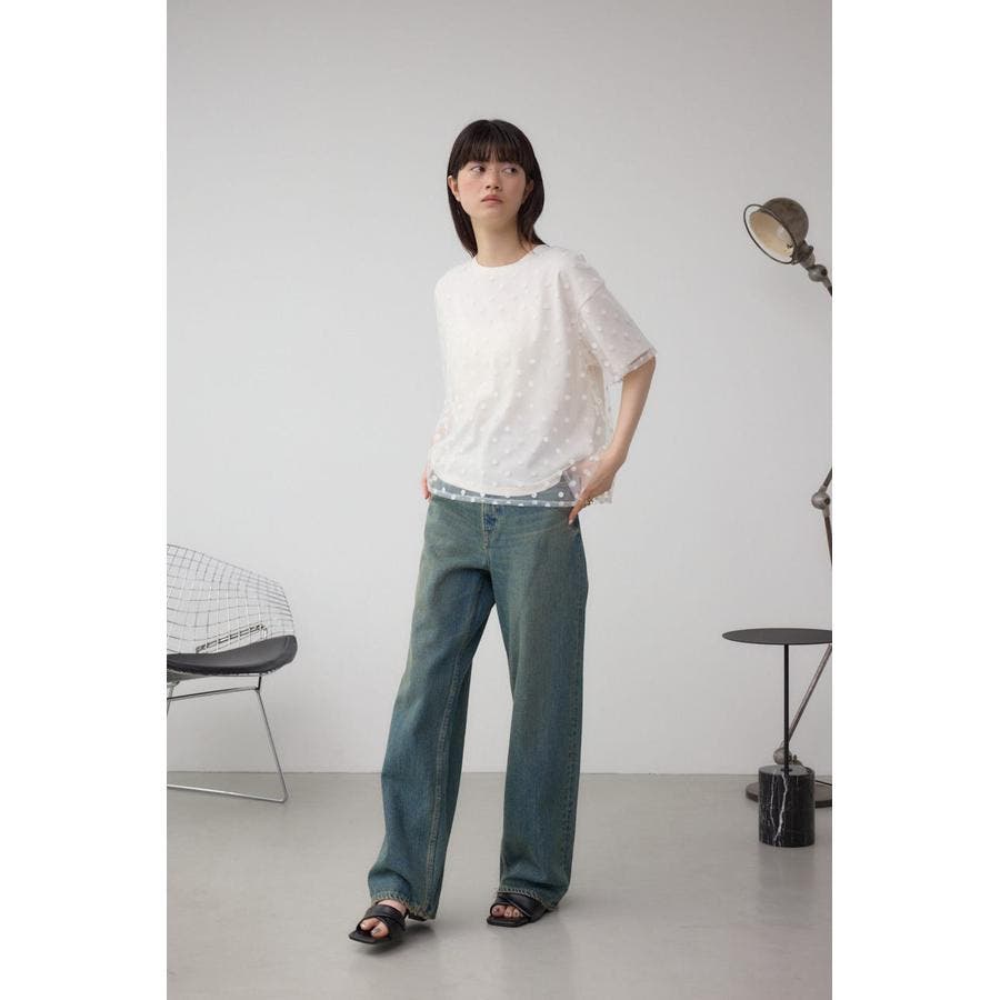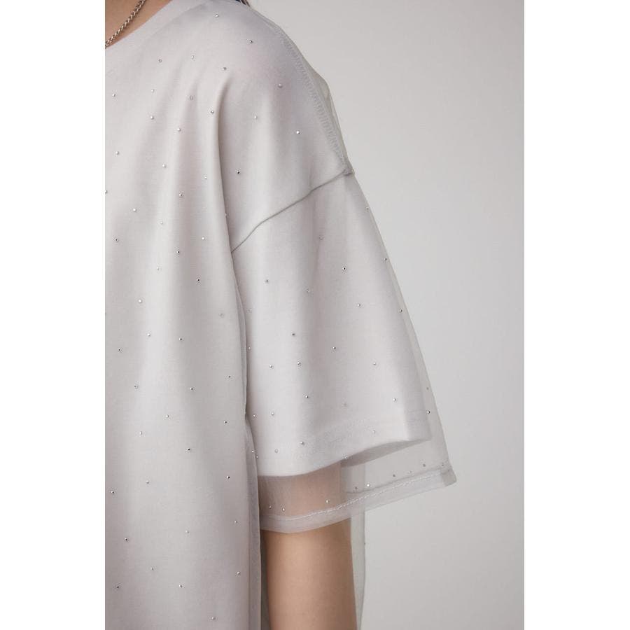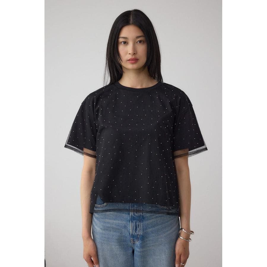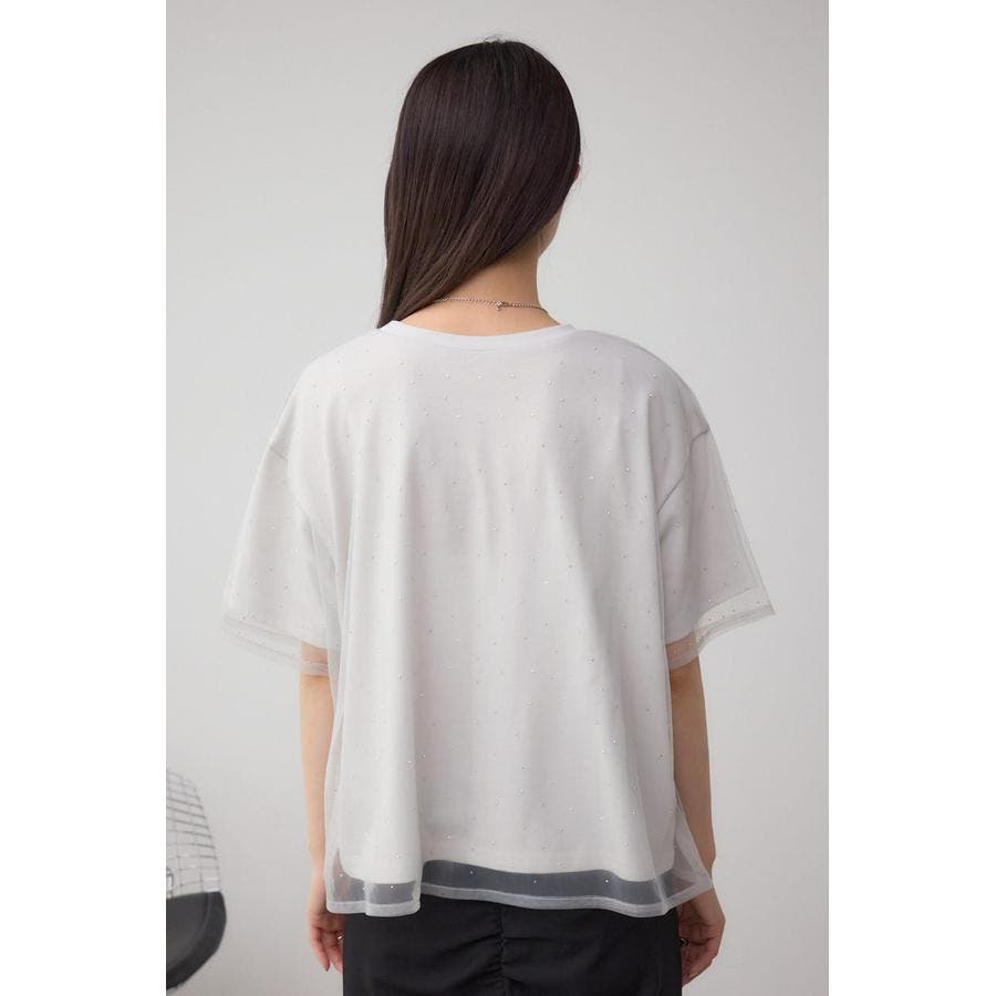 繊細なチュールをドッキングした、大人フェミニンなムード漂うTシャツ。