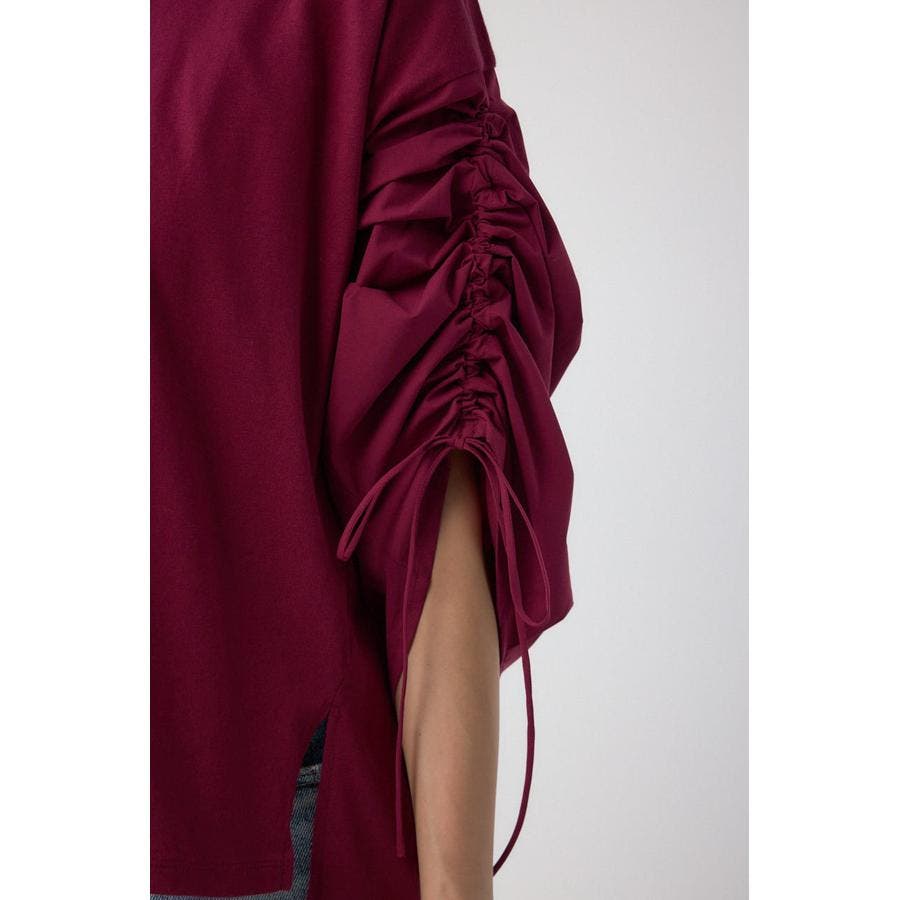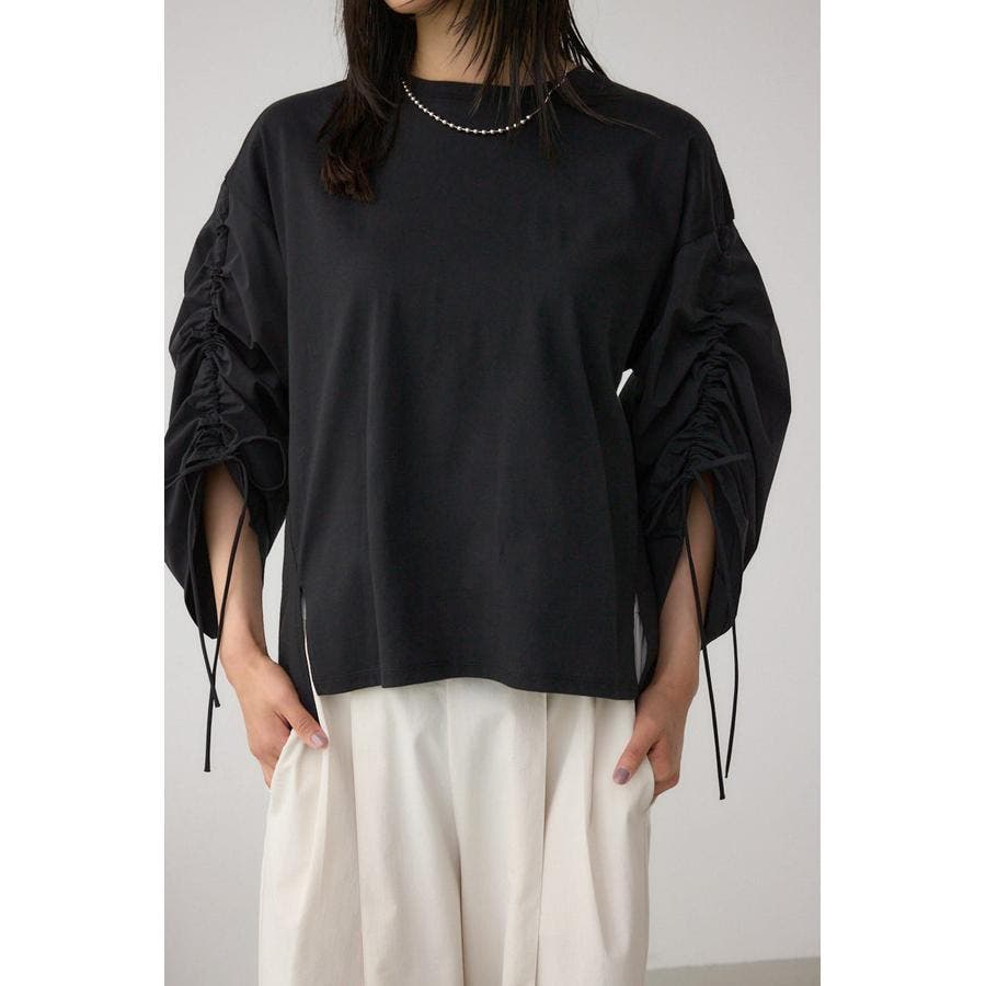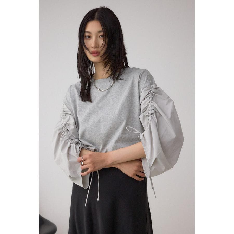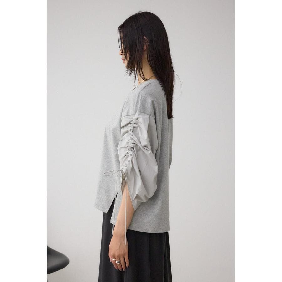 タックの入ったボリューム感のある布帛袖がデザインポイント。