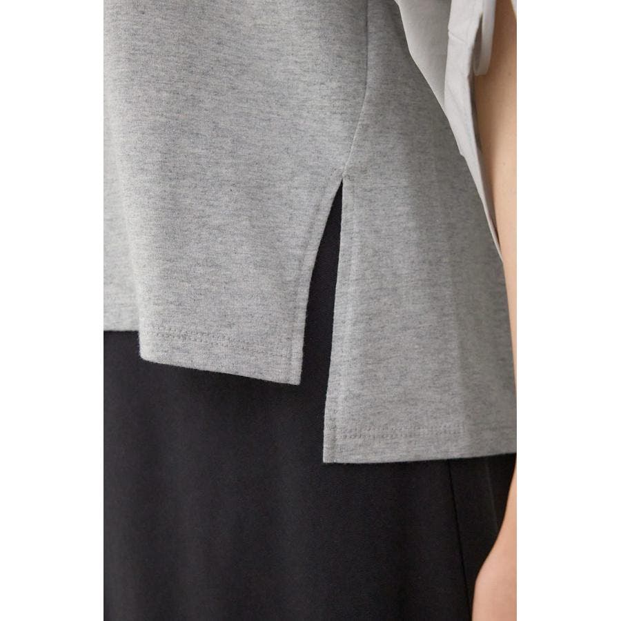 肌なじみの良い天竺素材とマットな布帛素材です。