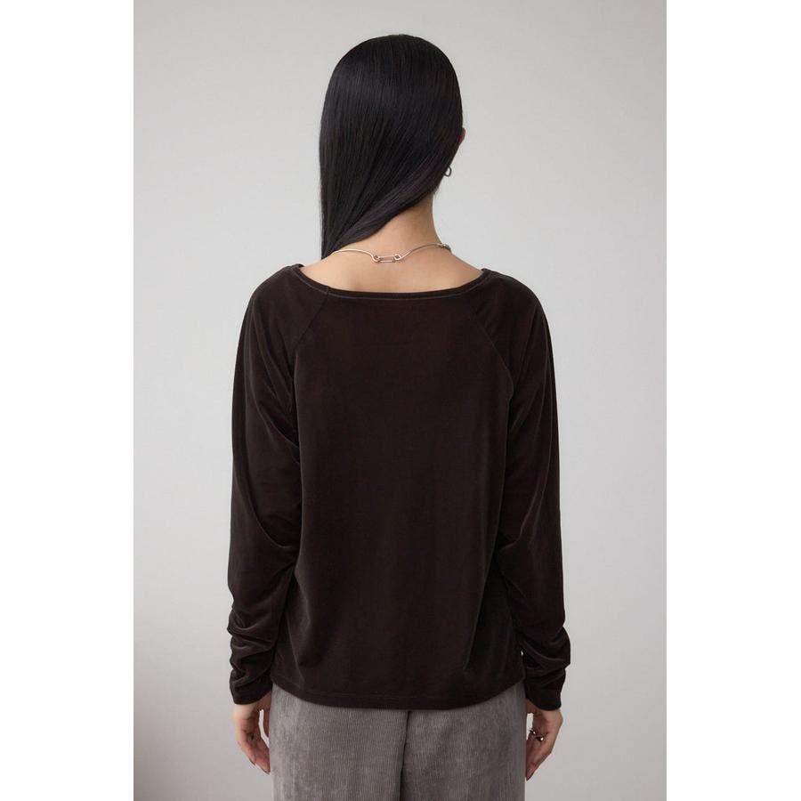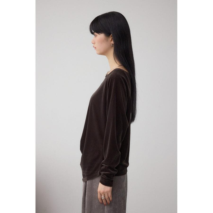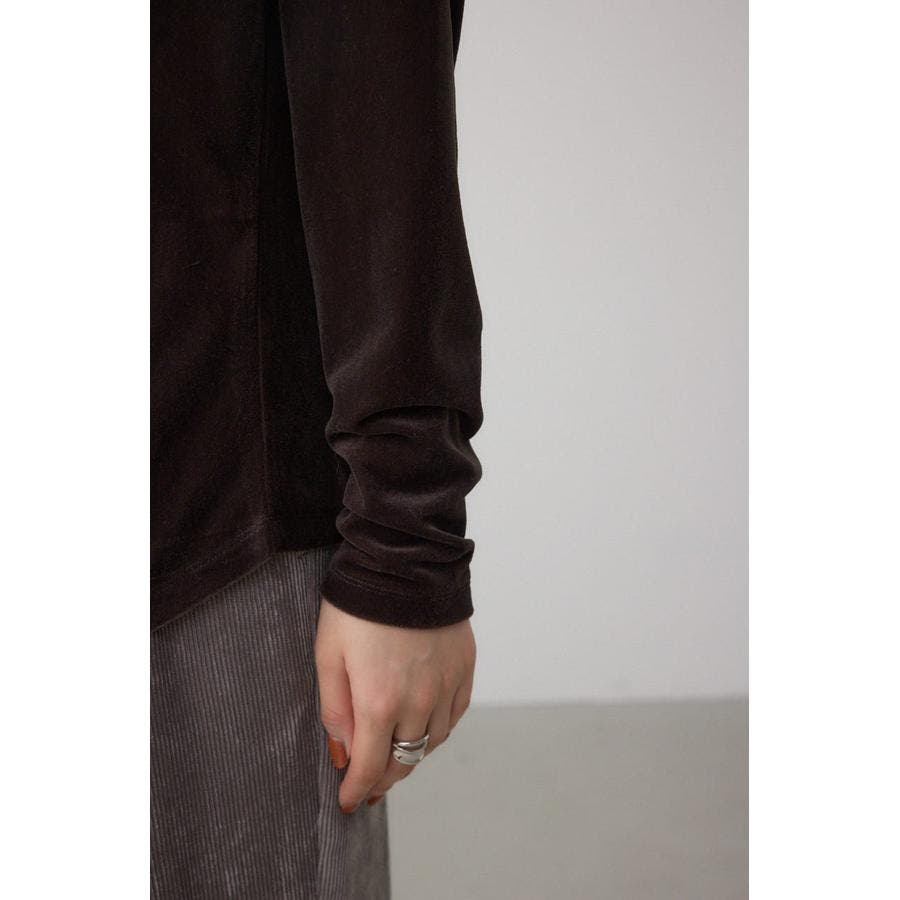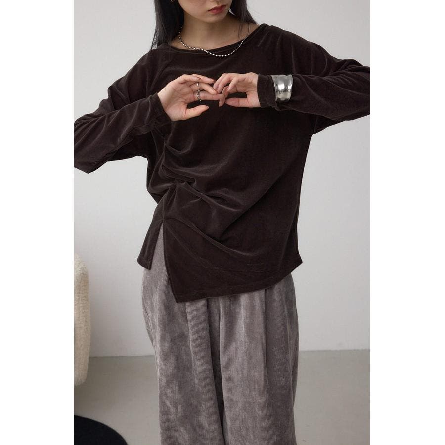 アシンメトリーのヘムのカットがポイントのベロアトップス。