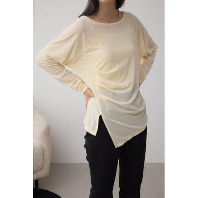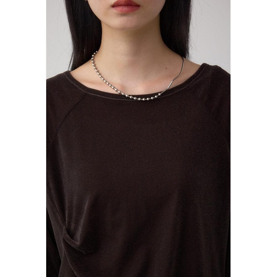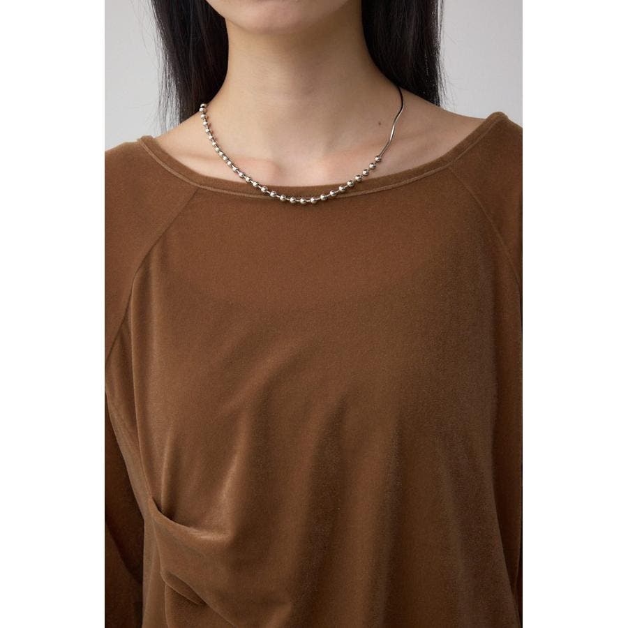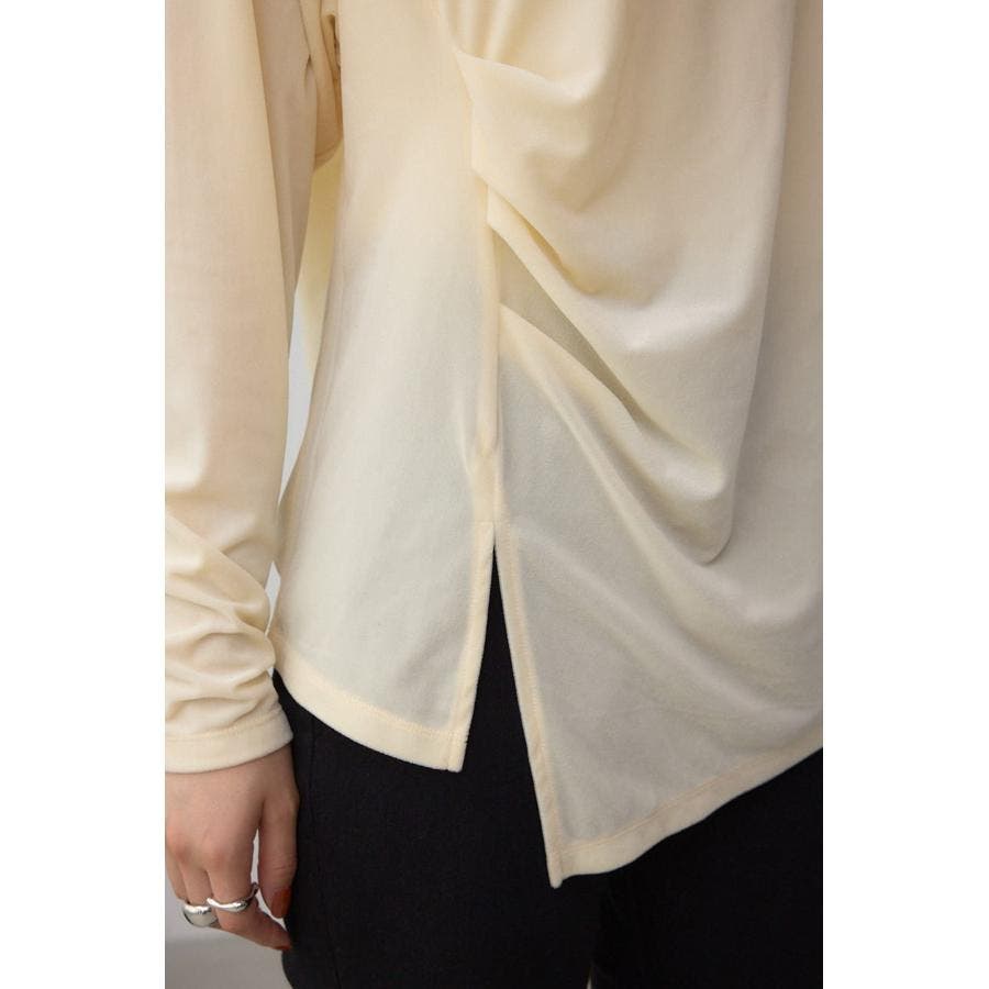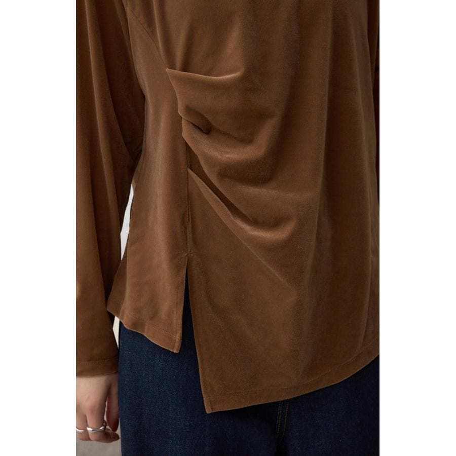 アシンメトリーのヘムのカットがポイントのベロアトップス。