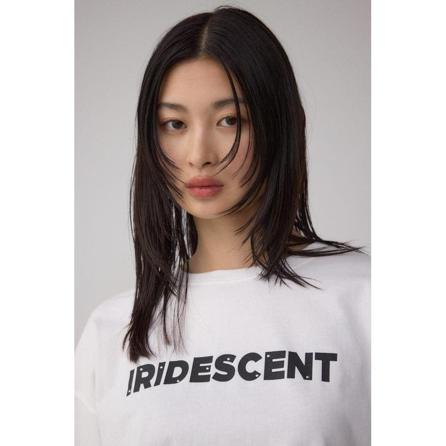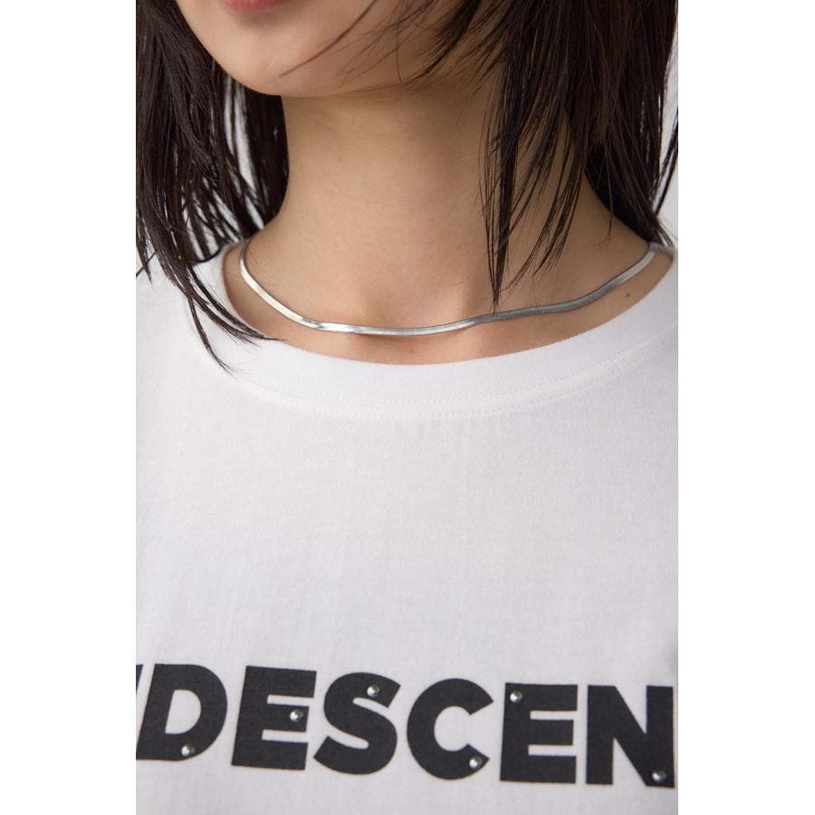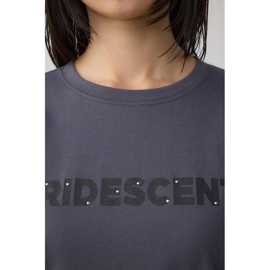程よいゆとりのボディに、英字ロゴプリントにあしらったスタッズがポイント。