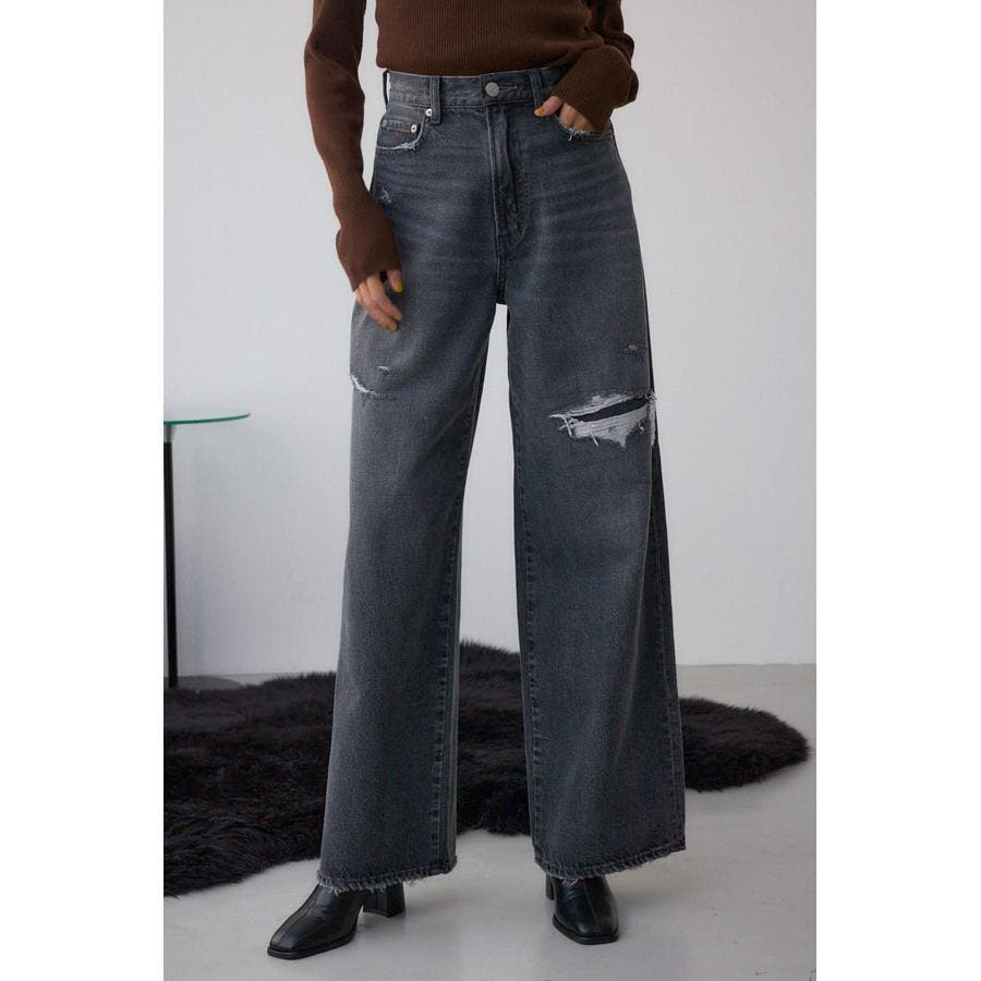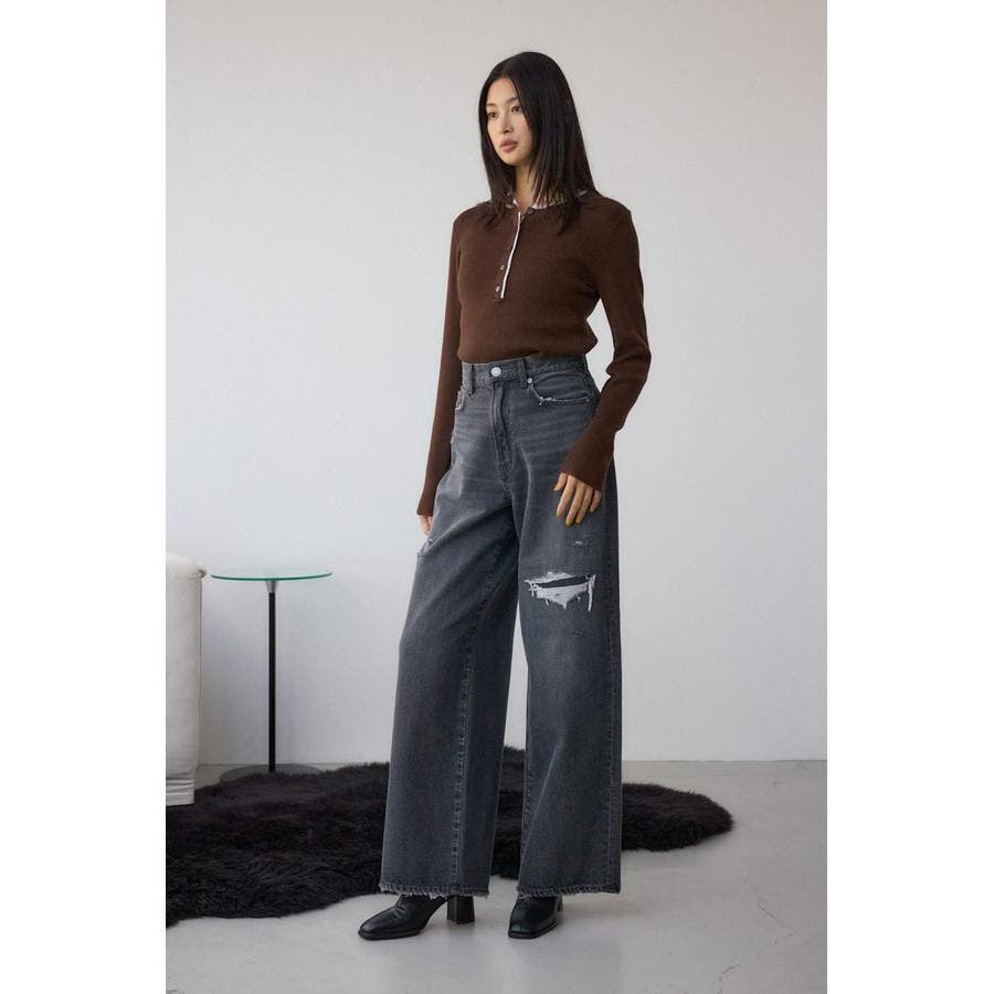 ワイドシルエットにリペアデザインが旬なデニムパンツです。