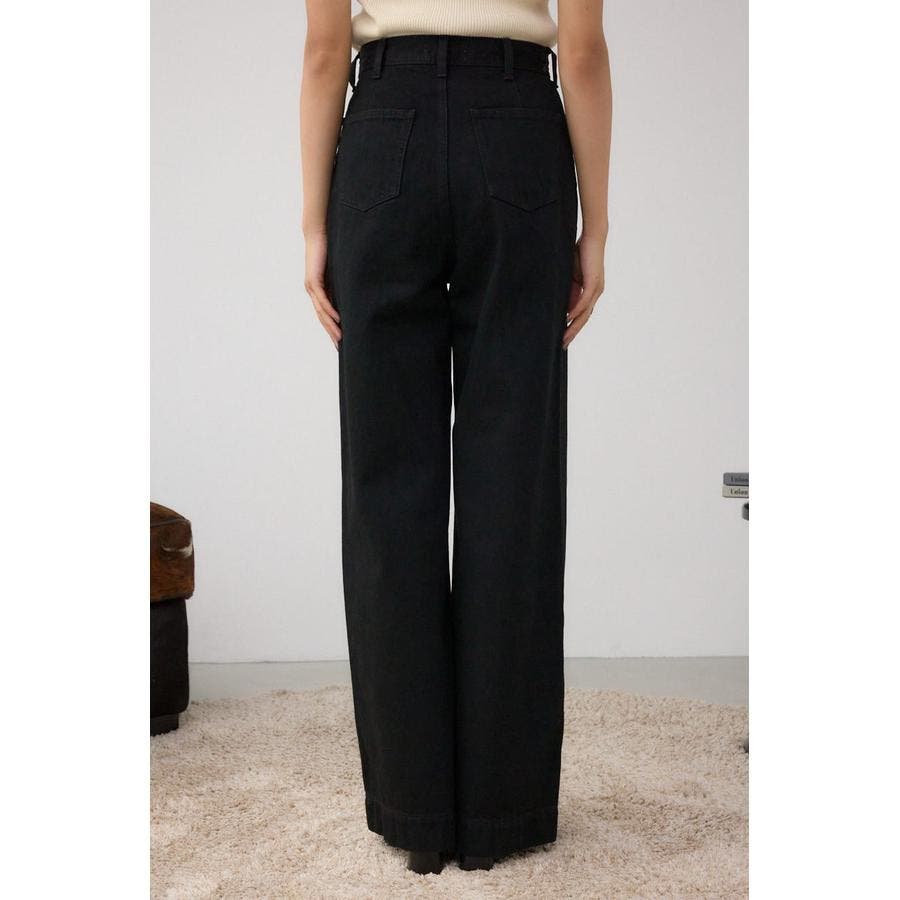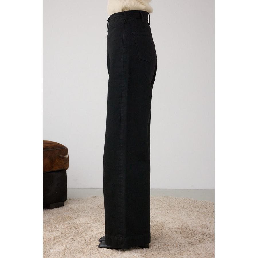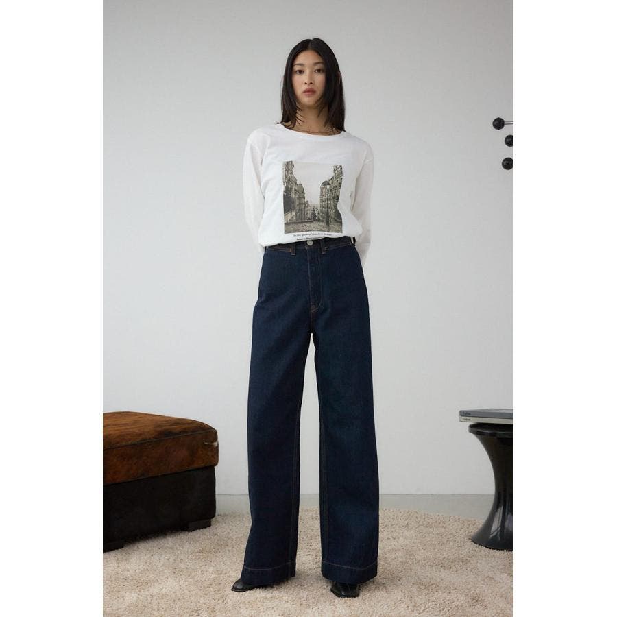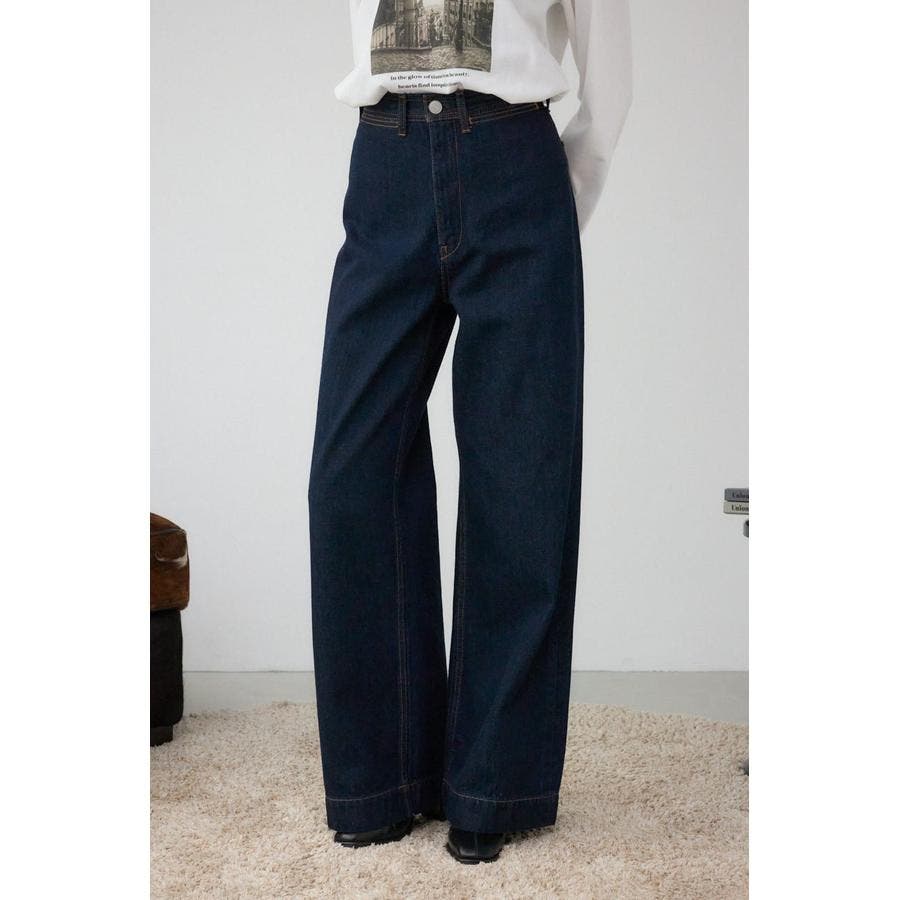 ハイウエストとワイドストレートの美シルエットで、上品に脚長効果を叶えるデニムパンツ。