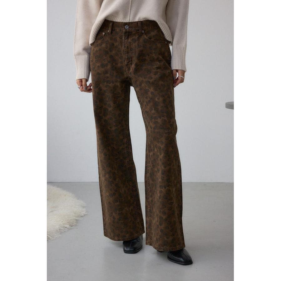 オリジナルのレオパード柄を施したジャストウエストで着用して頂くワイドデニムです。
