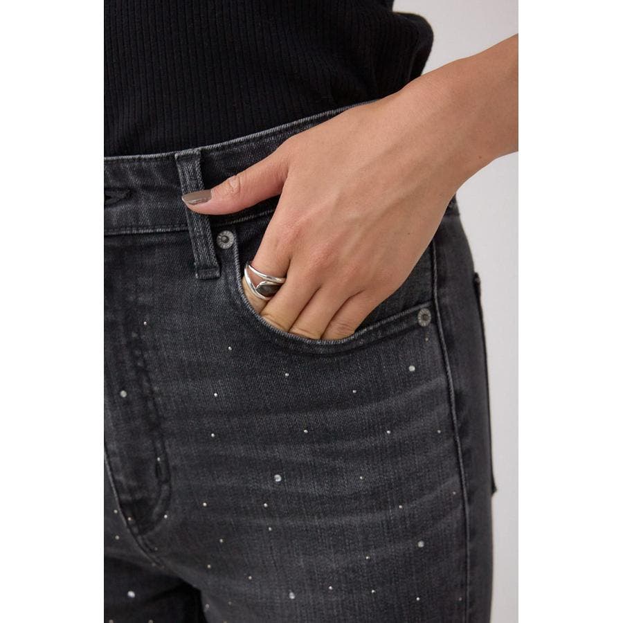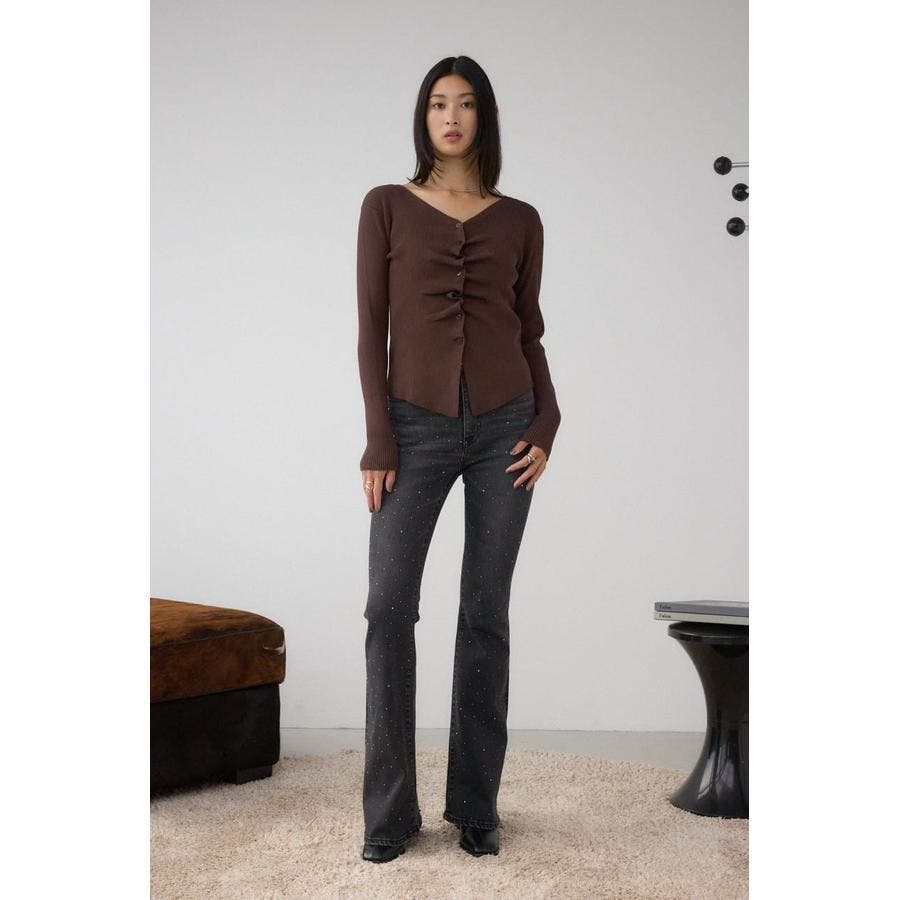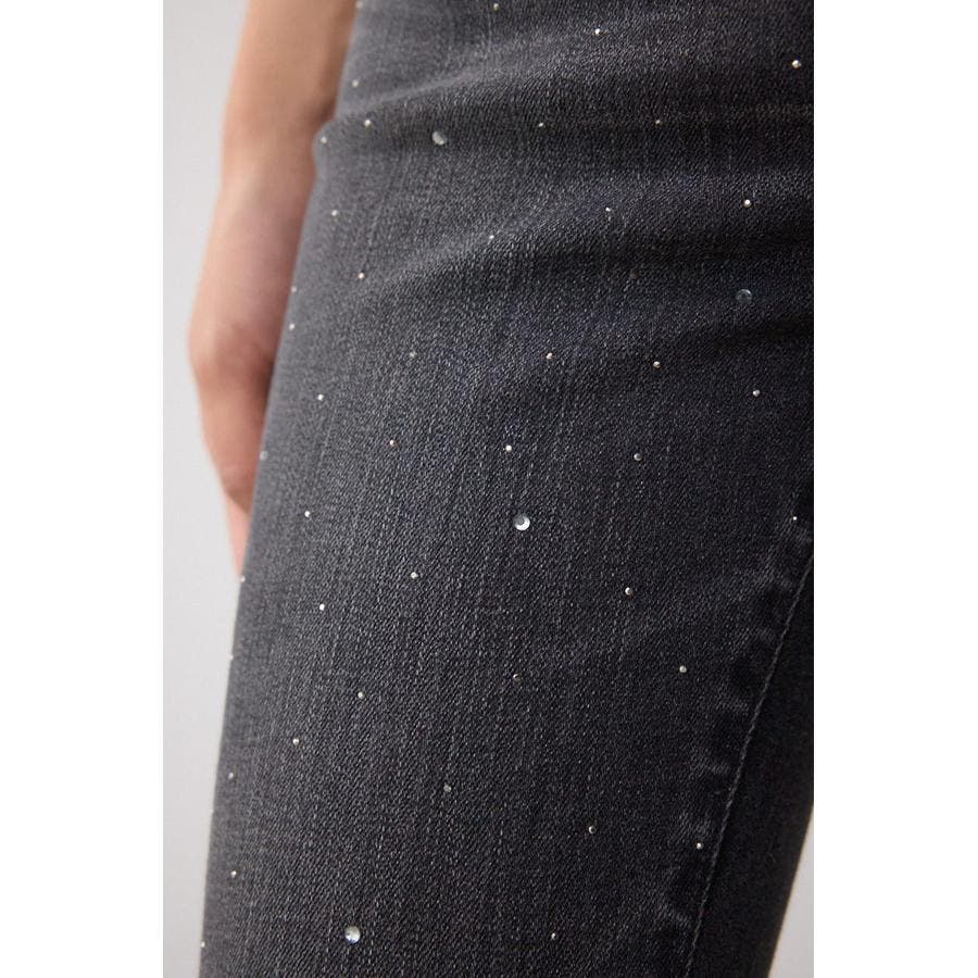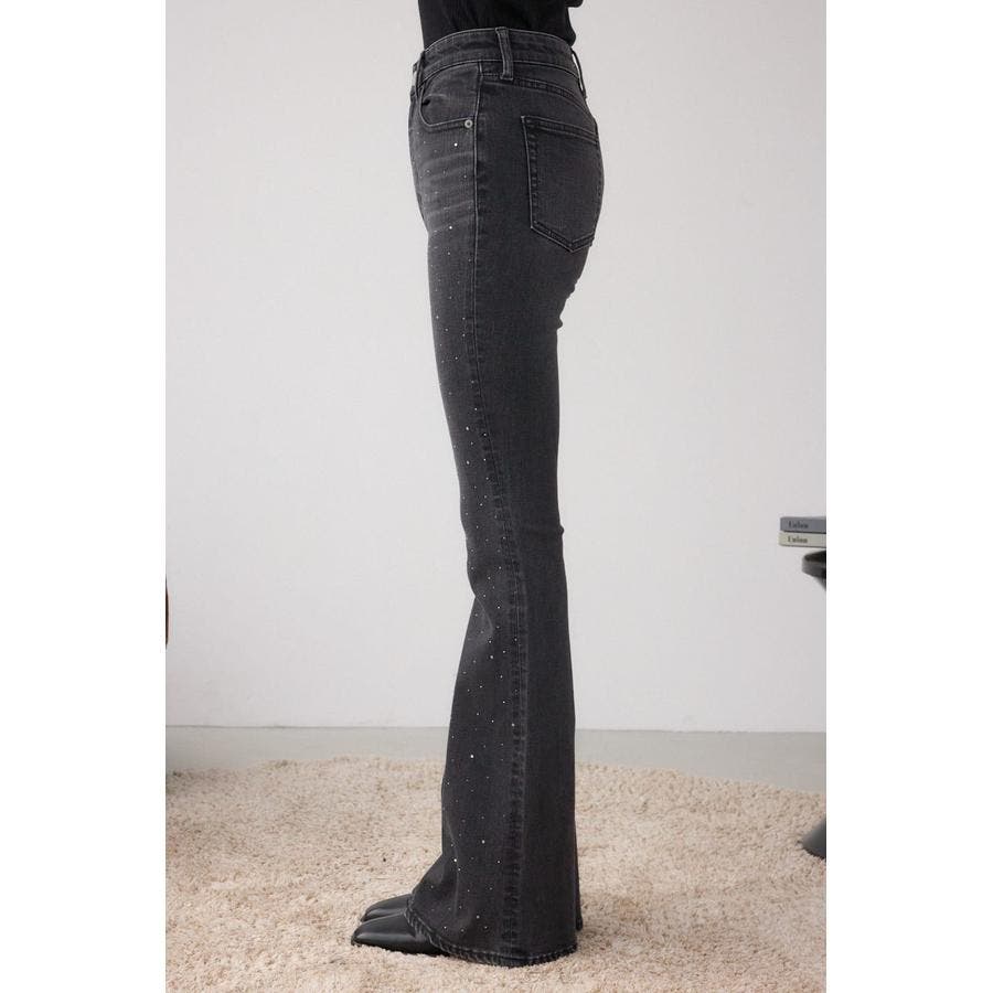 キラリと光る様々なサイズのラインストーンを散りばめたキャッチーなフレアデニム。