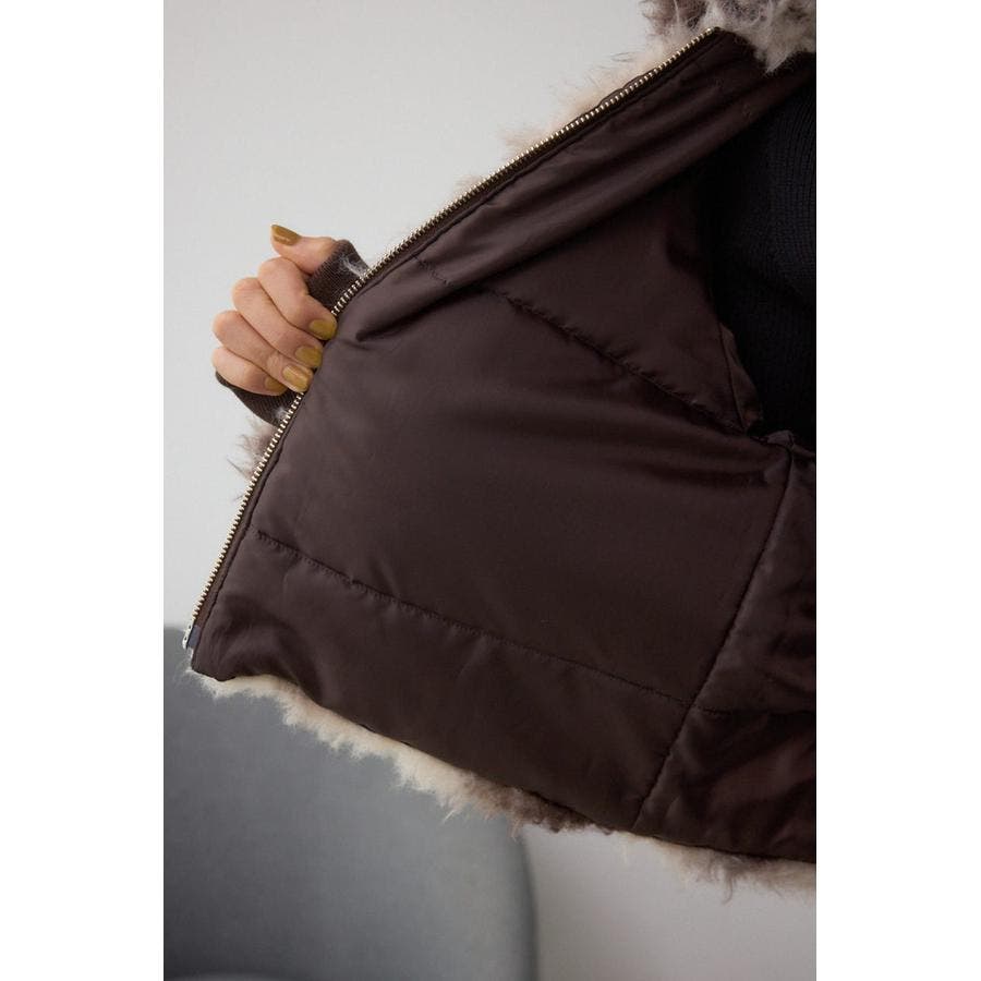 ふっくら膨らみのあるボアを使用していますが、薄中綿も入っているのでとても暖かいです。