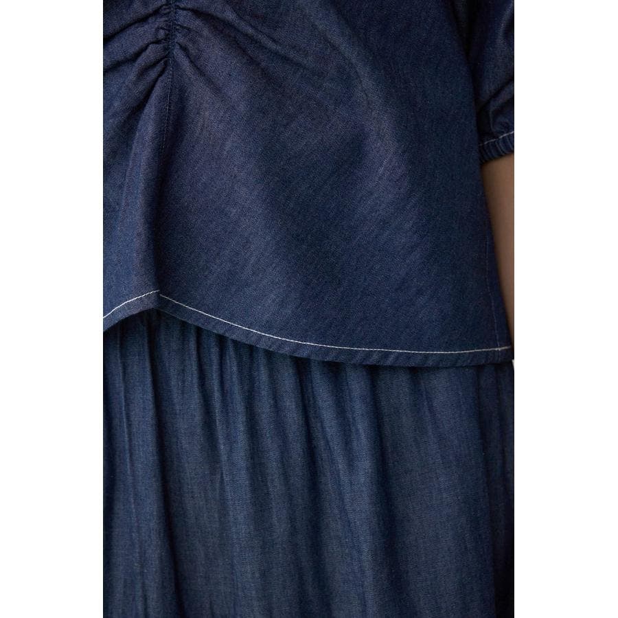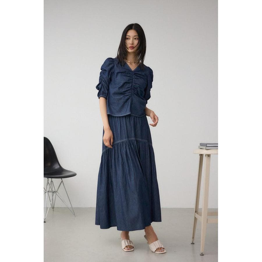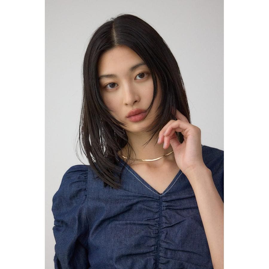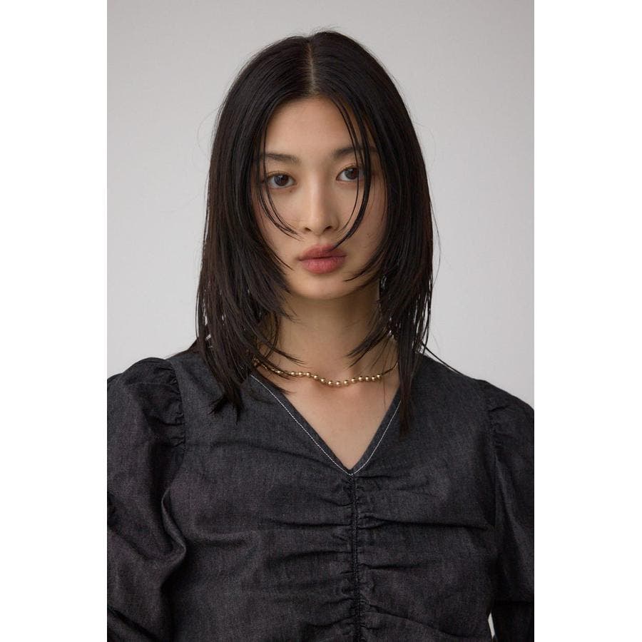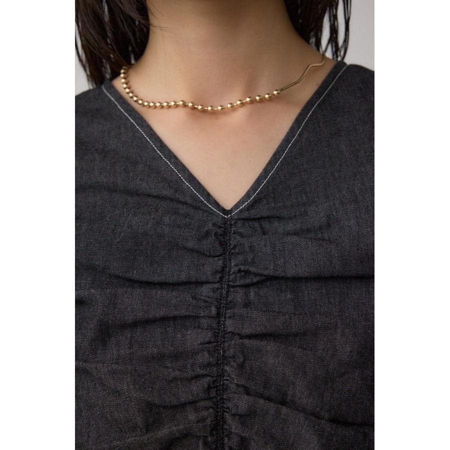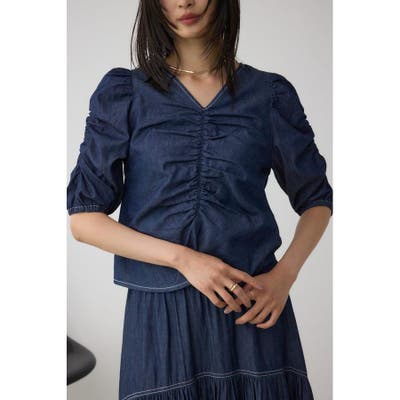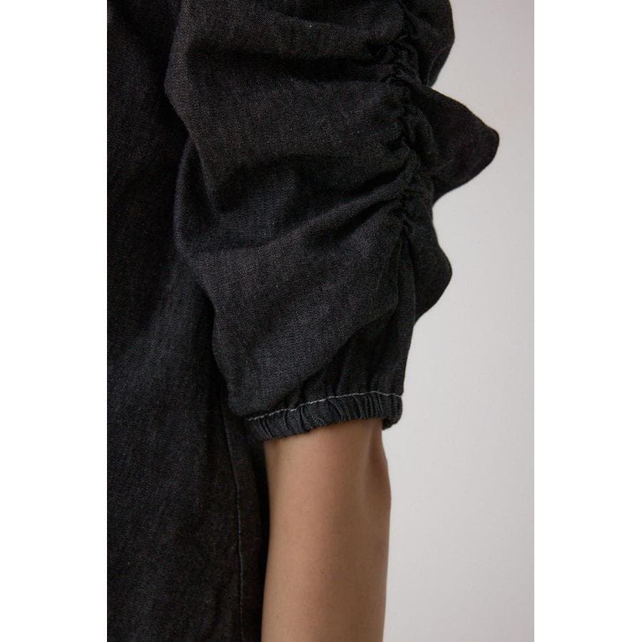 ギャザーを袖とフロントに施したAZULらしいデニムブラウス。