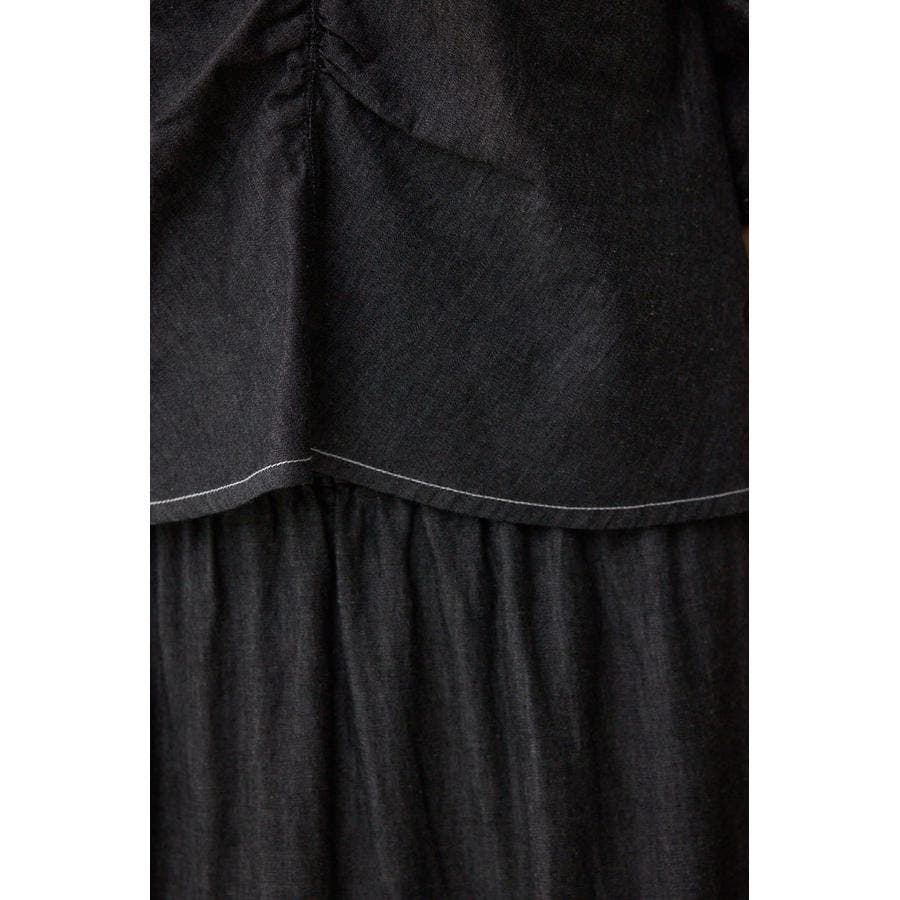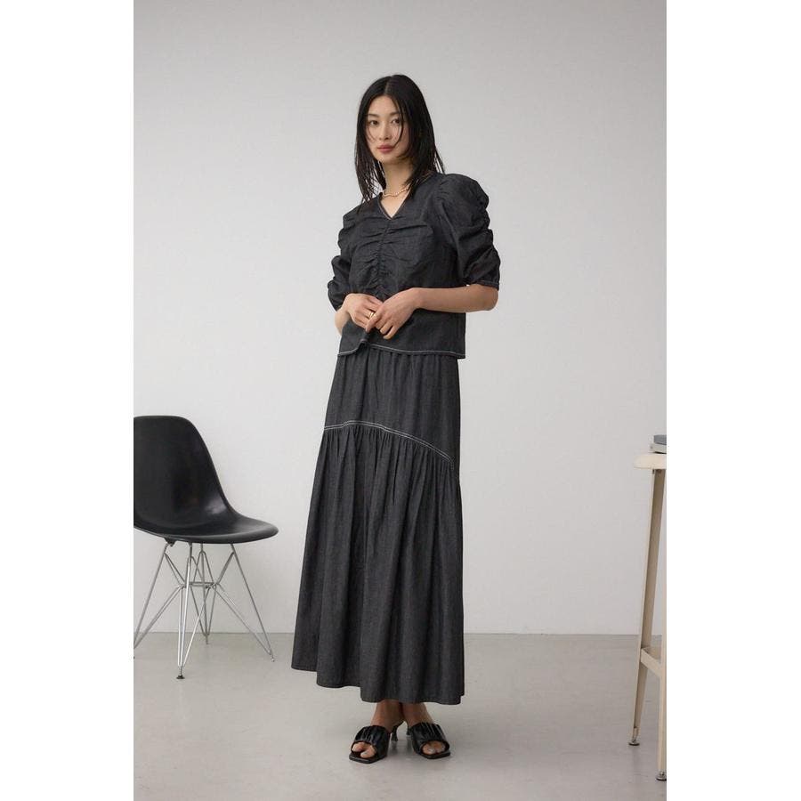 同素材のスカート(250IAB31-0551 デニムライクギャザーフレアスカート)と合わせてセットアップとして着用可能です。