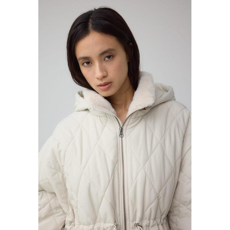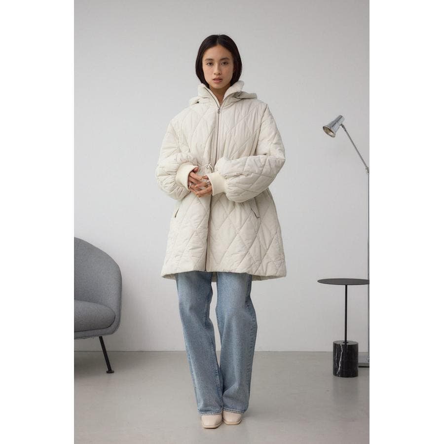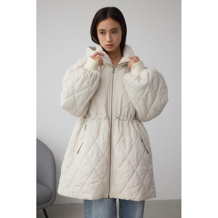 ダイヤ型のキルティングで女性らしくウエストシェイプ出来るシルエットのコートです。