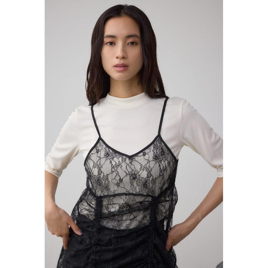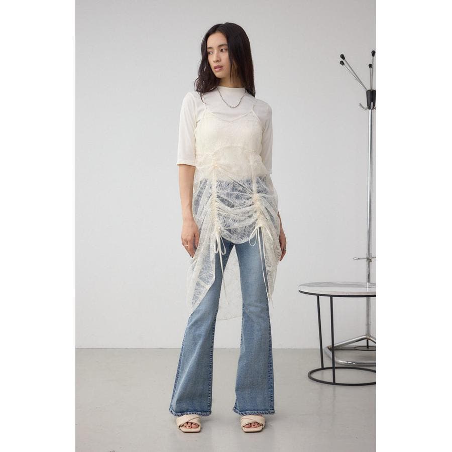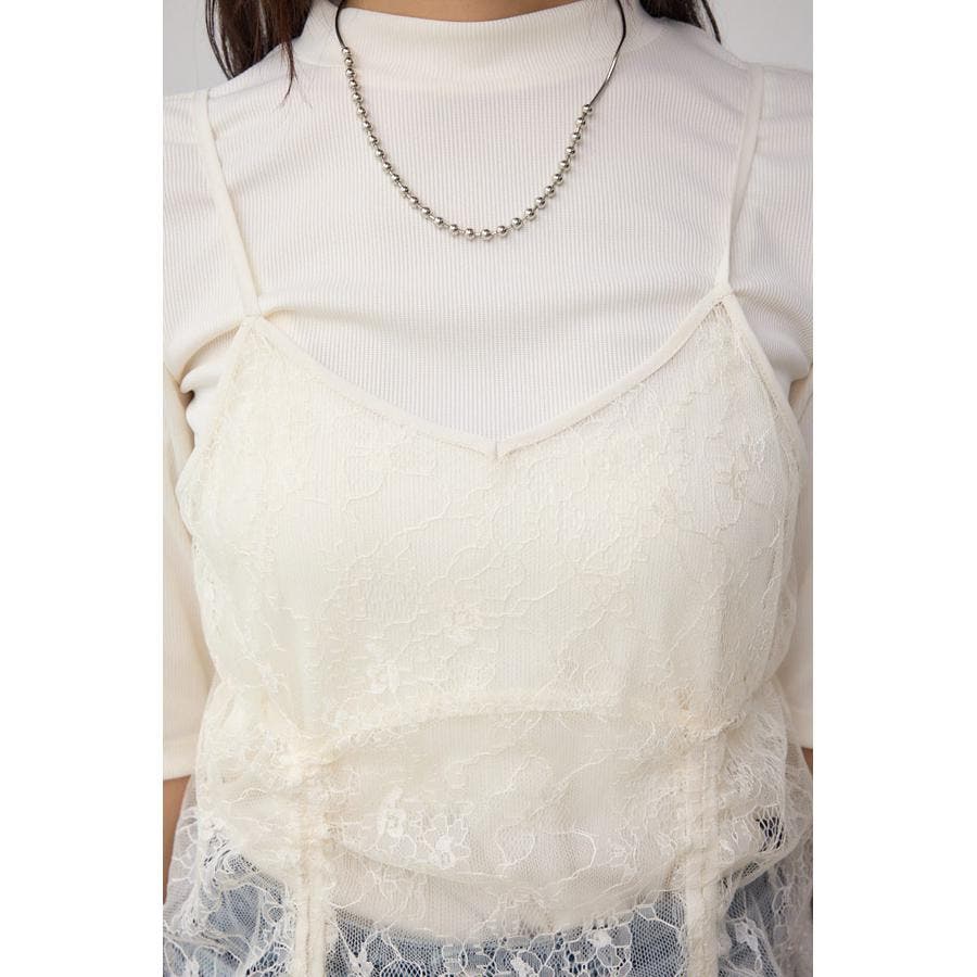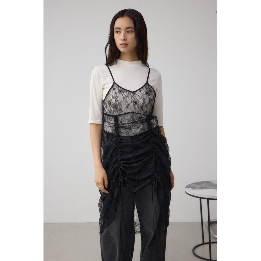 レースキャミソールはフロントにドロストが付いてるのでお好みの着丈でブラウジングが出来る仕様です。