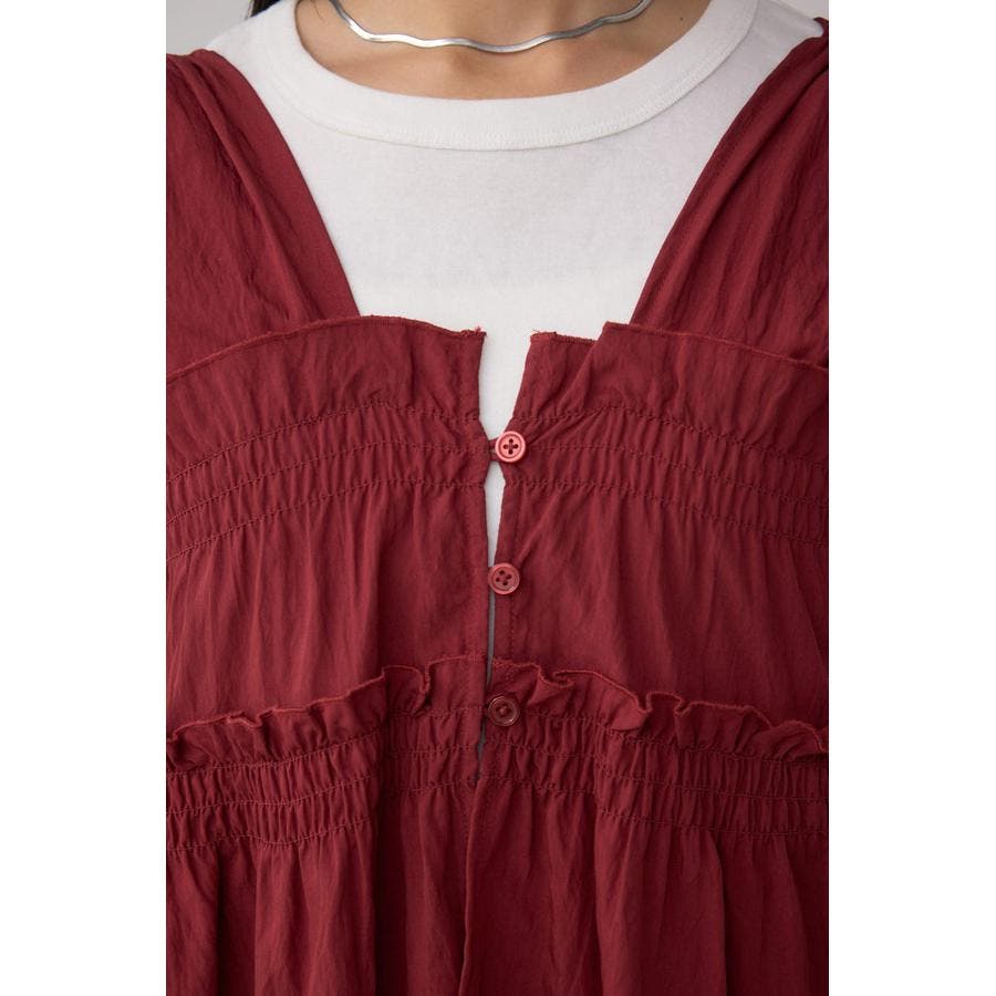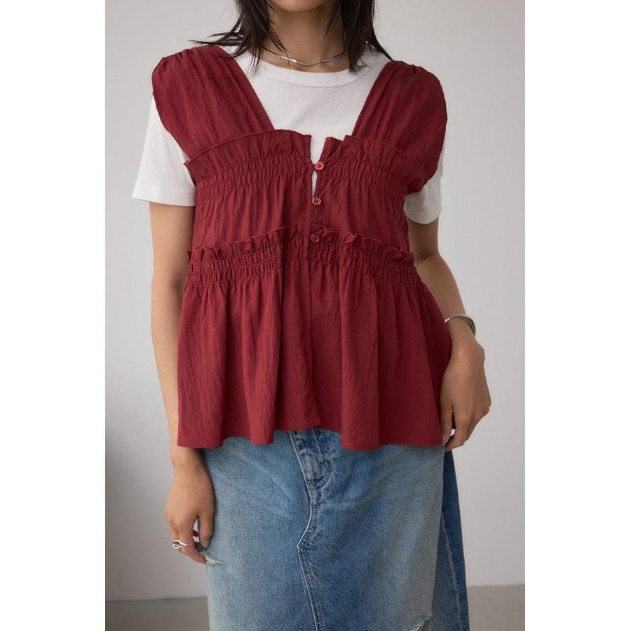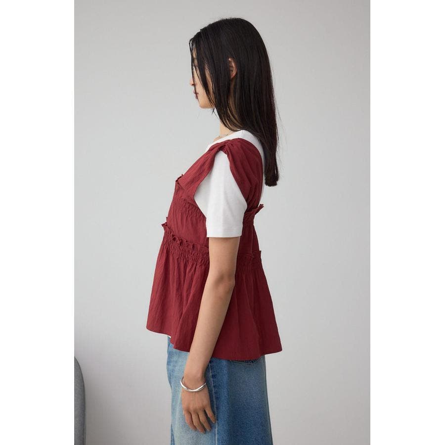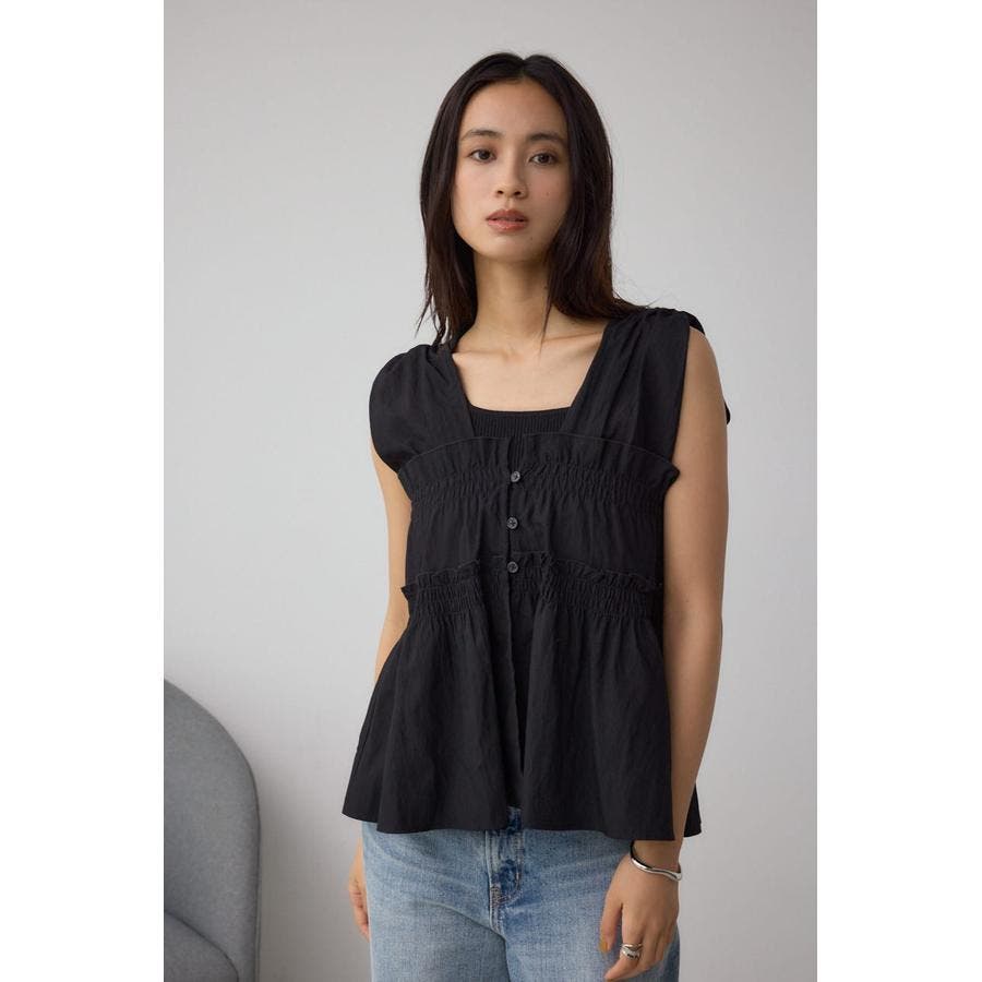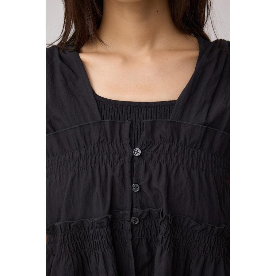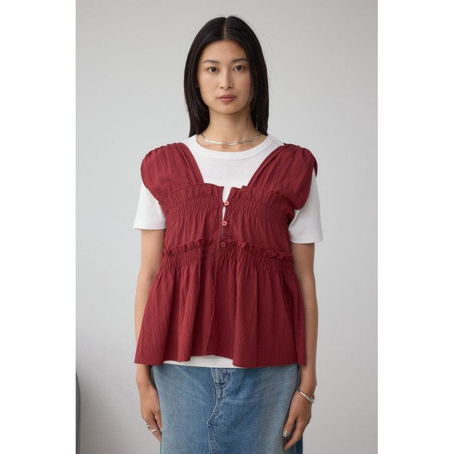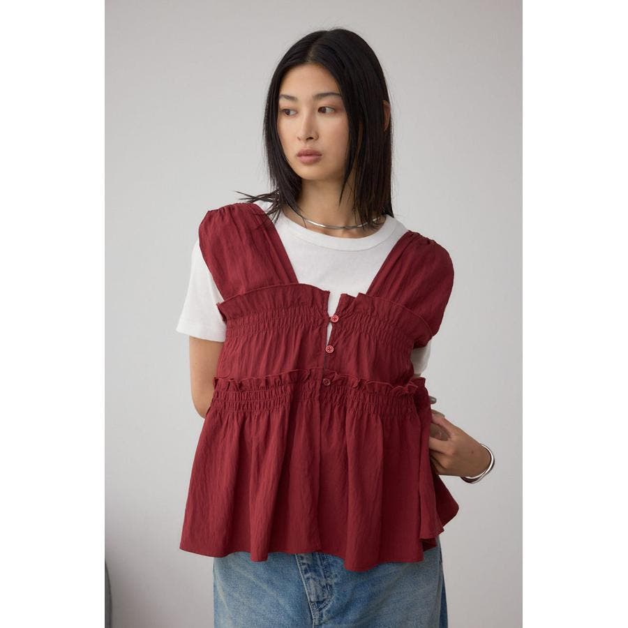 ギャザーデザインが、着こなしに華やかさと上品さをプラスします。