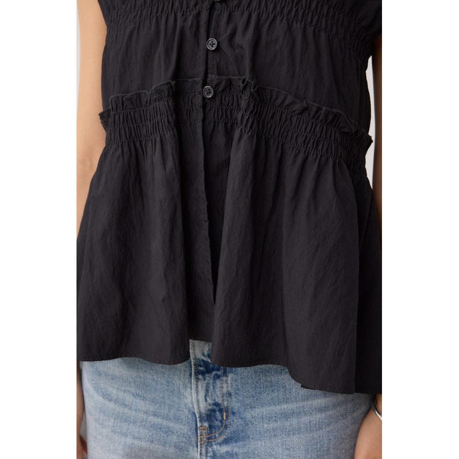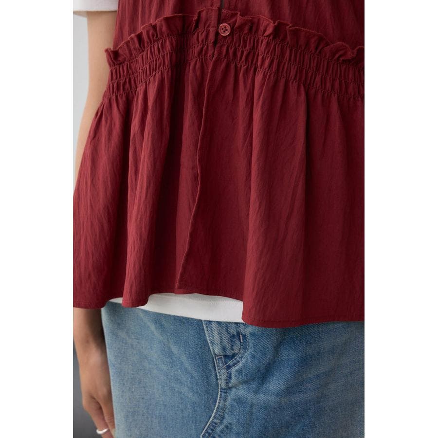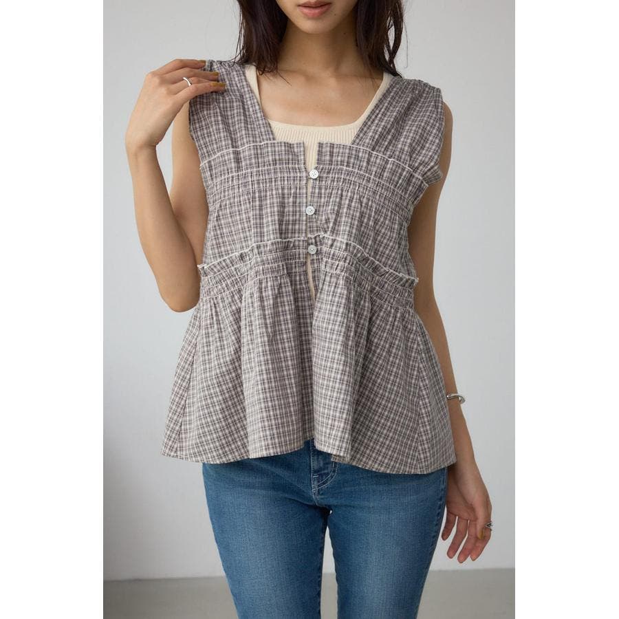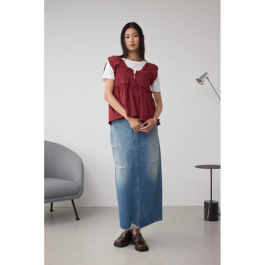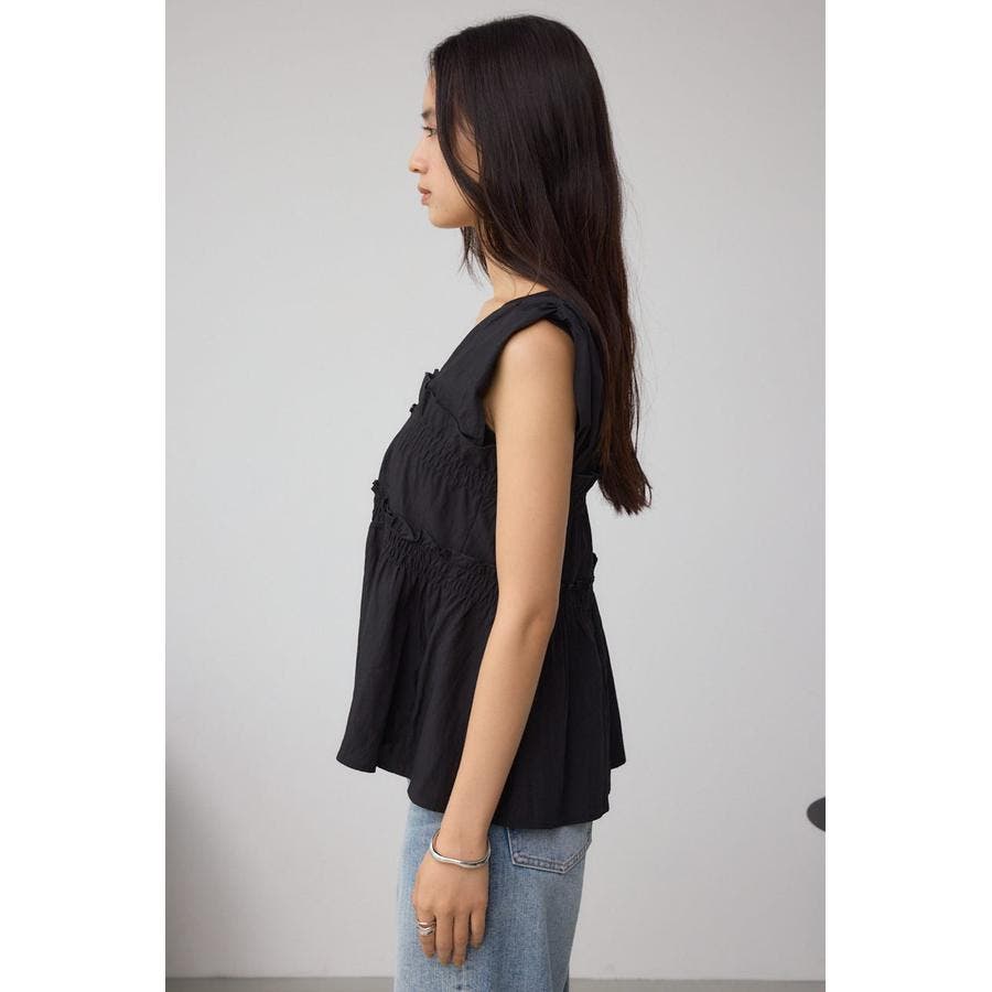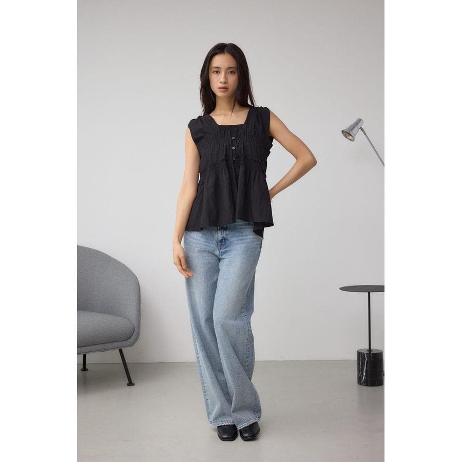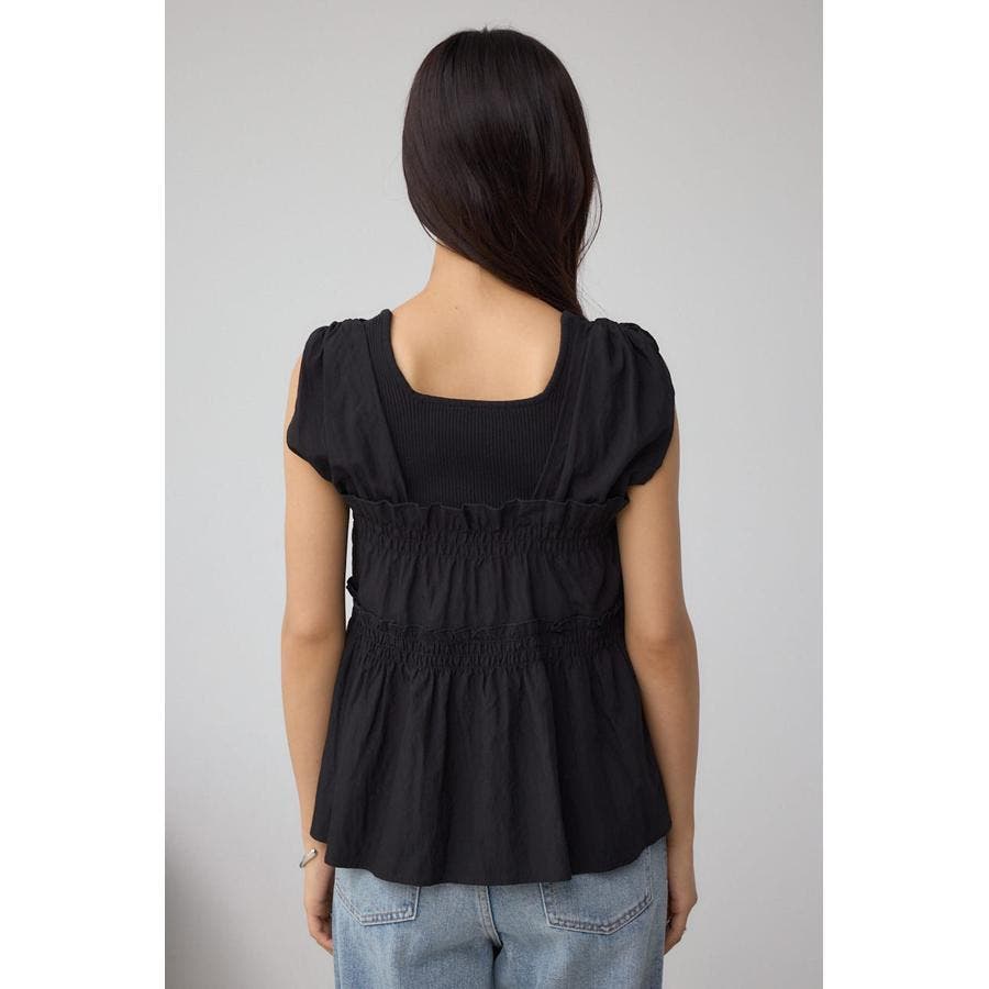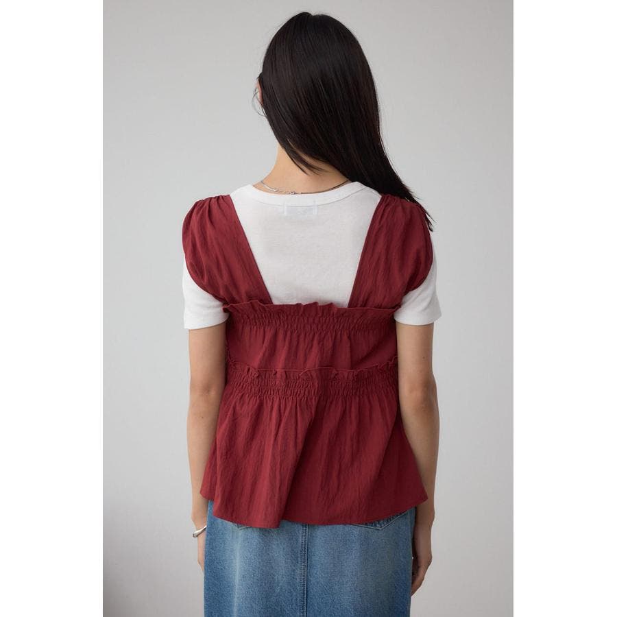 ギャザーデザインが、着こなしに華やかさと上品さをプラスします。