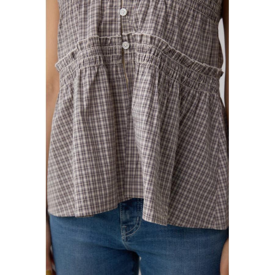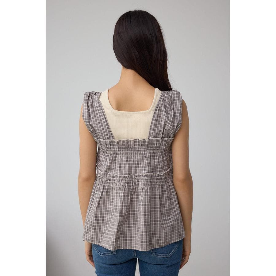 キャミソールと合わせたヘルシーなコーディネートやロゴTEE合わせでも。