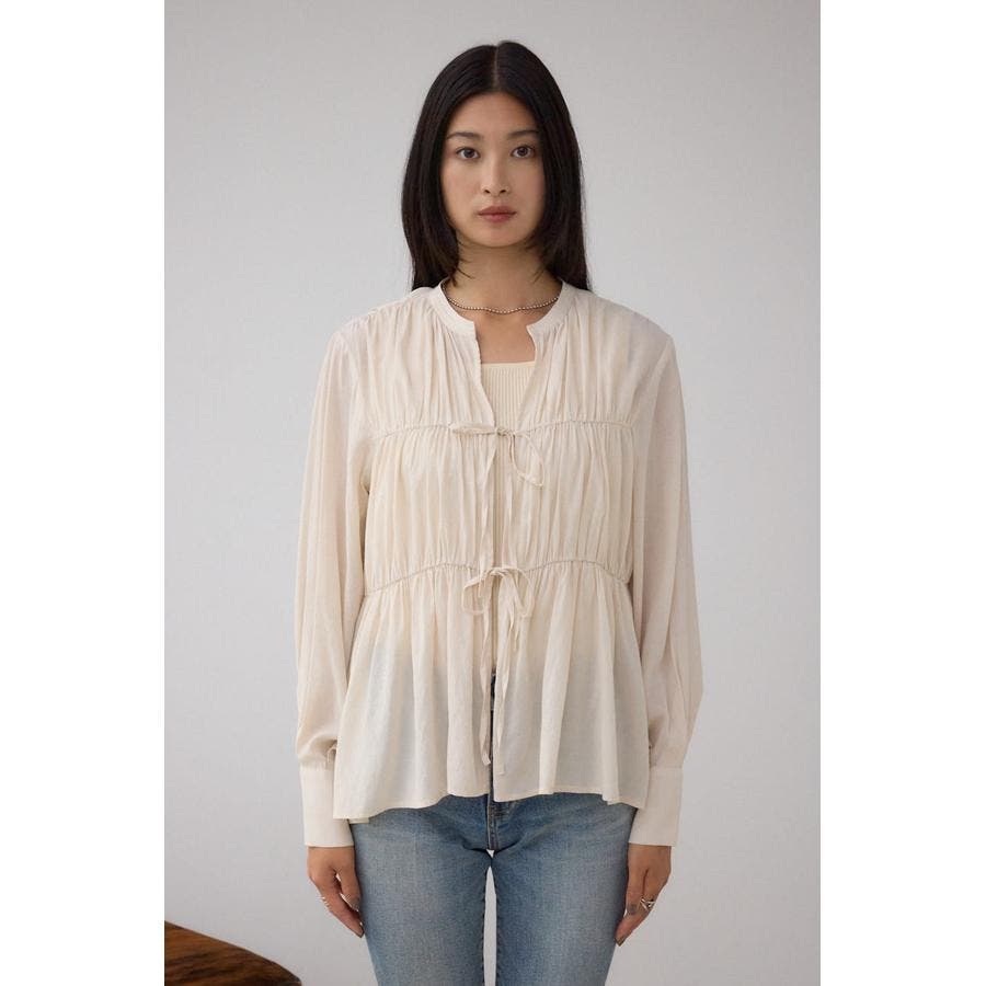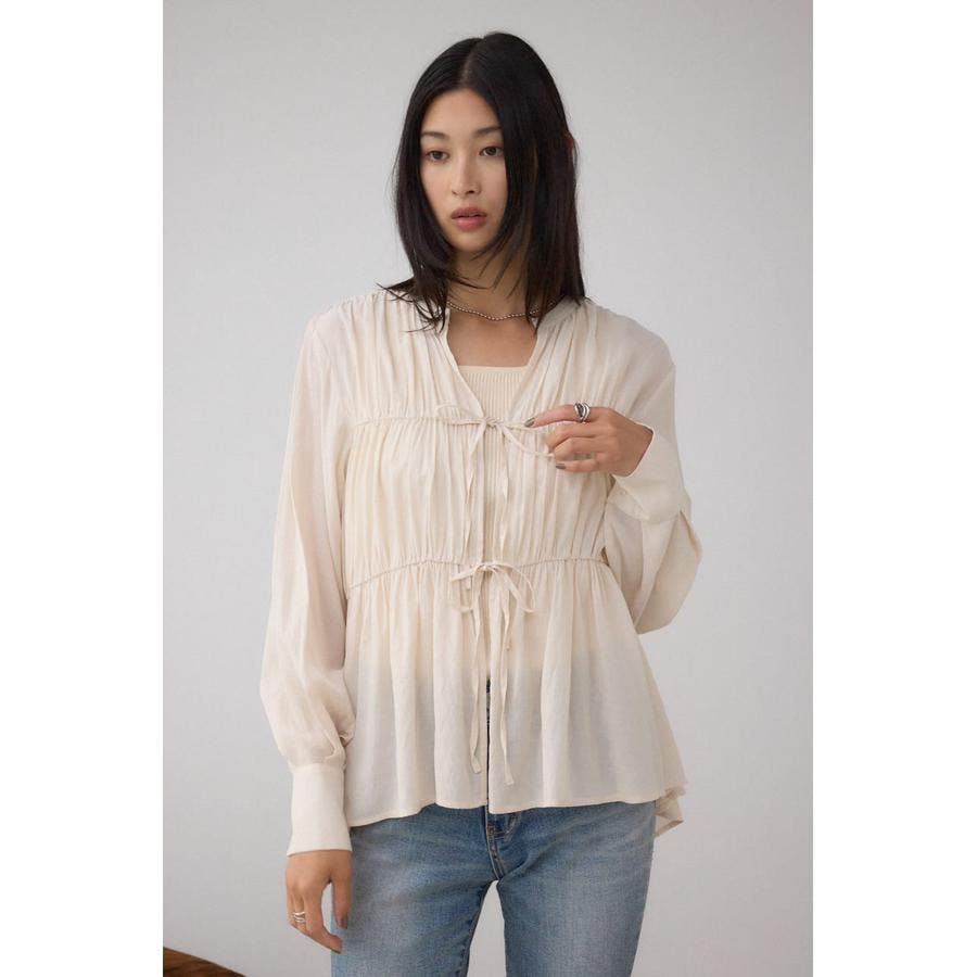 フロントリボン長袖シャツカーディガン