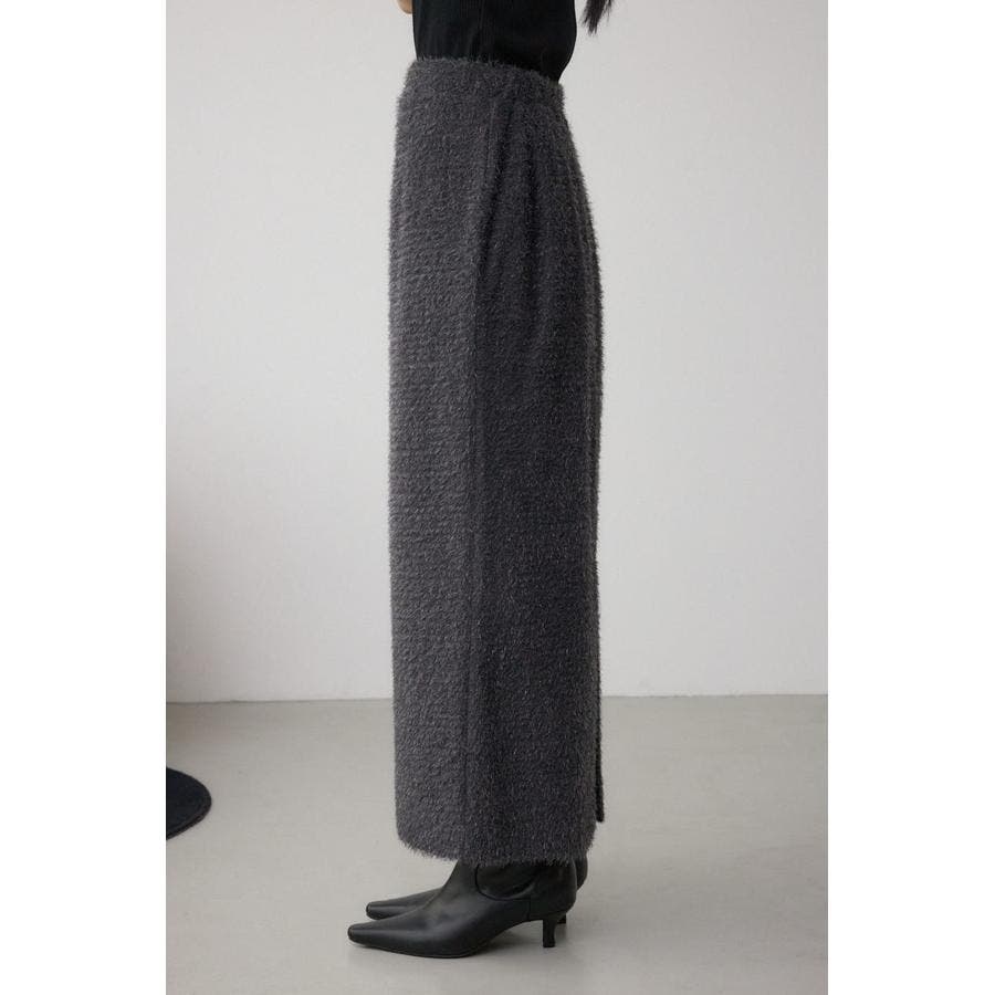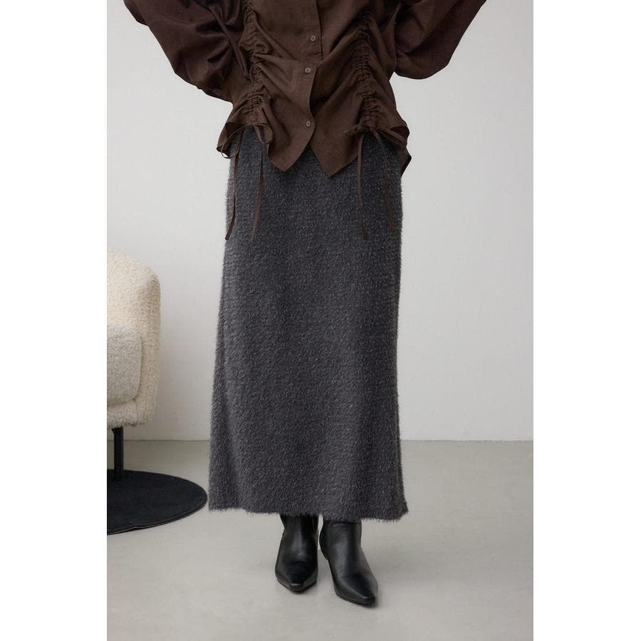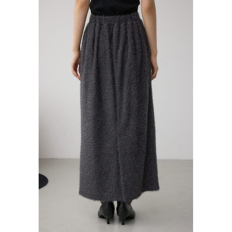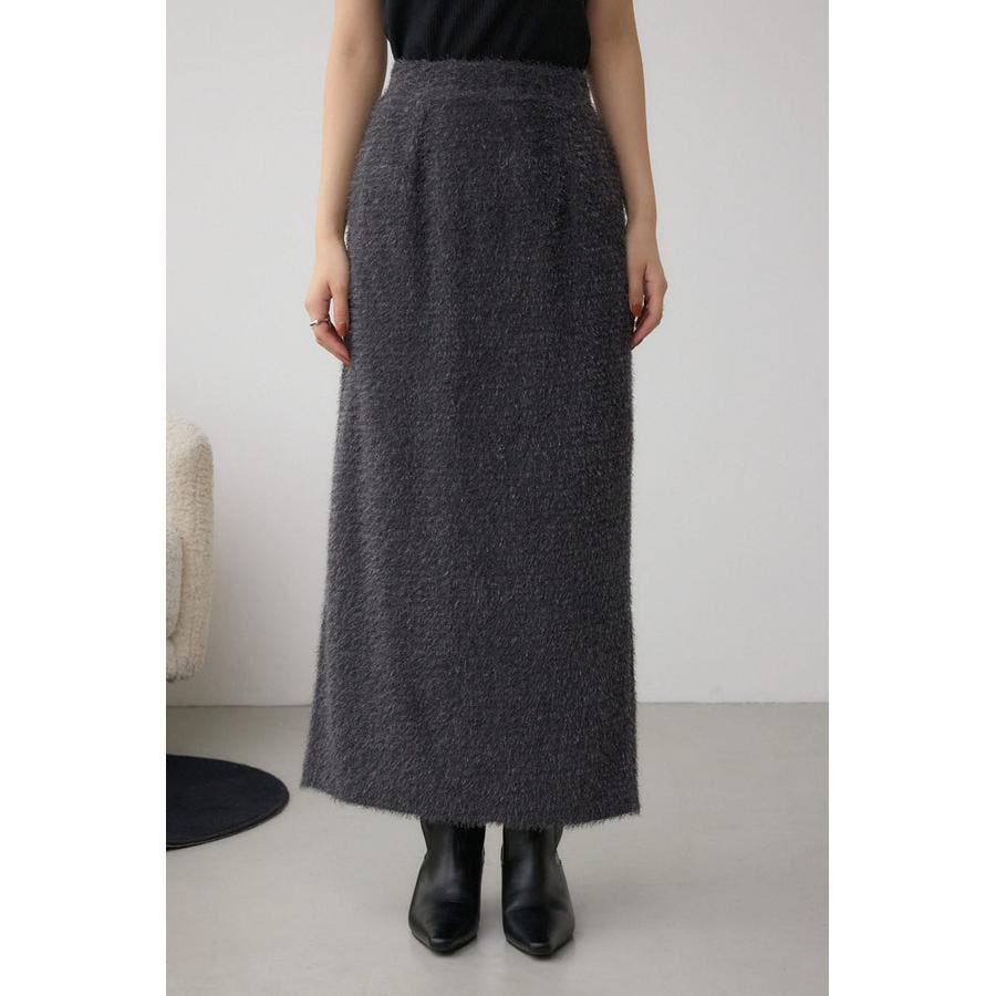 トレンド感のあるシャギー素材で、大人可愛い雰囲気を演出するロングスカート。