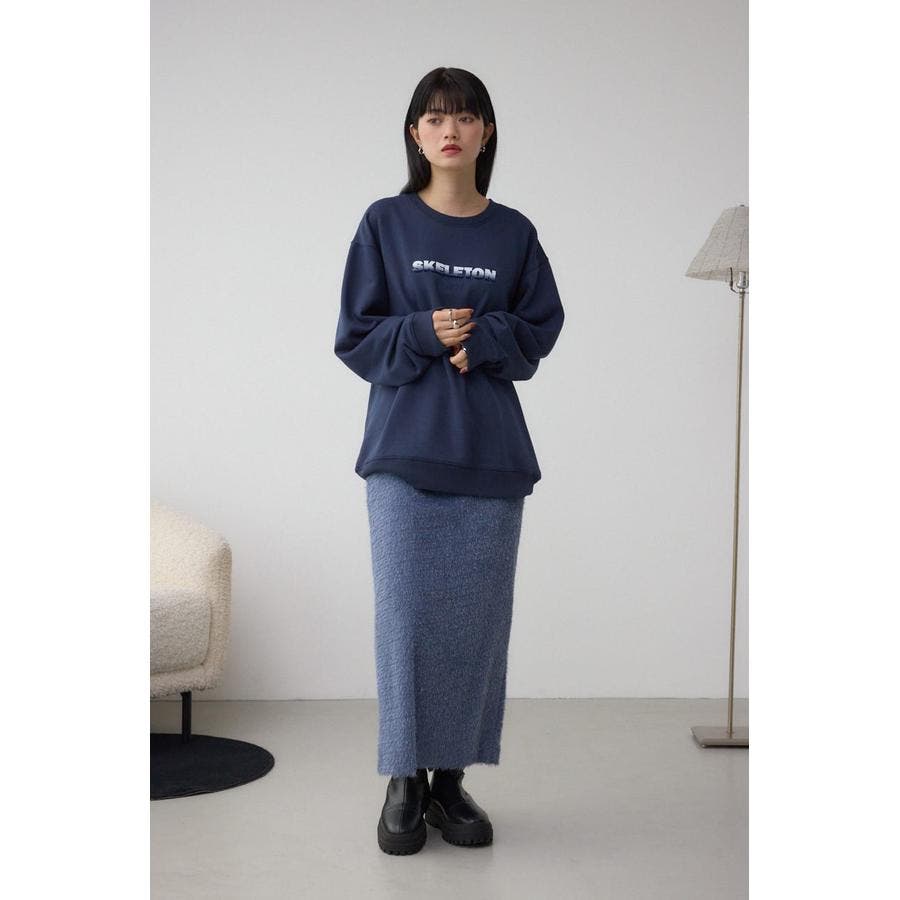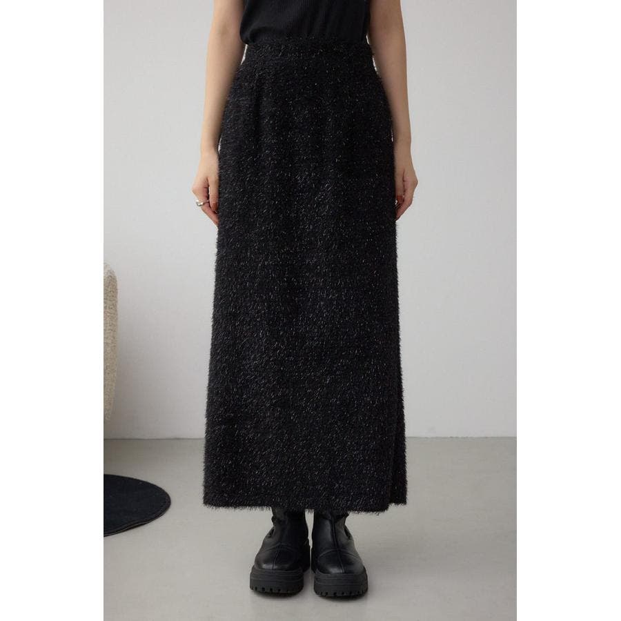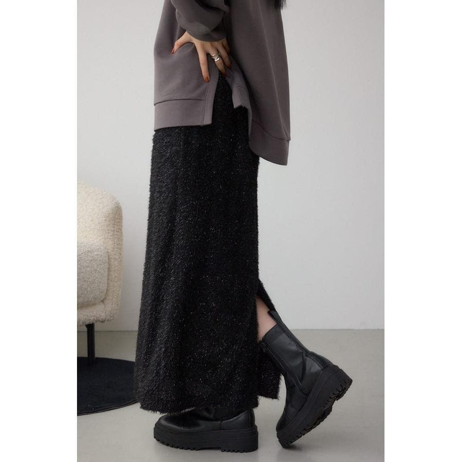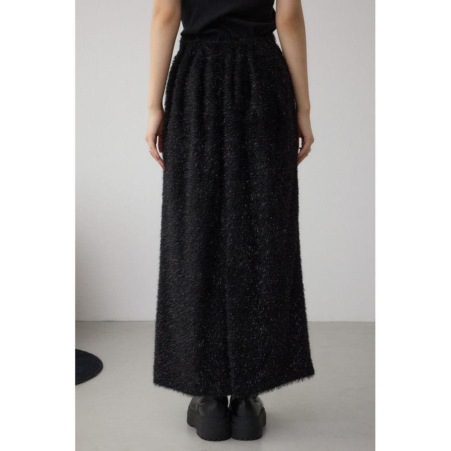 トレンド感のあるシャギー素材で、大人可愛い雰囲気を演出するロングスカート。