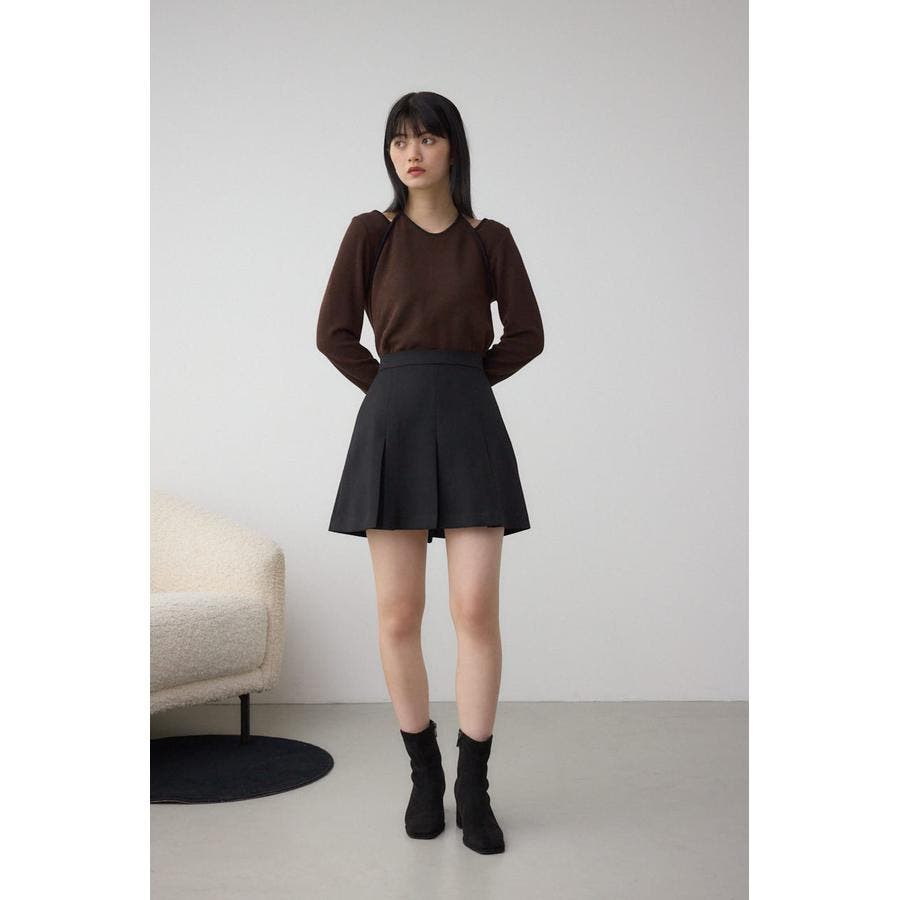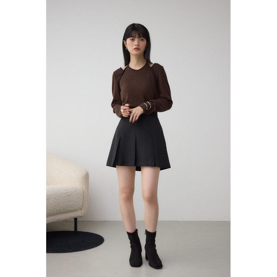 オーバーサイズなニットやトップスから少しプリーツを見せるスタイリングも◎。