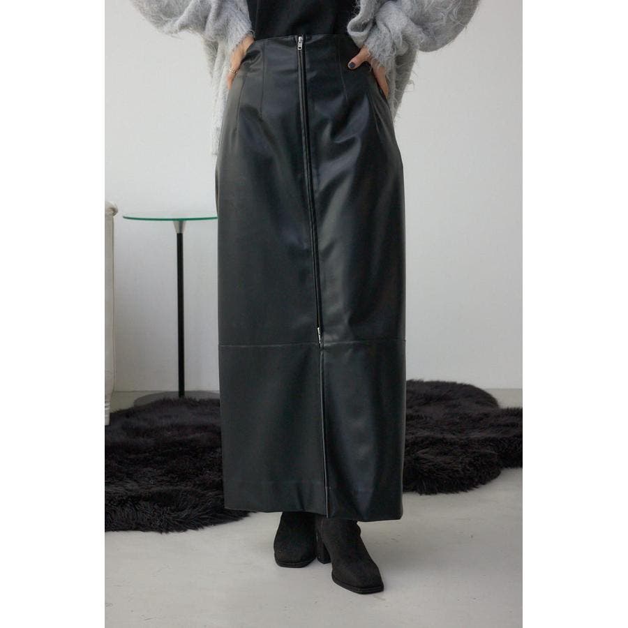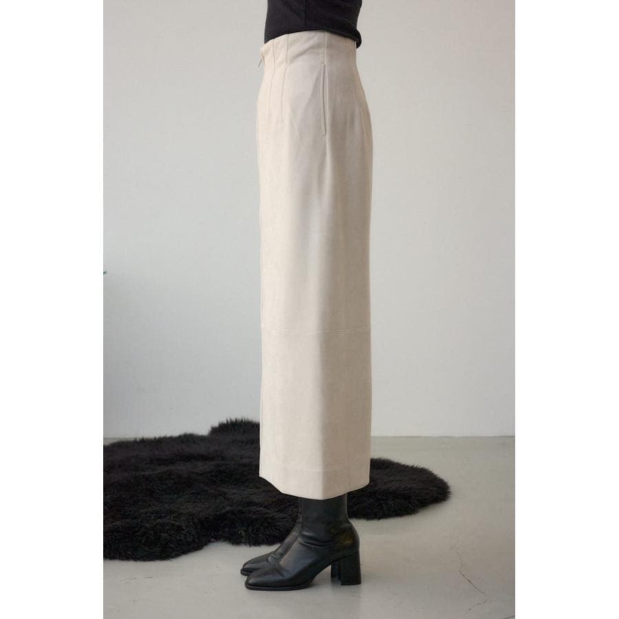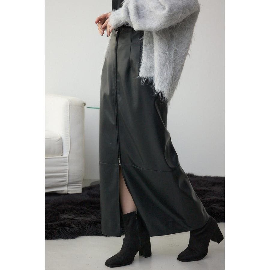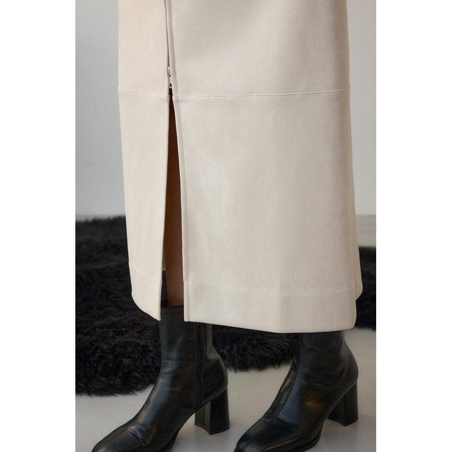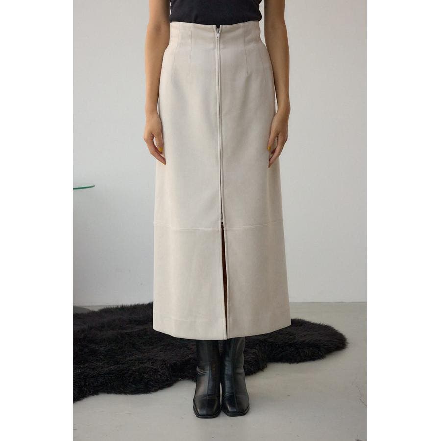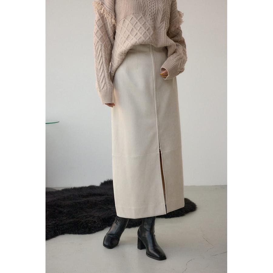フェイクレザー/スエードの表情×フロントジップで、縦ラインが際立つ大人のタイトスカート。