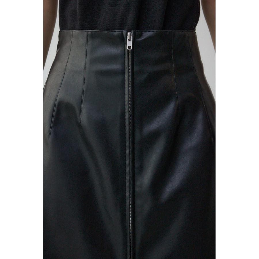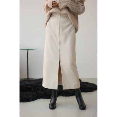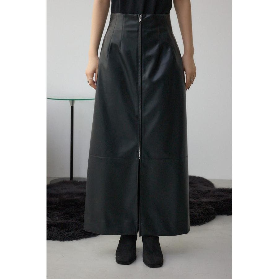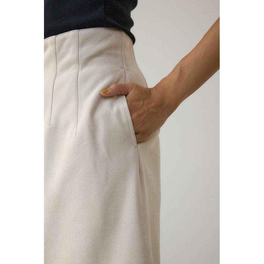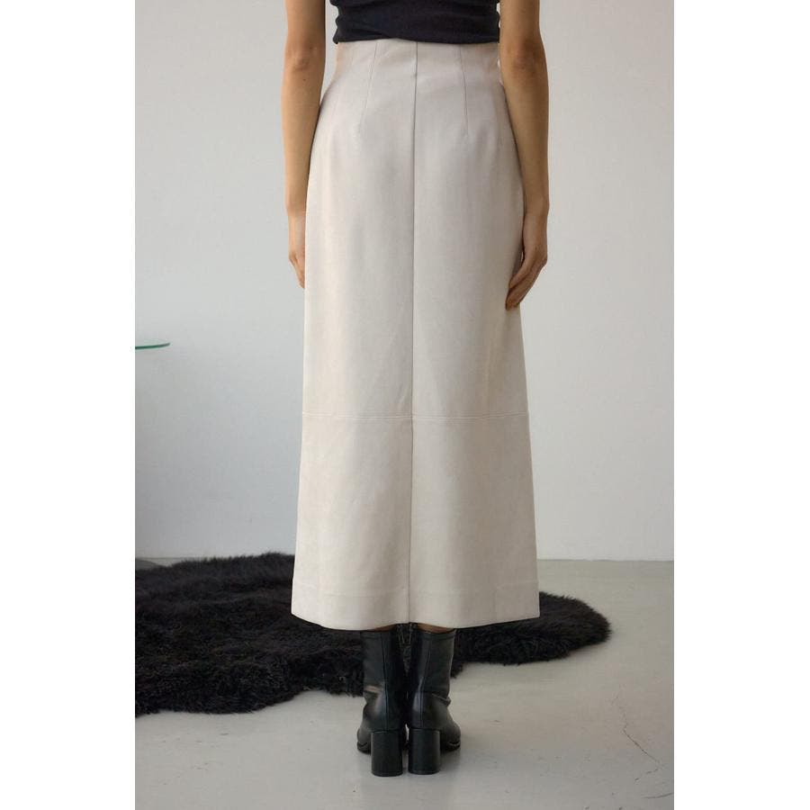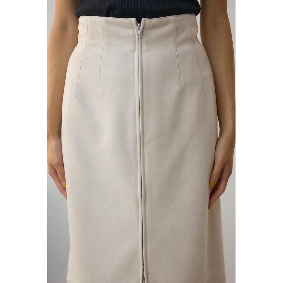 フェイクレザー/スエードの表情×フロントジップで、縦ラインが際立つ大人のタイトスカート。