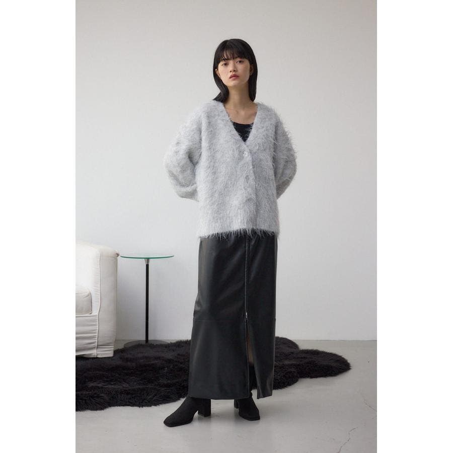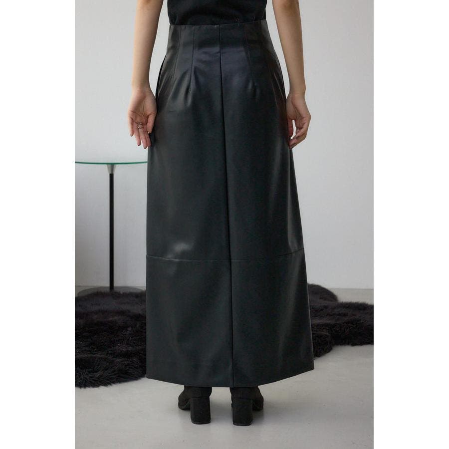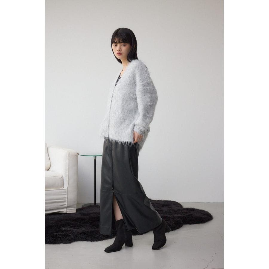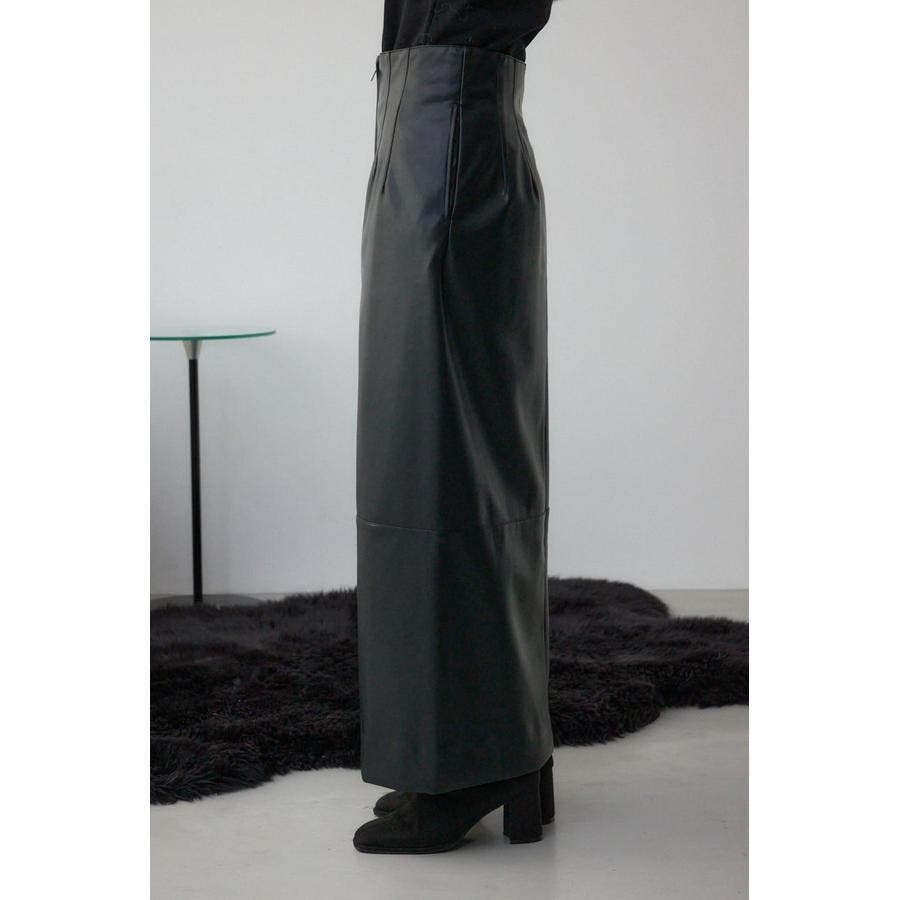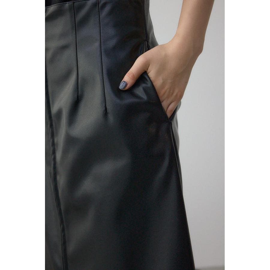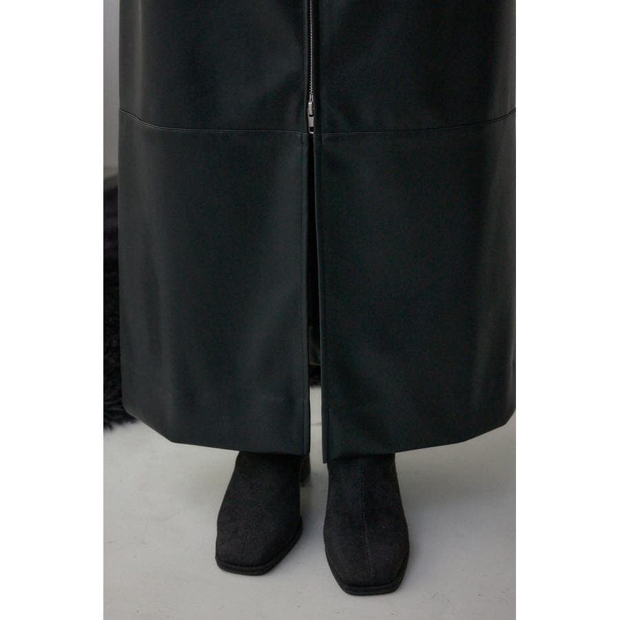 フェイクレザー/スエードの表情×フロントジップで、縦ラインが際立つ大人のタイトスカート。