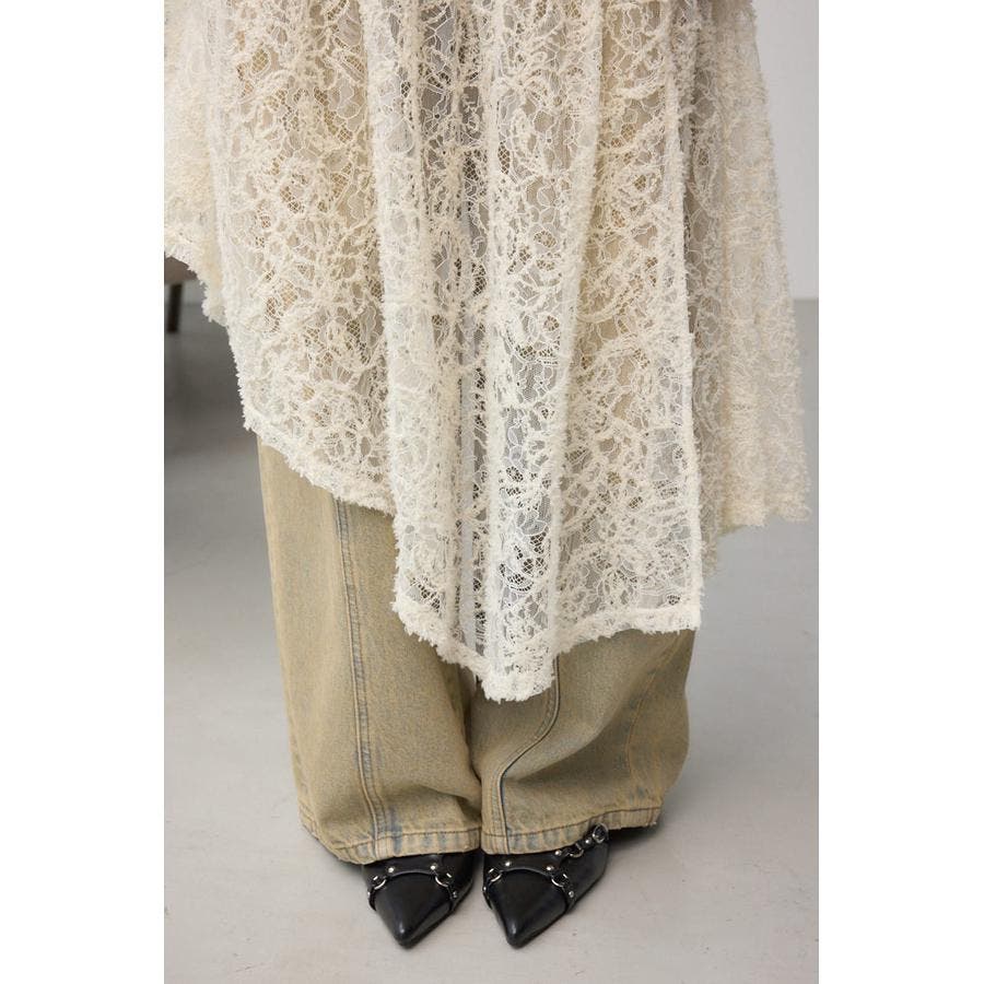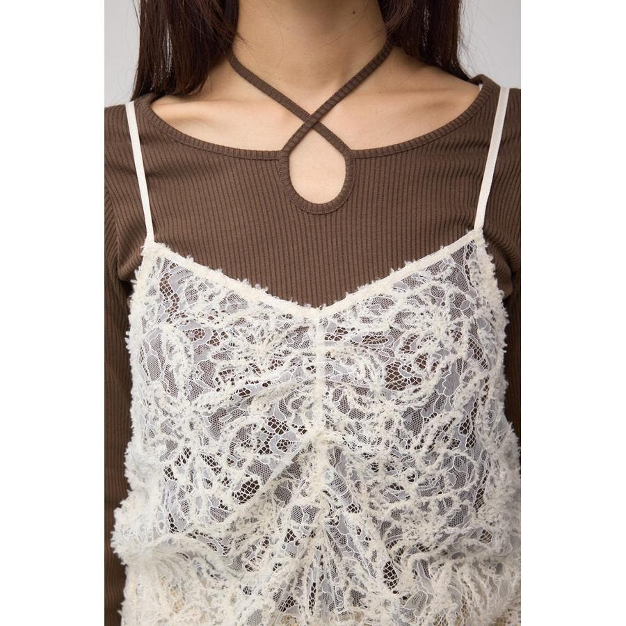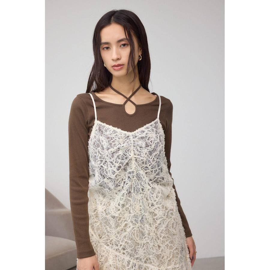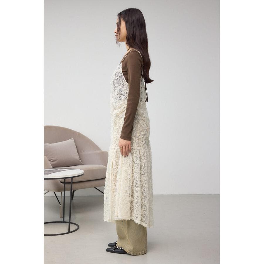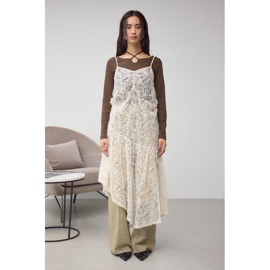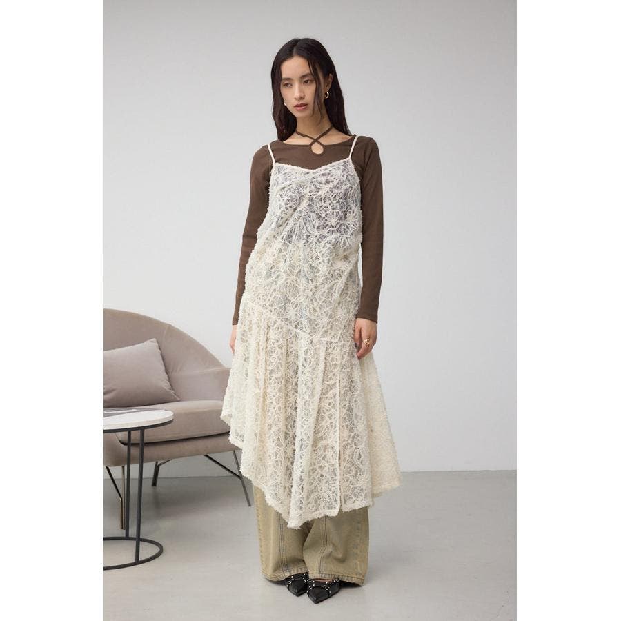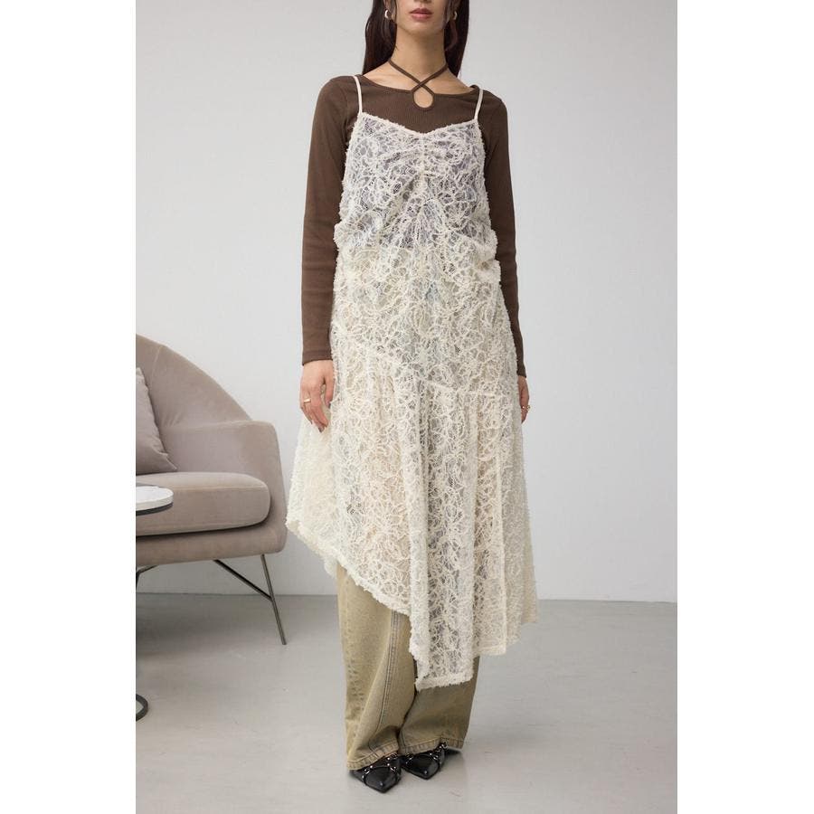 起毛感のあるレース見え素材がポイントのワンピースです。