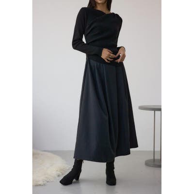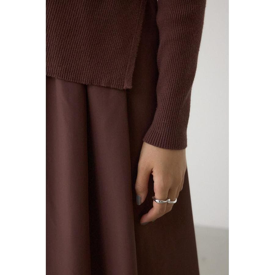 スカートはやや落ち感のある布帛を使用しタックを施すことで、立体感のあるシルエットに。