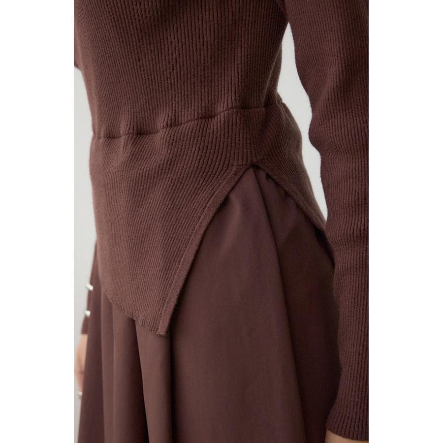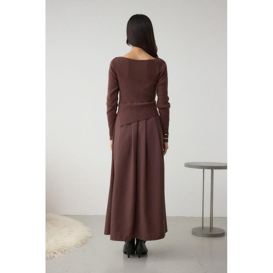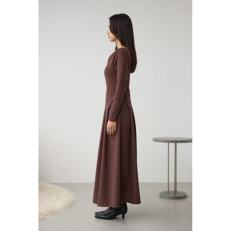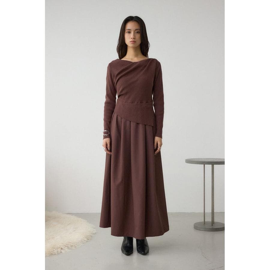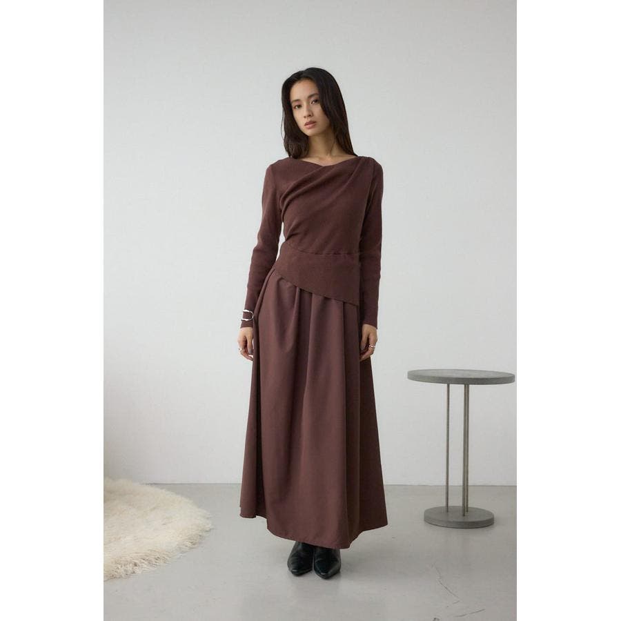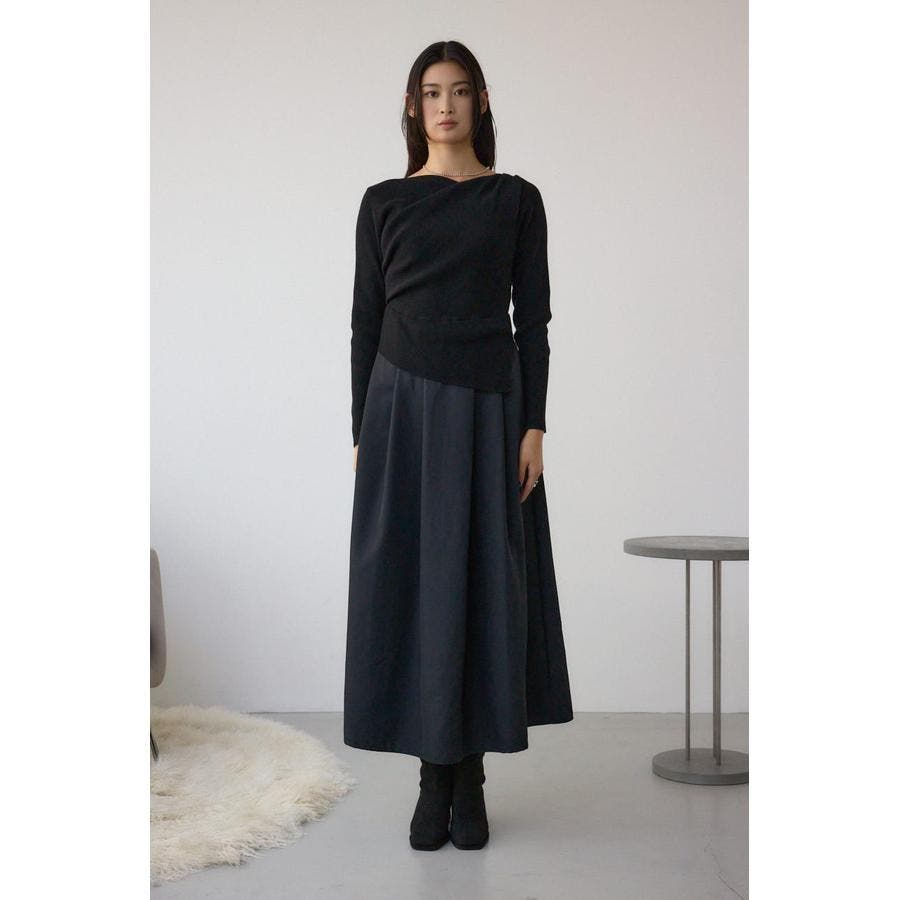 異素材ドッキング×ドレープディテールで、1枚で“きれいめモード”が完成するニットワンピース。
