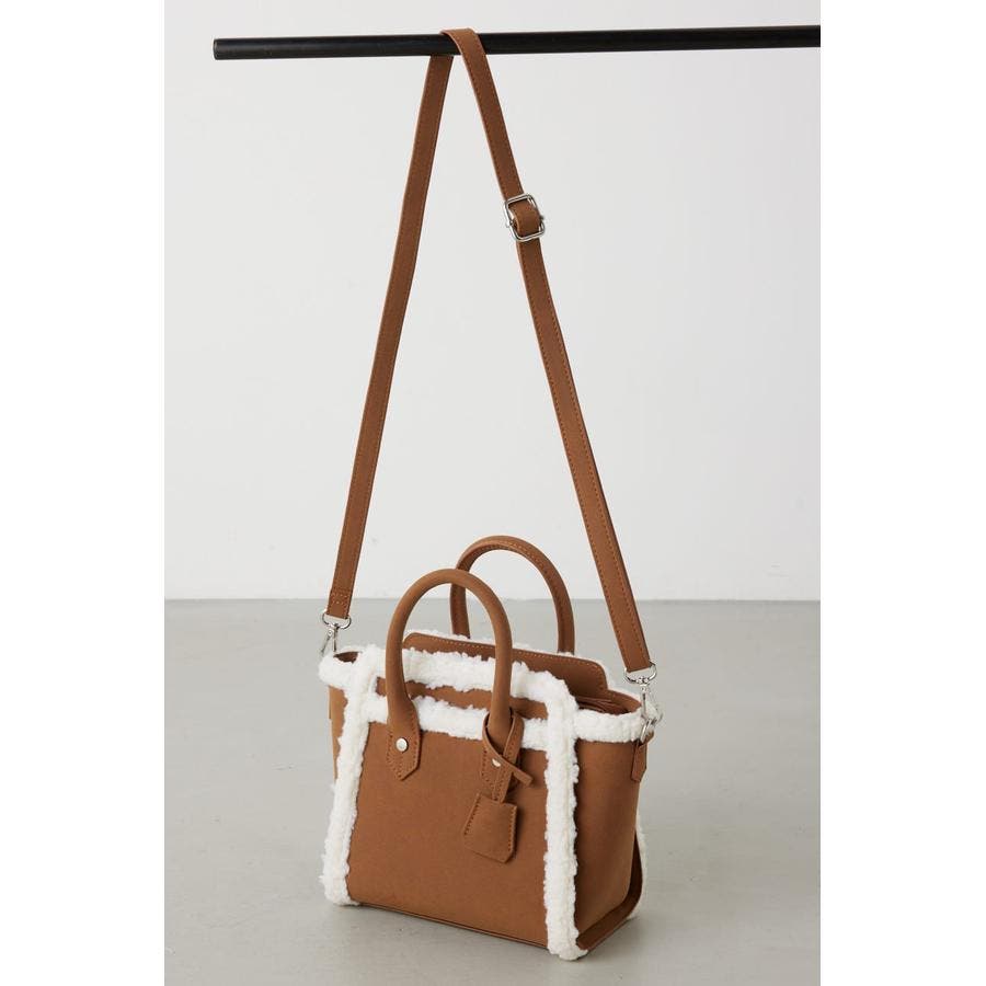 ボアと合成皮革の組み合わせがシーズンムードが高まるフェイクムートンバッグです。