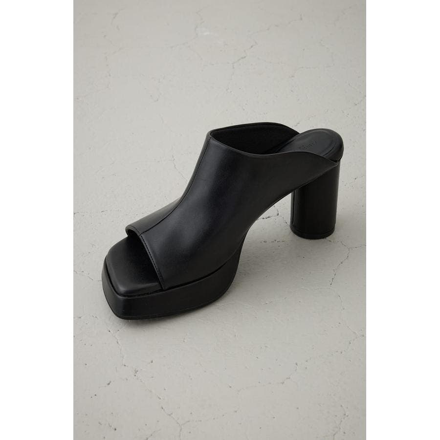 深めの甲デザインがモードな印象の厚底ミュール。