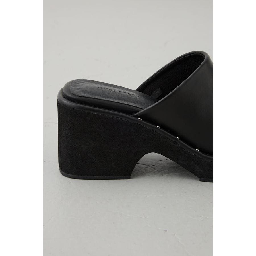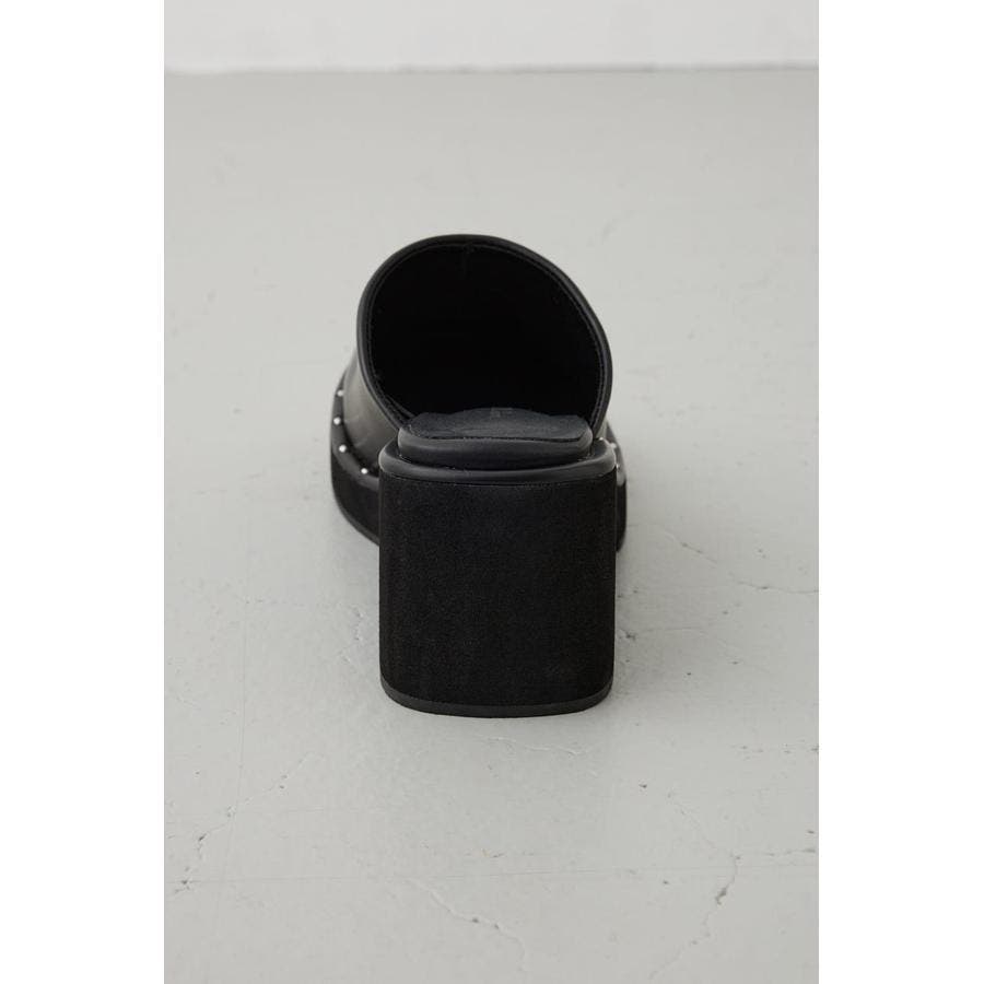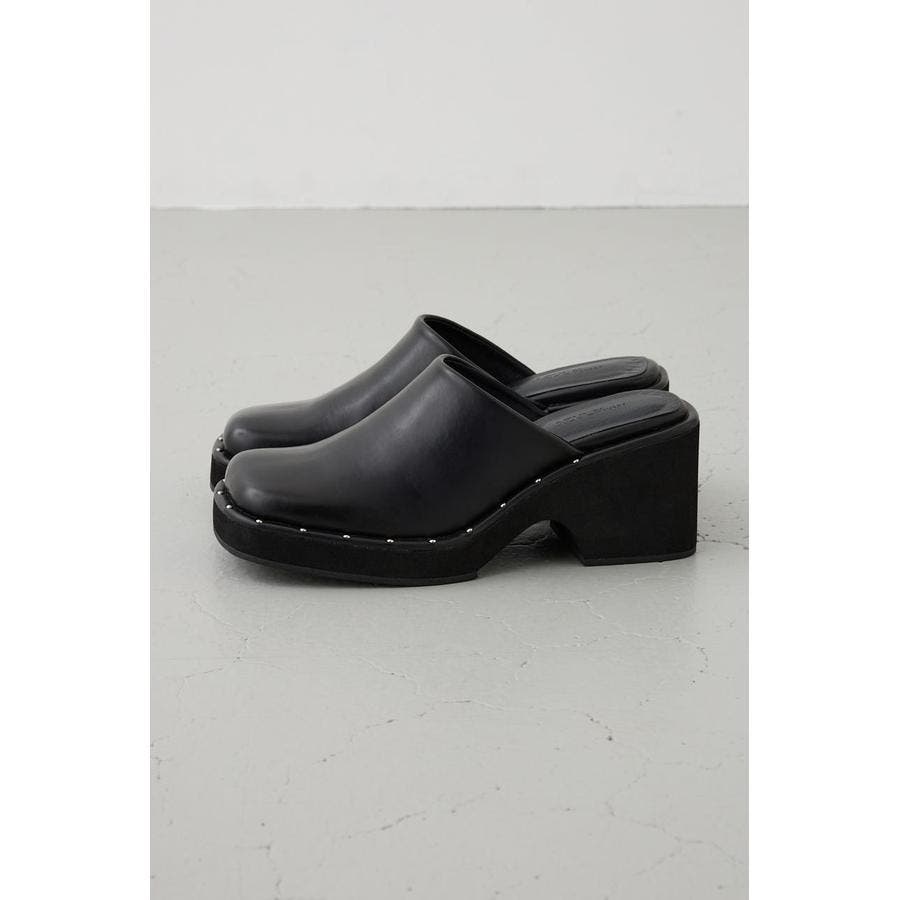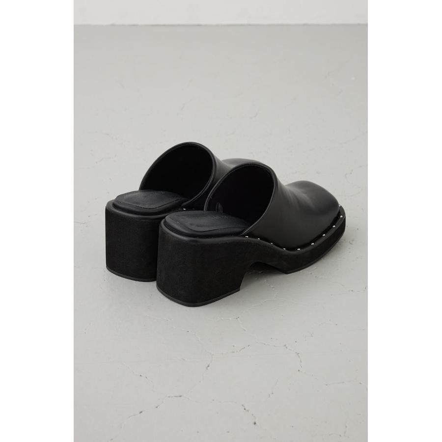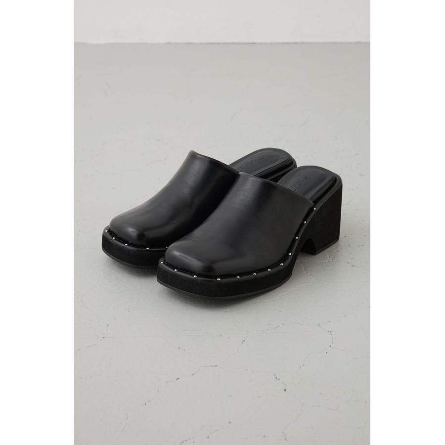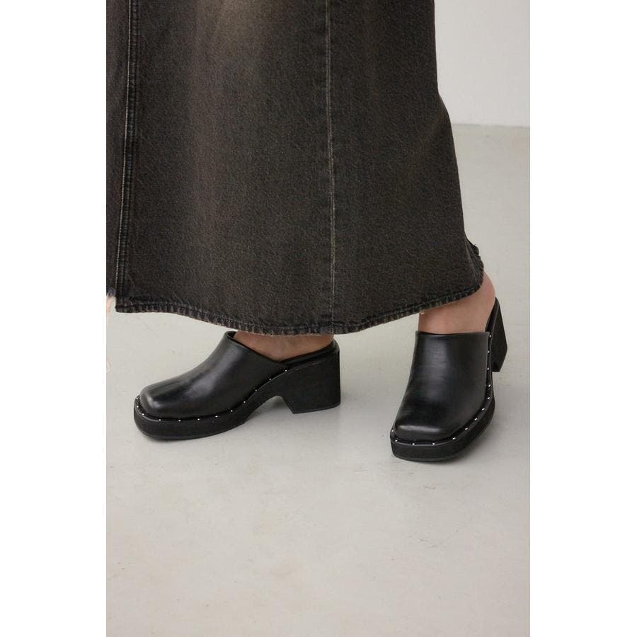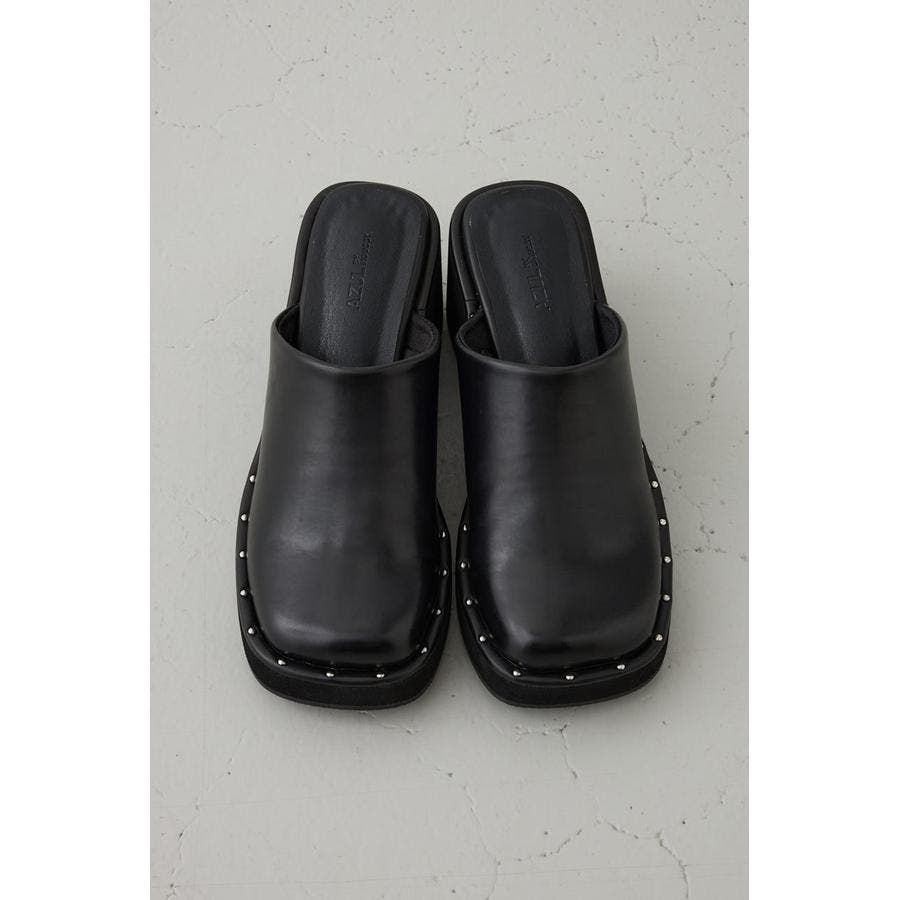 トレンドのスタッズをあしらった、モードな雰囲気漂うスクエアトゥミュール。