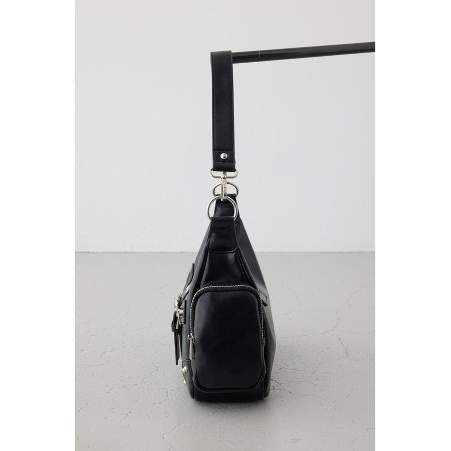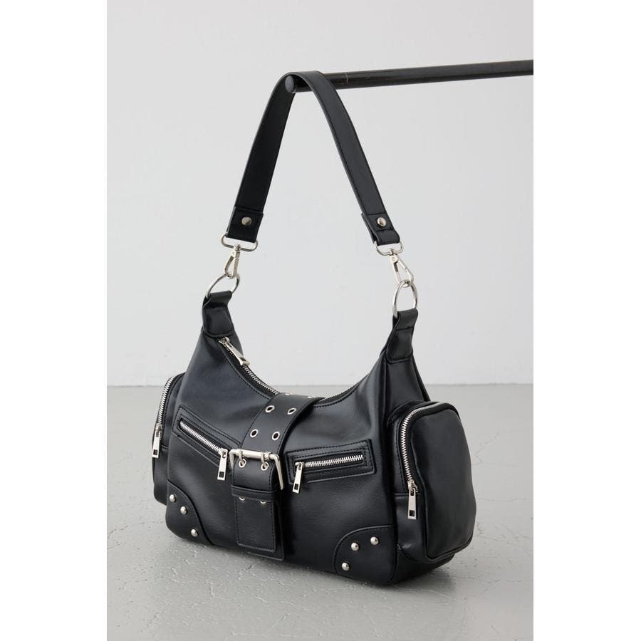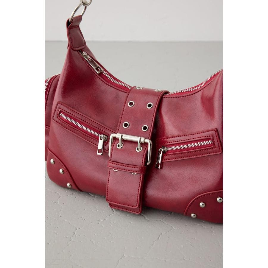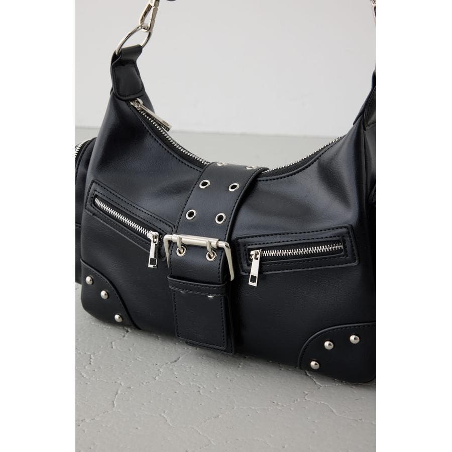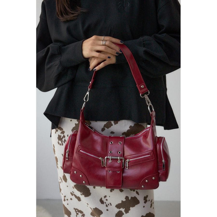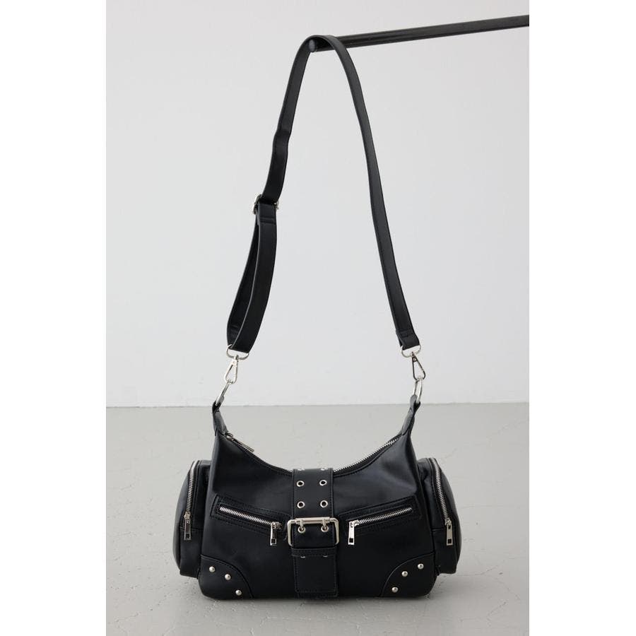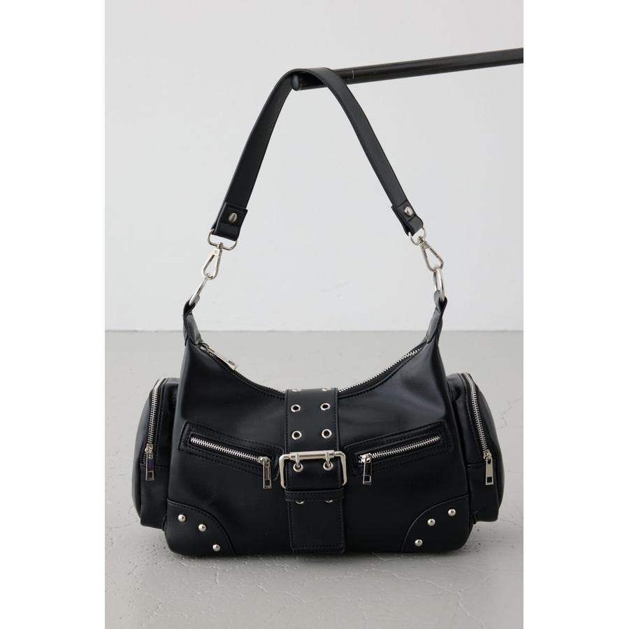 太めベルトと存在感あるバックル、メタルデザインが効いたトレンド感満載のボックスポケットバッグ。