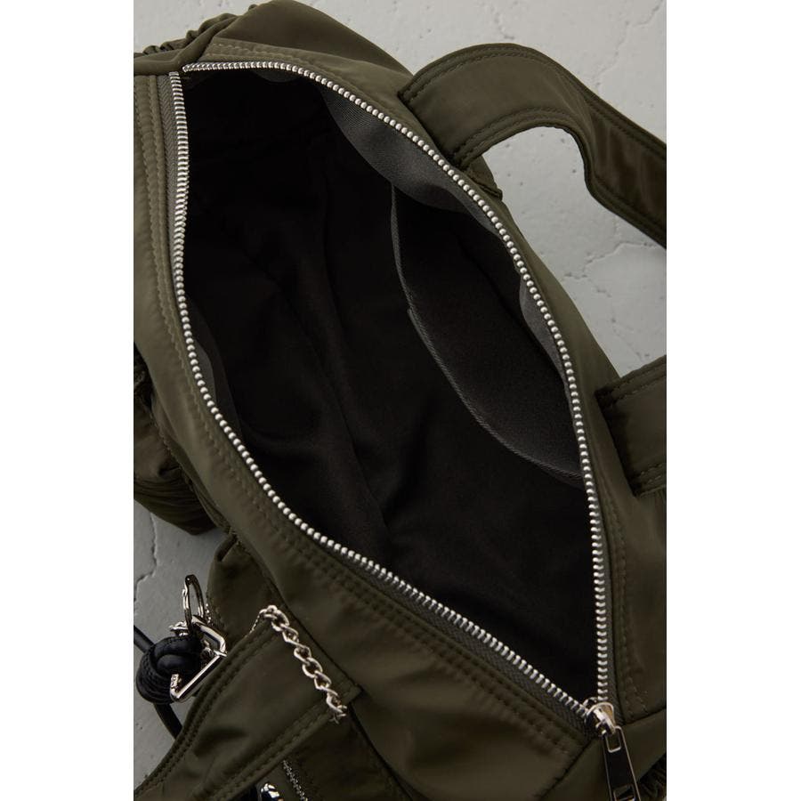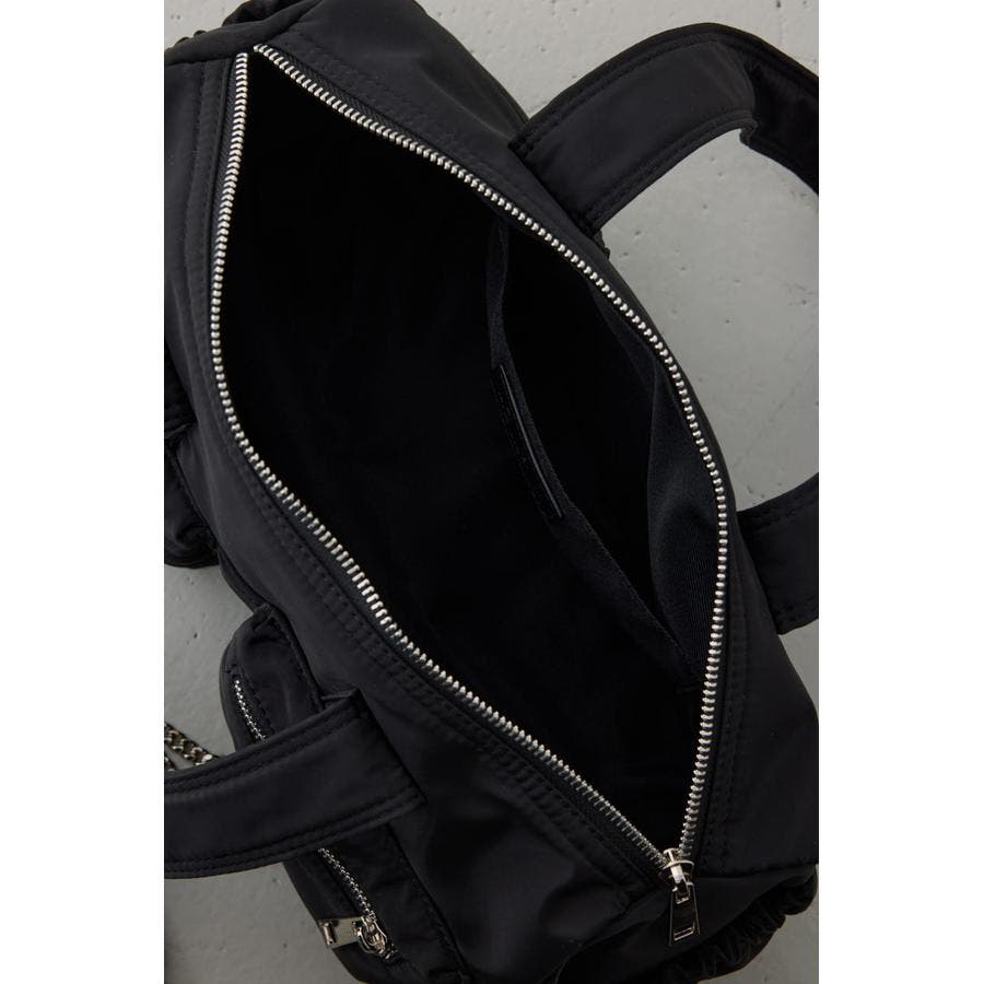 光沢感のある上品な素材感と多ポケットデザインが目を引く、実用性とトレンドを兼ね備えた万能バッグ。