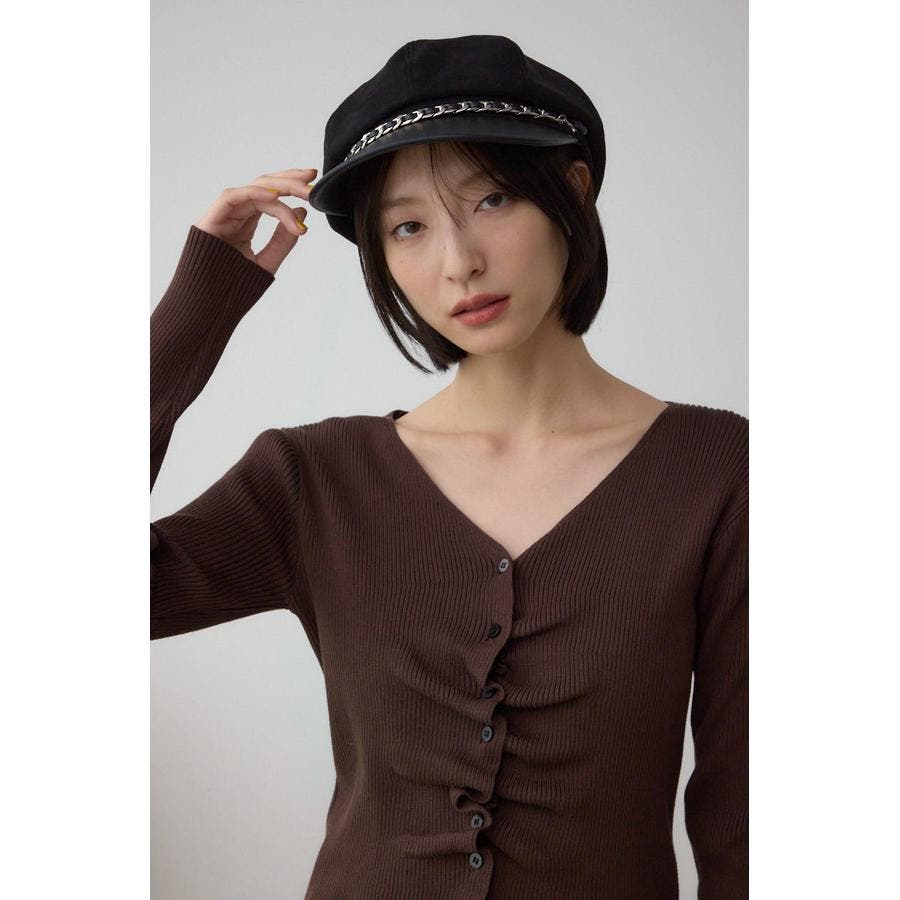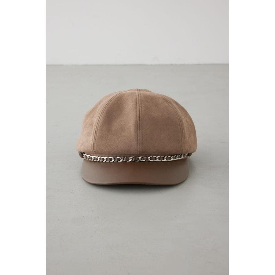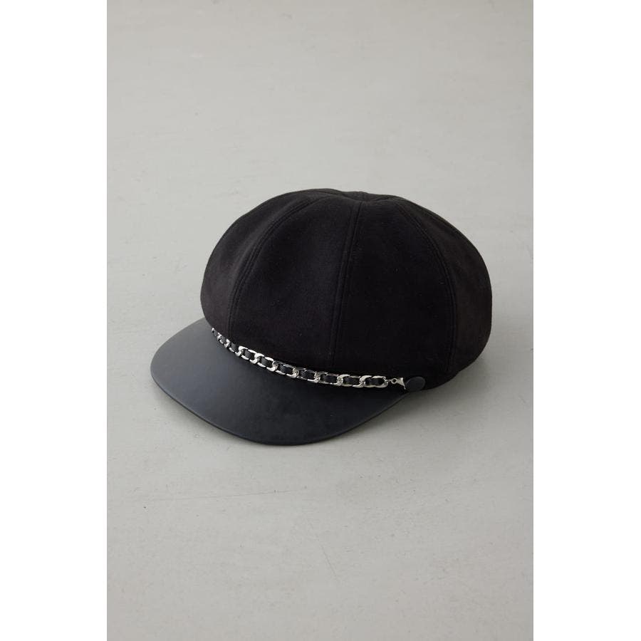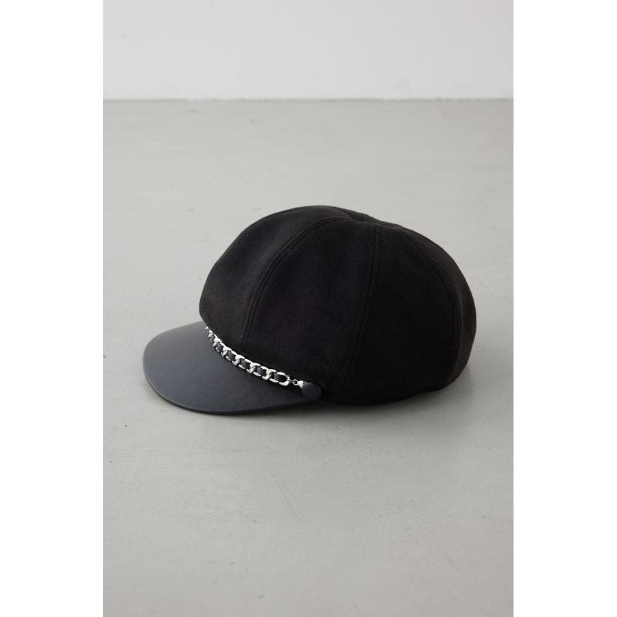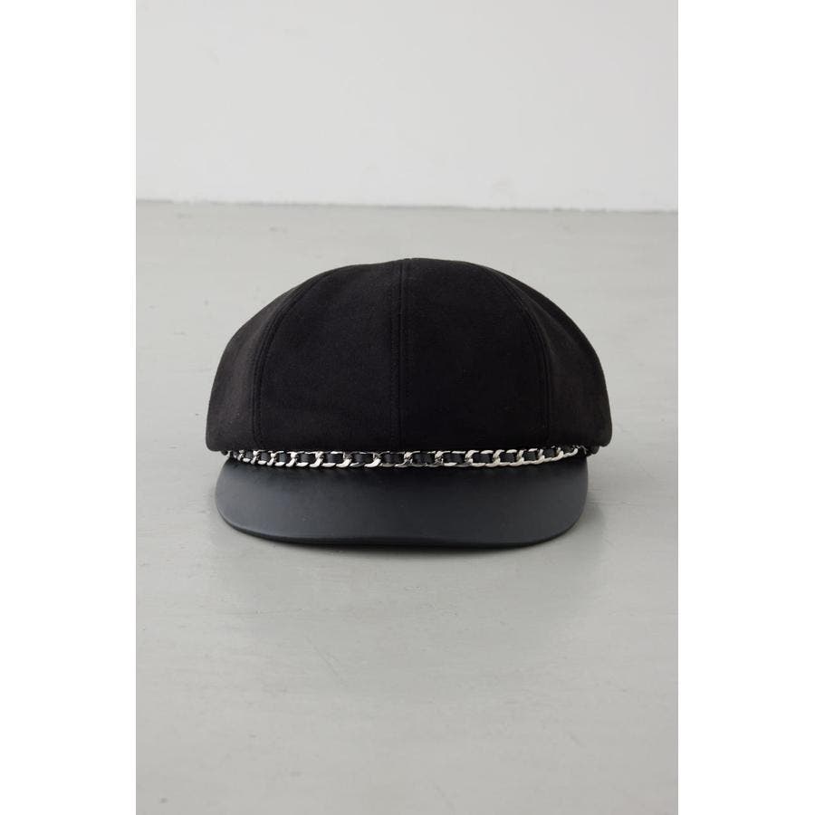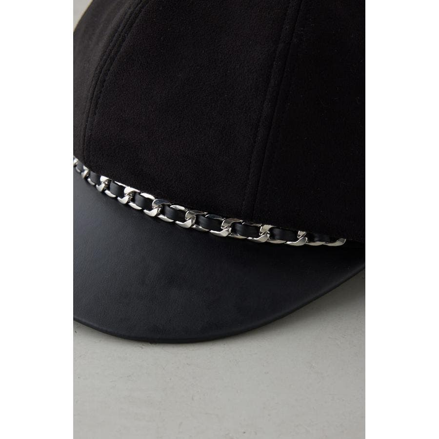 異素材コンビとチェーンディテールで、シンプルながら存在感のあるキャップ。