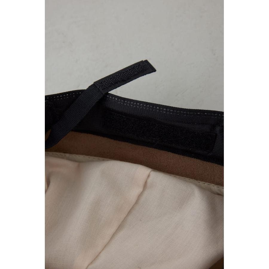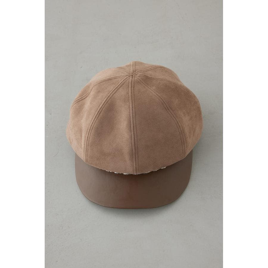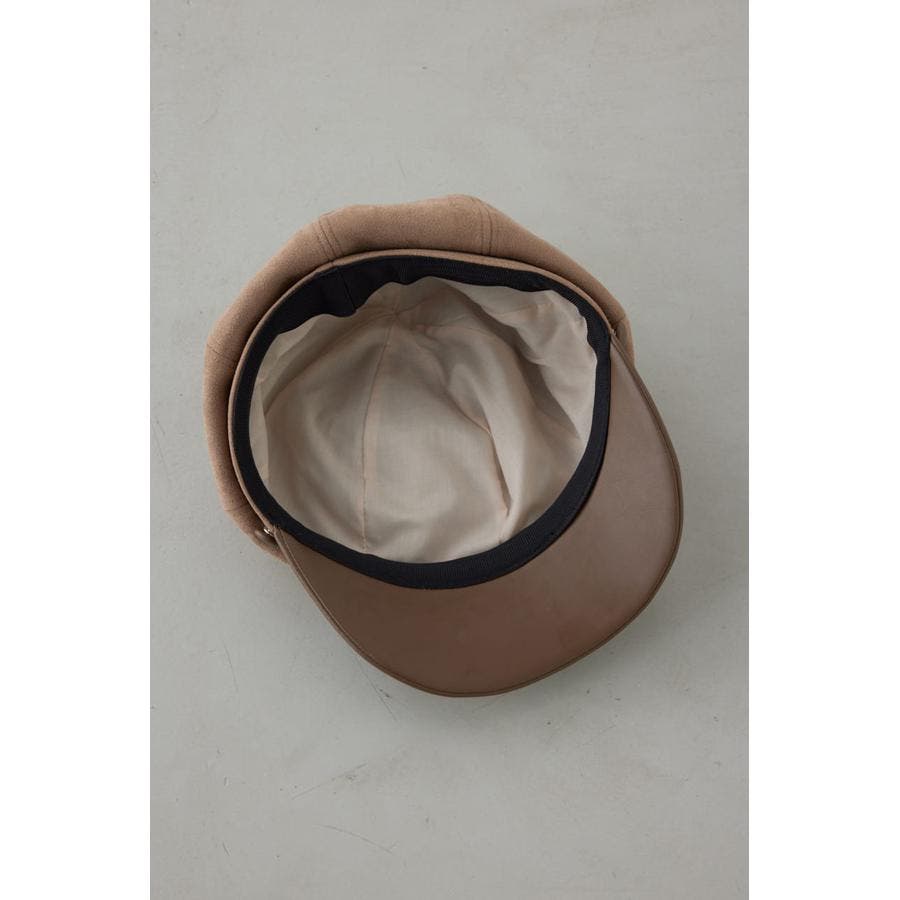 ツバ部分はフェイクレザーを採用し、モード感をプラスしました。