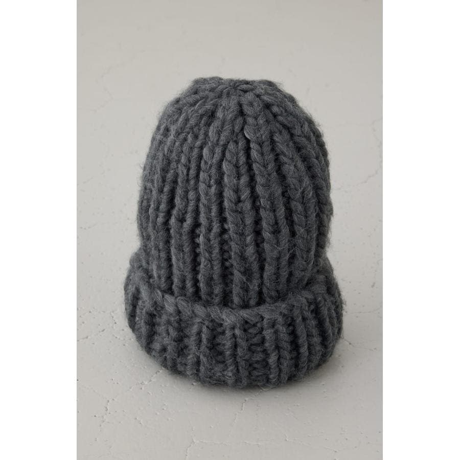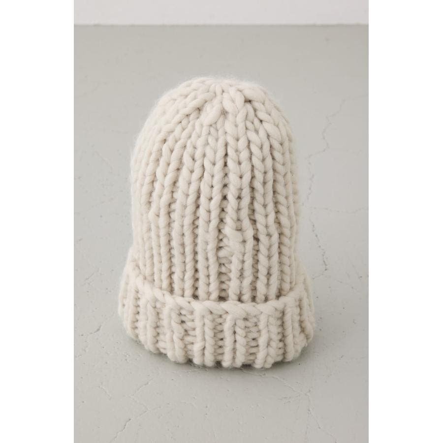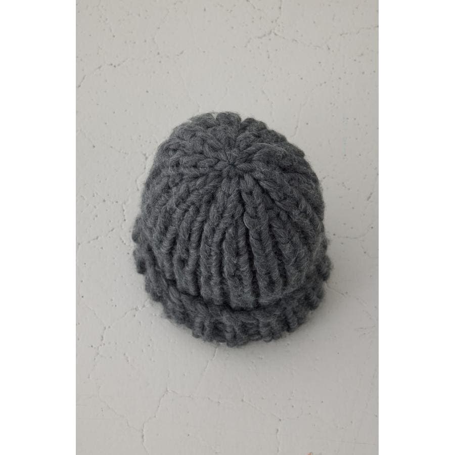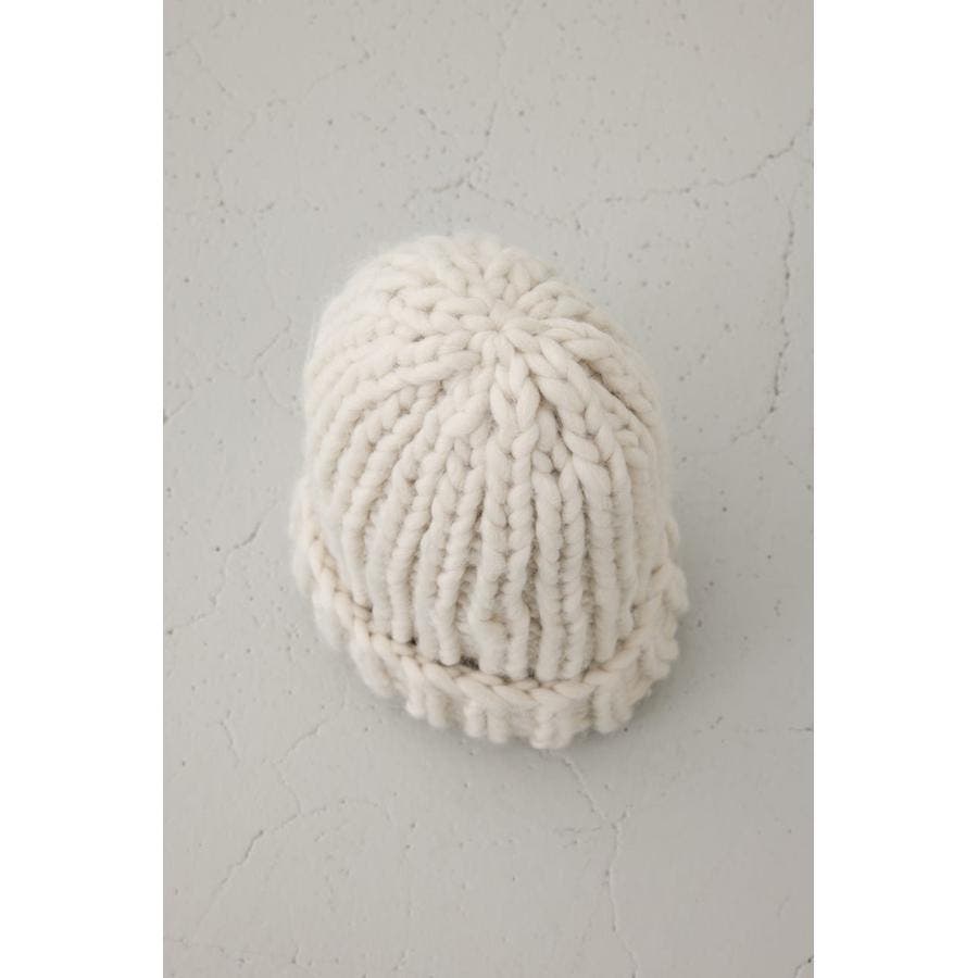 太めの毛糸を使用し、ふっくらとしたシルエットに仕上げたニット帽。