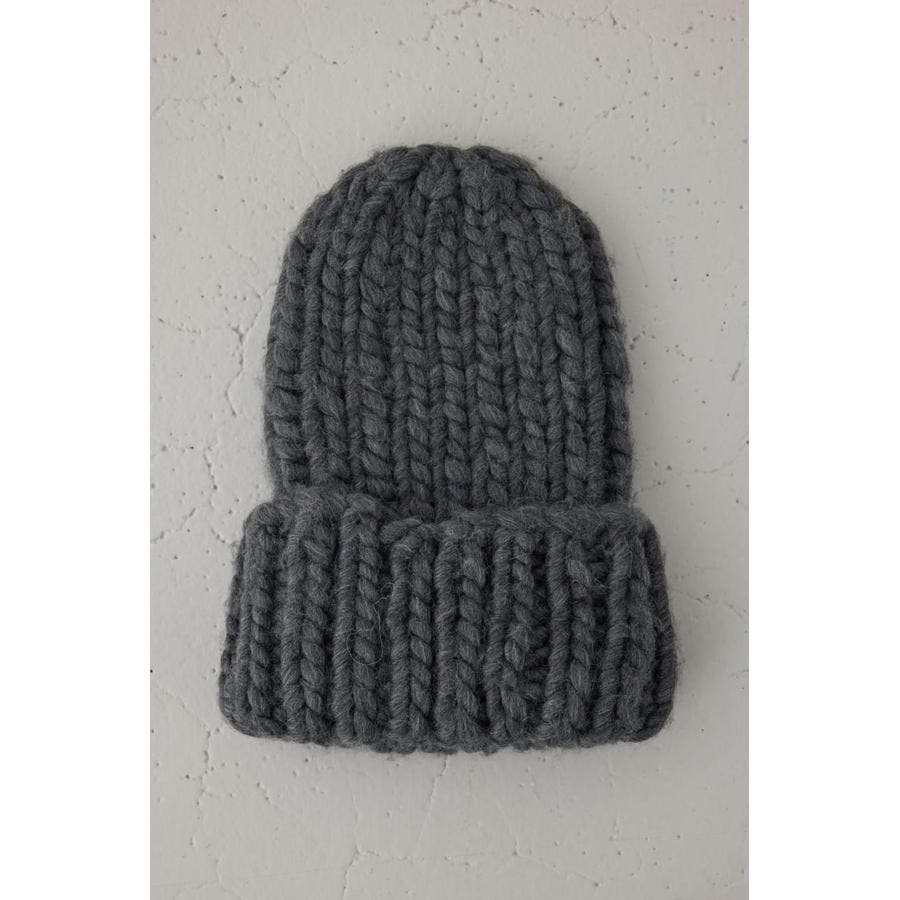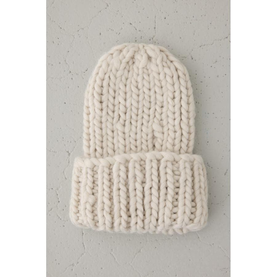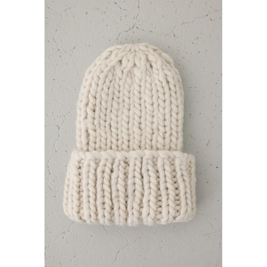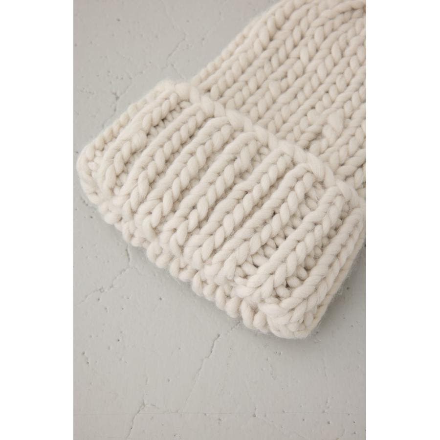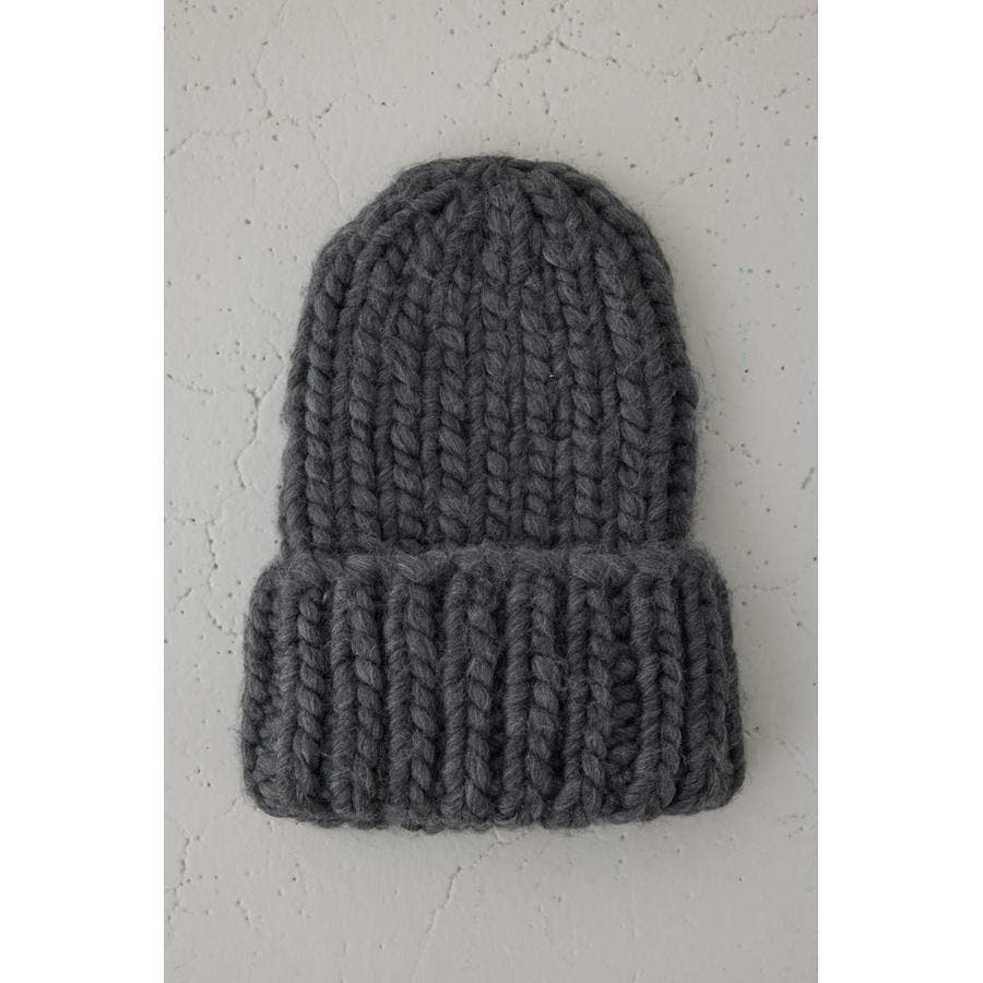太めの毛糸を使用し、ふっくらとしたシルエットに仕上げたニット帽。